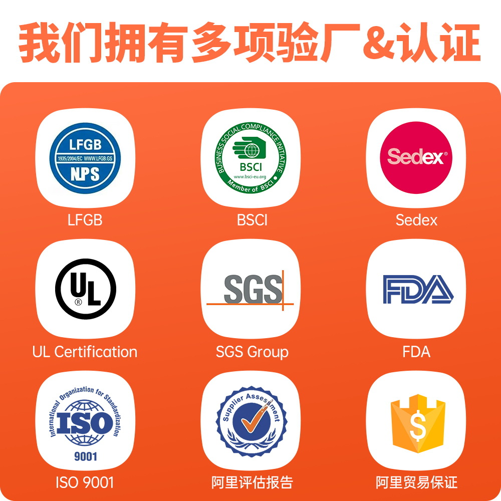 LEWIS,ISO9001等验厂,产品有LFGB,FDA等多项认证,完善的管理体系和质量体系,