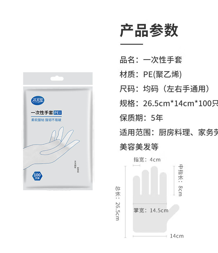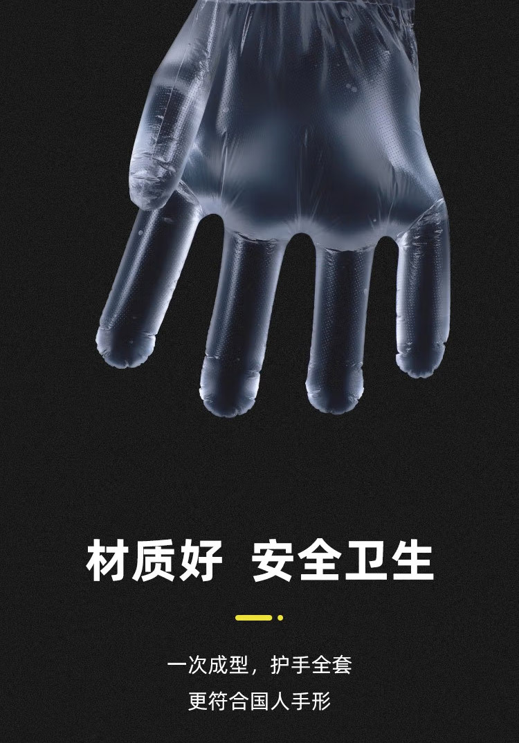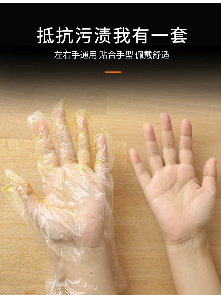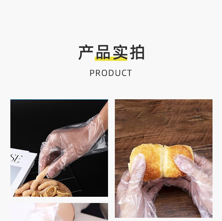 일회용 장갑 식품 등급 미끄럼 방지 두꺼운 투명 필름 커버 주방 테이크 아웃 상업용 특수 페 플라스틱 장갑