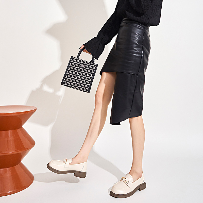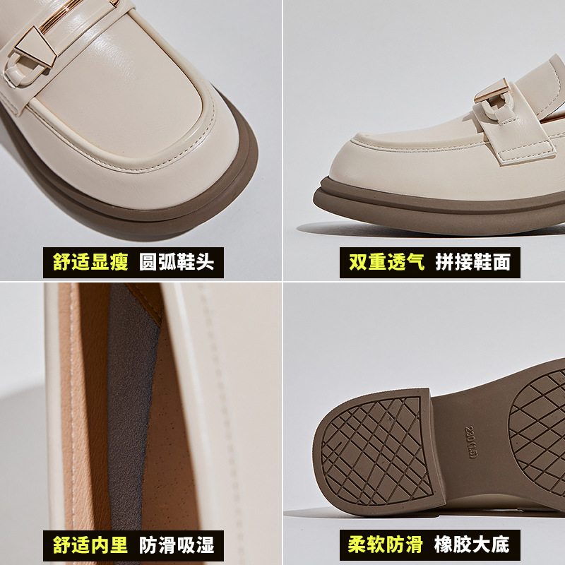 여성용 천연 가죽 로퍼 2025 봄 여름 신상 여성용 얕은 굽 두꺼운 굽 단화 여성 캐주얼 패션 슬립온 여성화