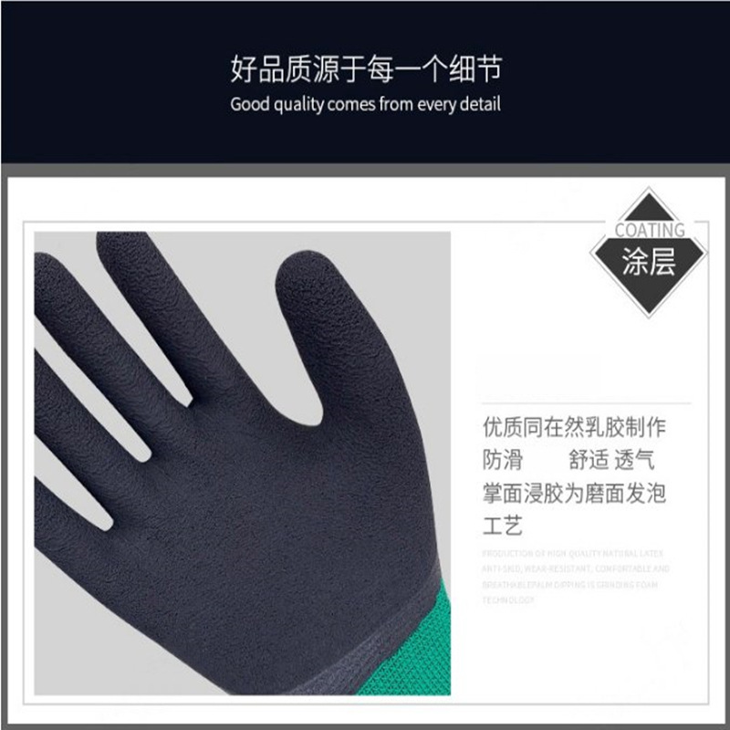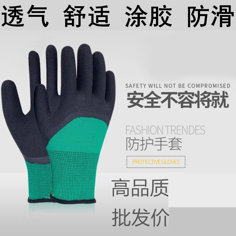 노동 장갑 거품 통기성 왕 딩칭 고무 장갑 남성용 작업 현장 노동 보호 강화 손가락 담근 장갑