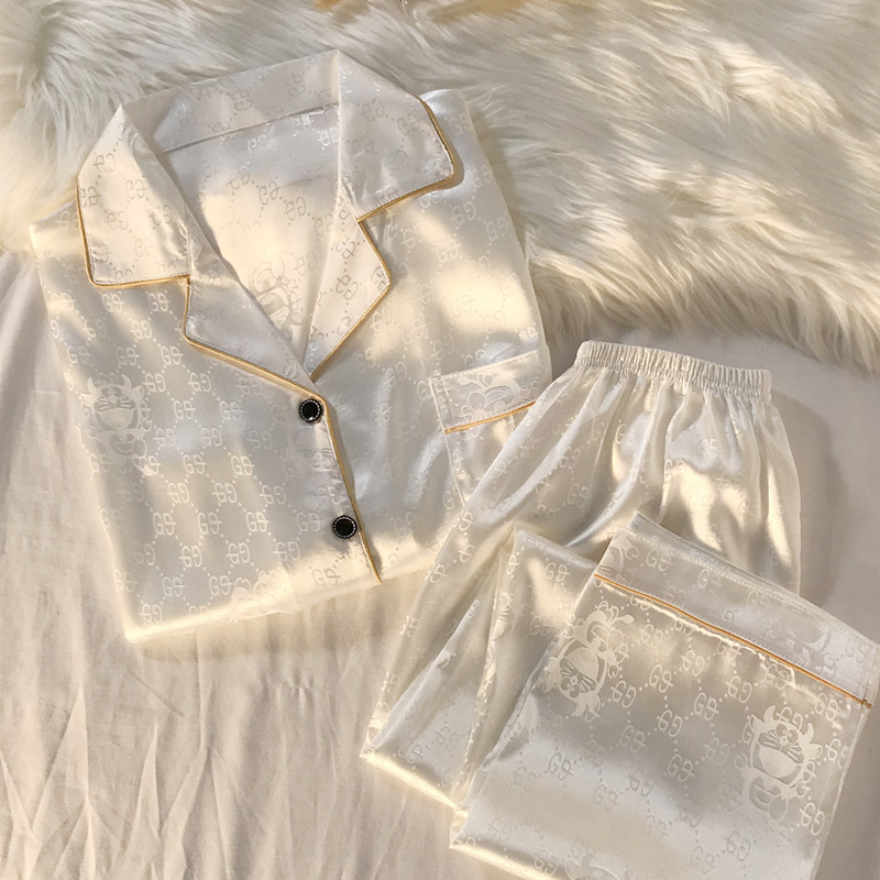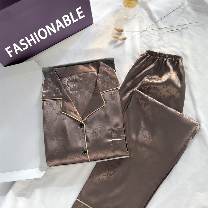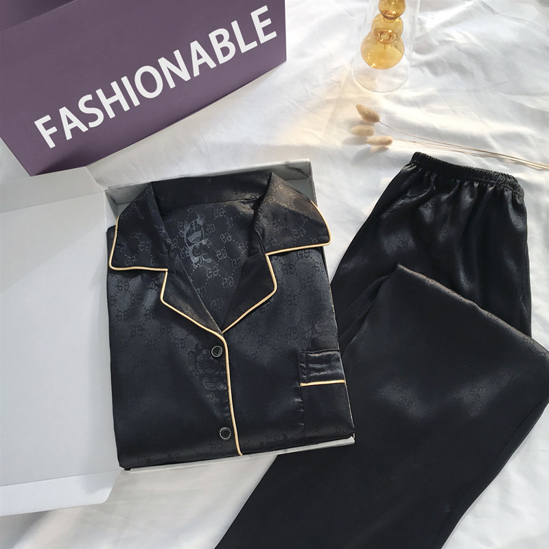 봄과 가을 파자마 여자의 아이스 실크 긴 소매 새로운 자카드 실크 플러스 사이즈 간단한 가정복 세트 제조 업체