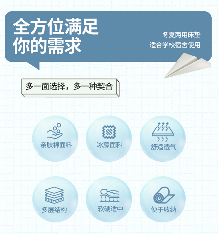 2026년 신형 아이스 라탄 매트리스 양면 사용 가능 매트리스 학생 기숙사 매트 싱글 매트리스 더블 매트리스 사계절 매트리스