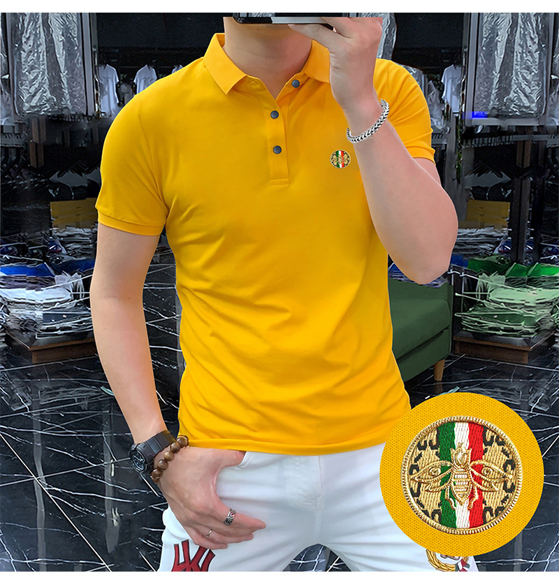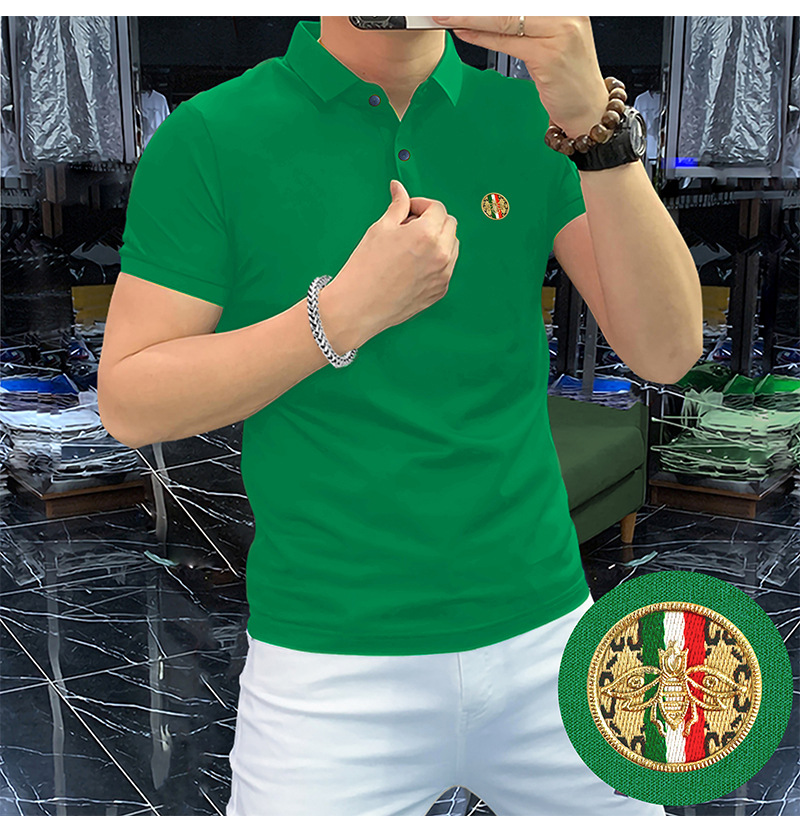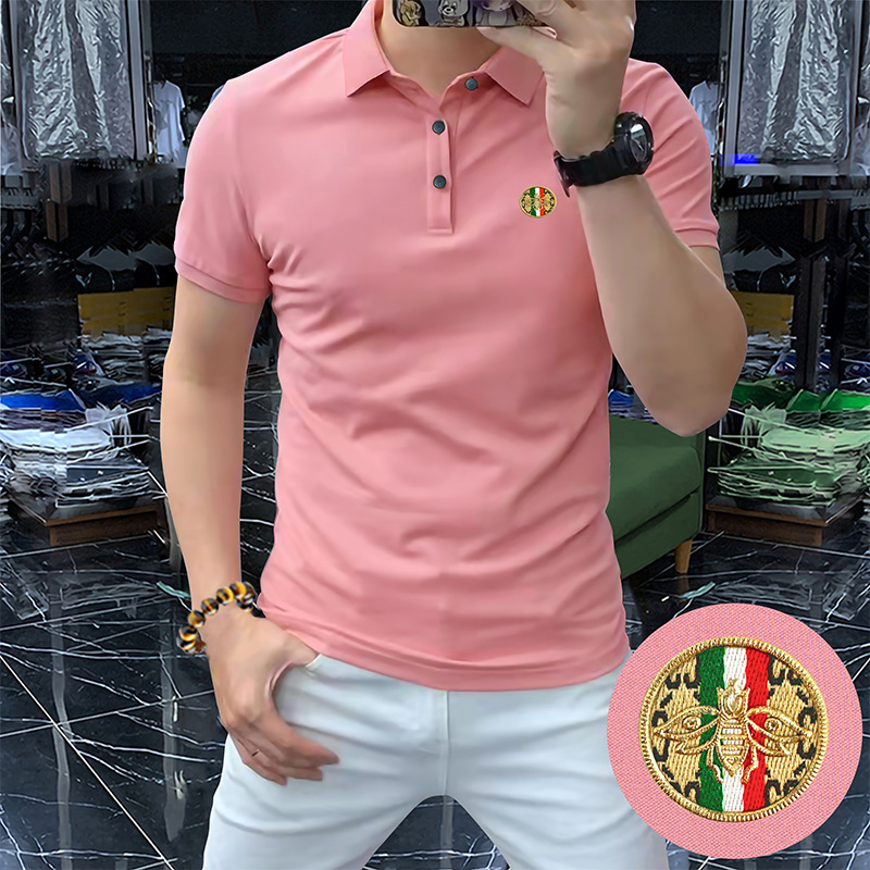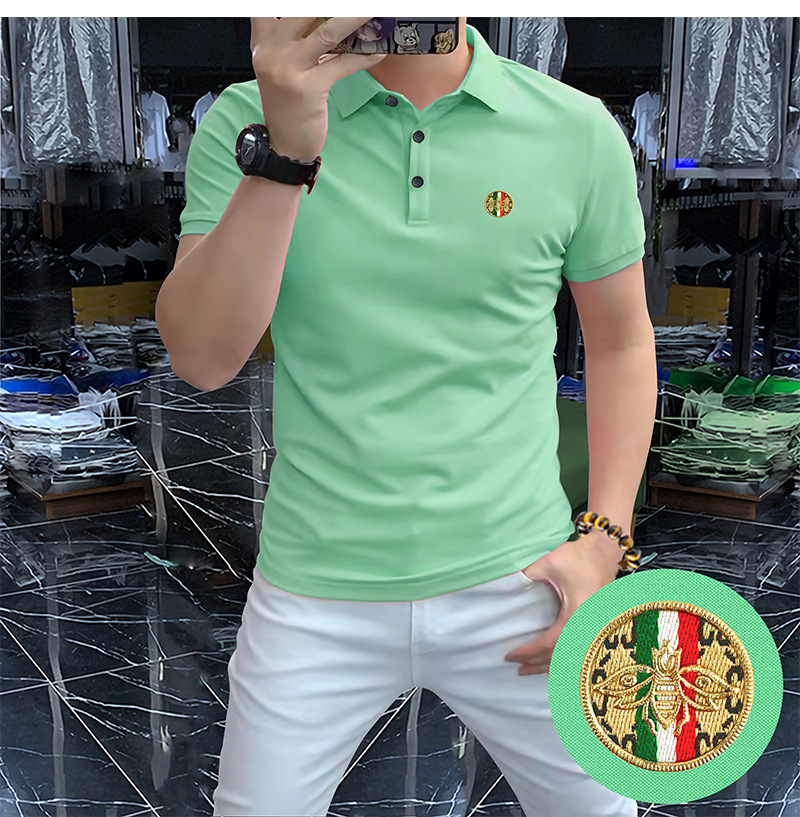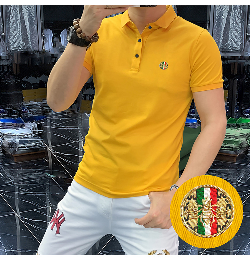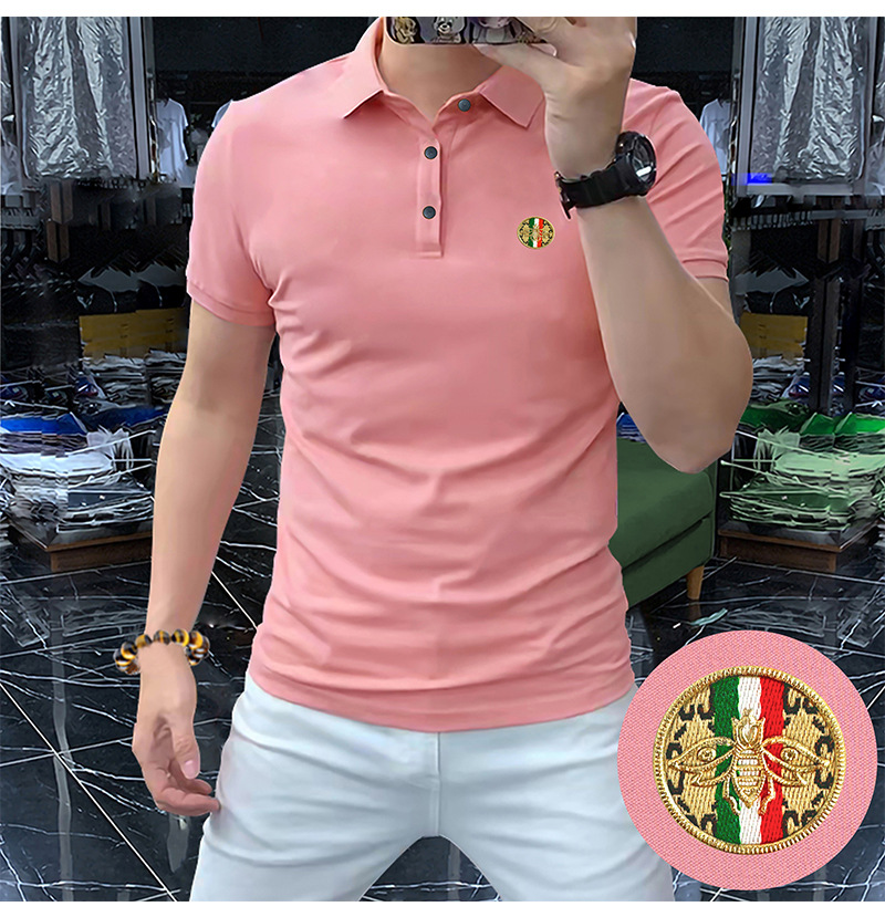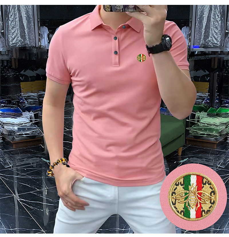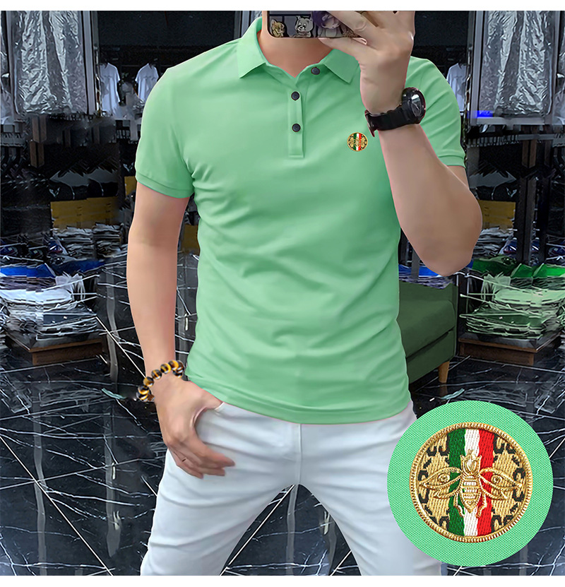 유러피언 스테이션 뉴 남성용 반팔 폴로 셔츠 브라이트 컬러 라펠 반팔 남성 머서라이즈 펄 코튼 슬림핏 패션 트렌디