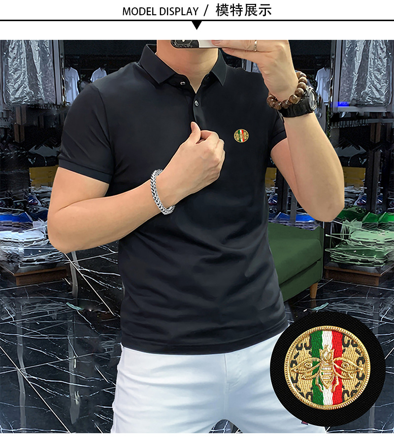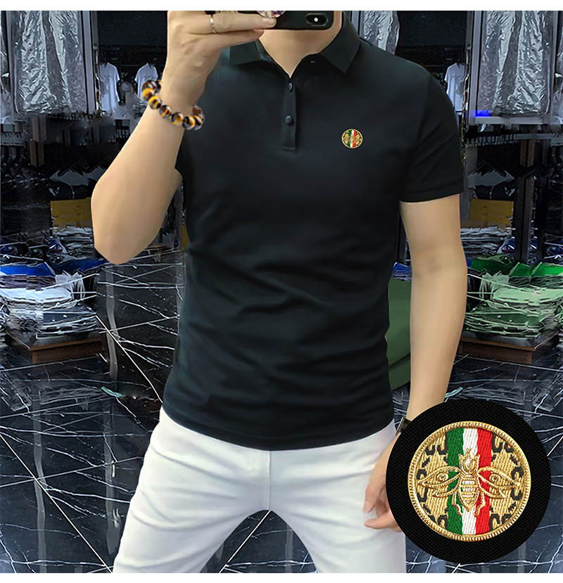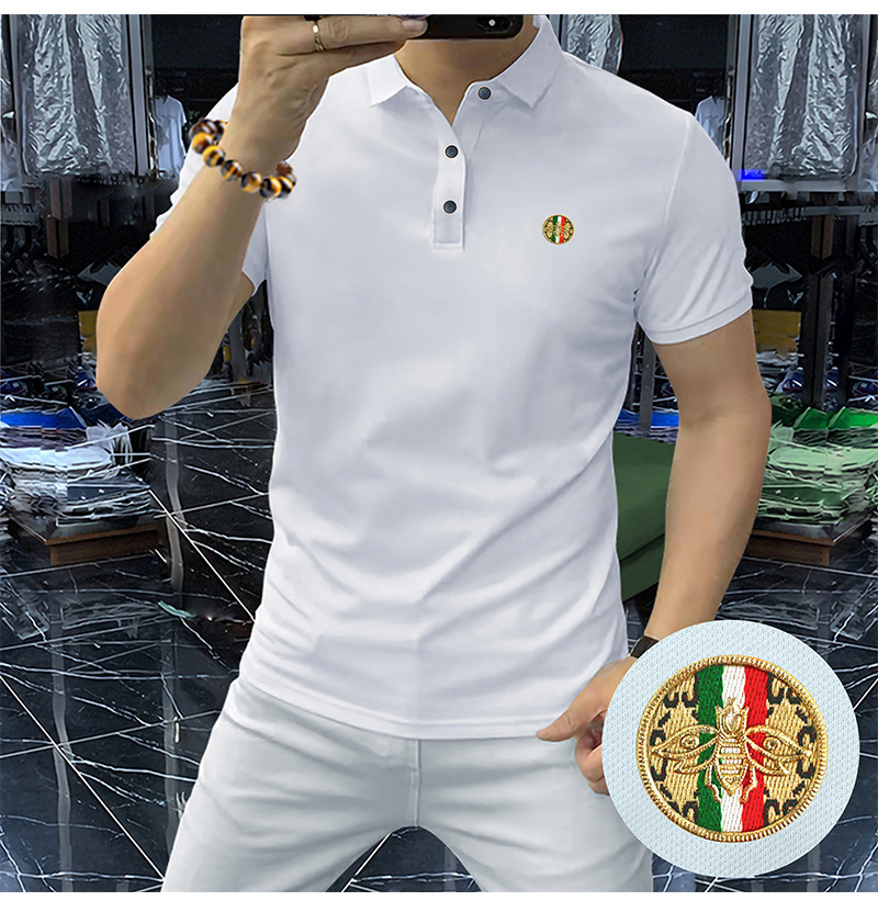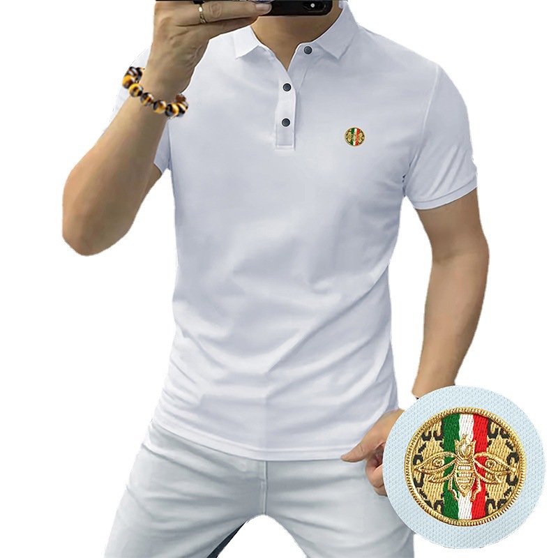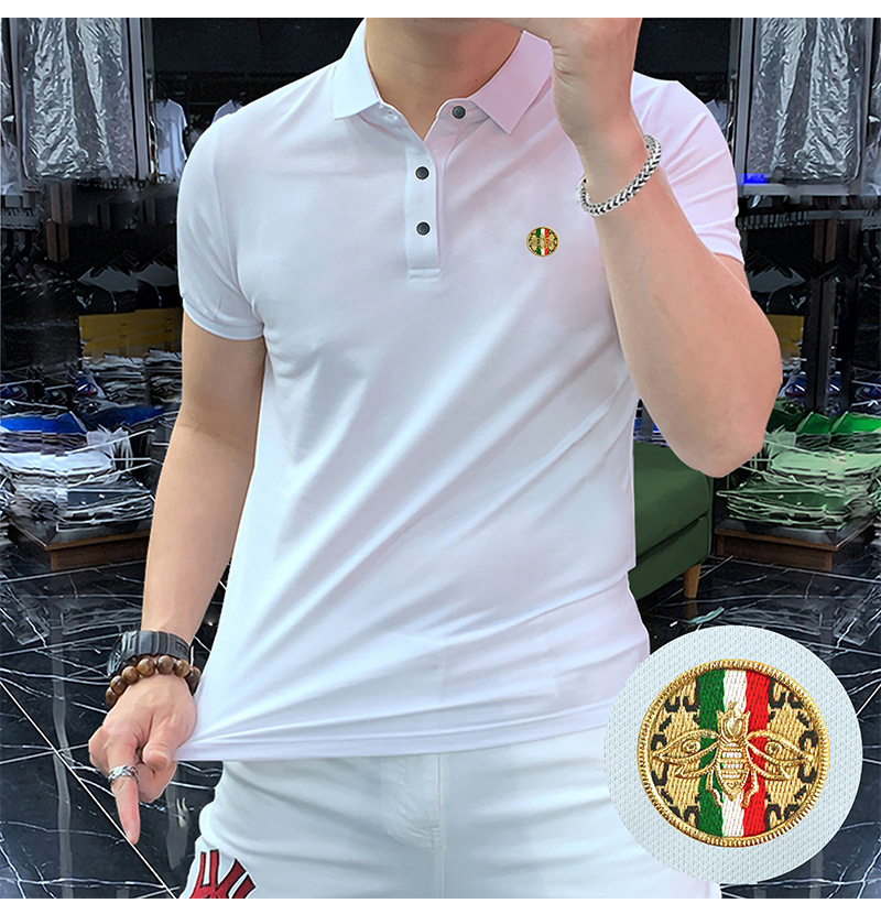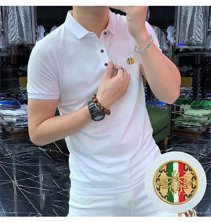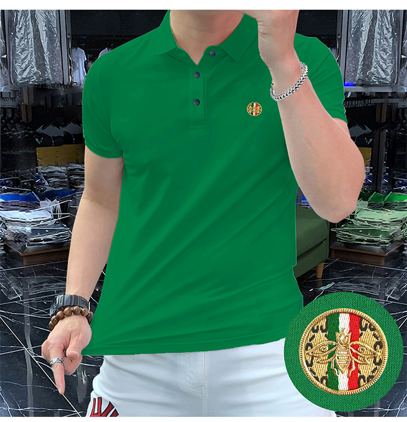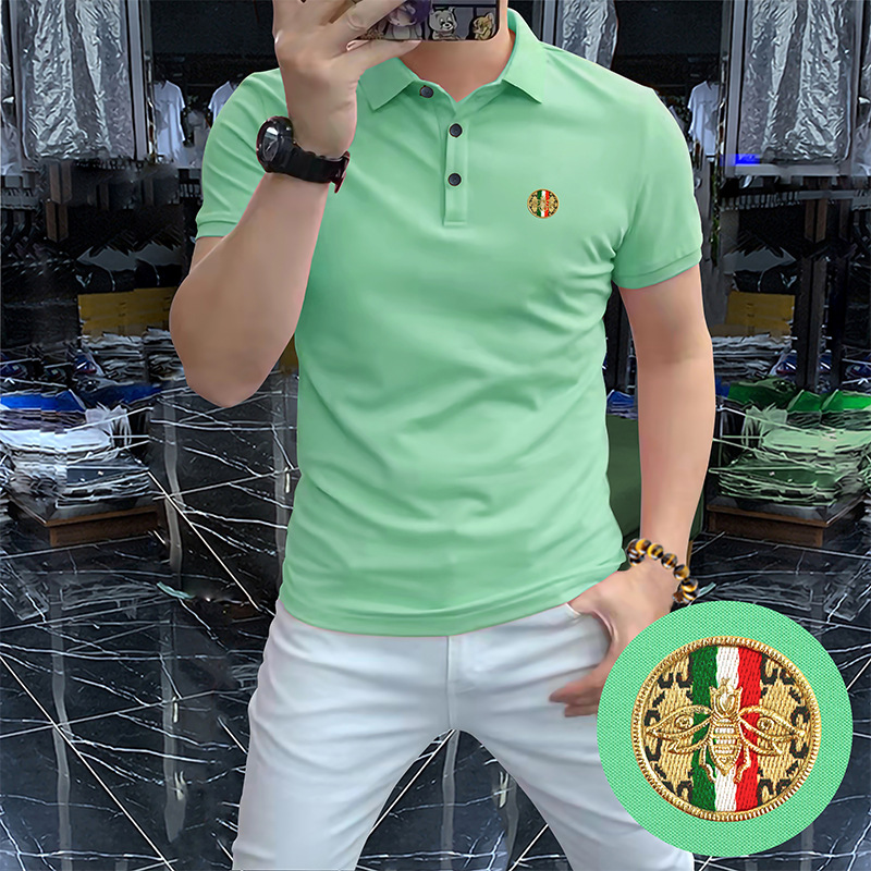 유러피언 스테이션 뉴 남성용 반팔 폴로 셔츠 브라이트 컬러 라펠 반팔 남성 머서라이즈 펄 코튼 슬림핏 패션 트렌디