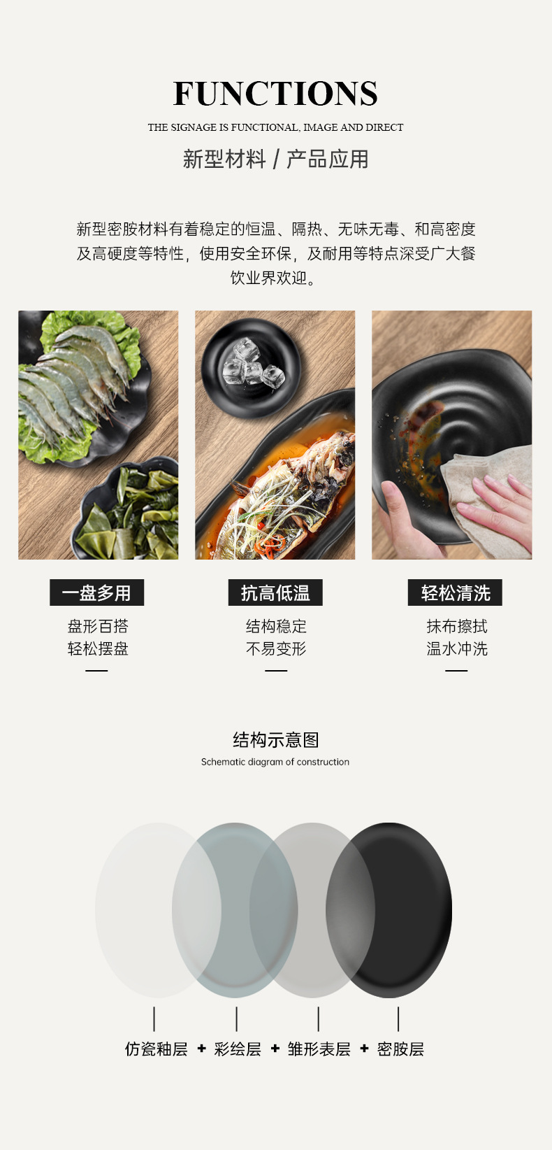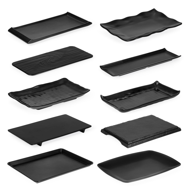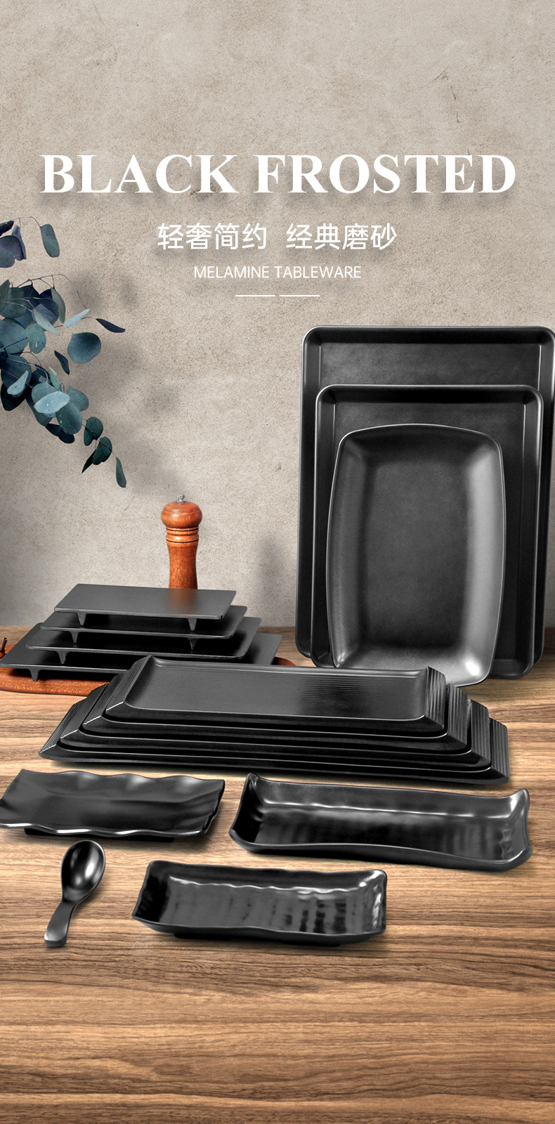 멜라민 모조 도자기 전골 가게 검정 식기 차오산 쇠고기 접시 접시 포함 일본식 바비큐 가게 평판 식기