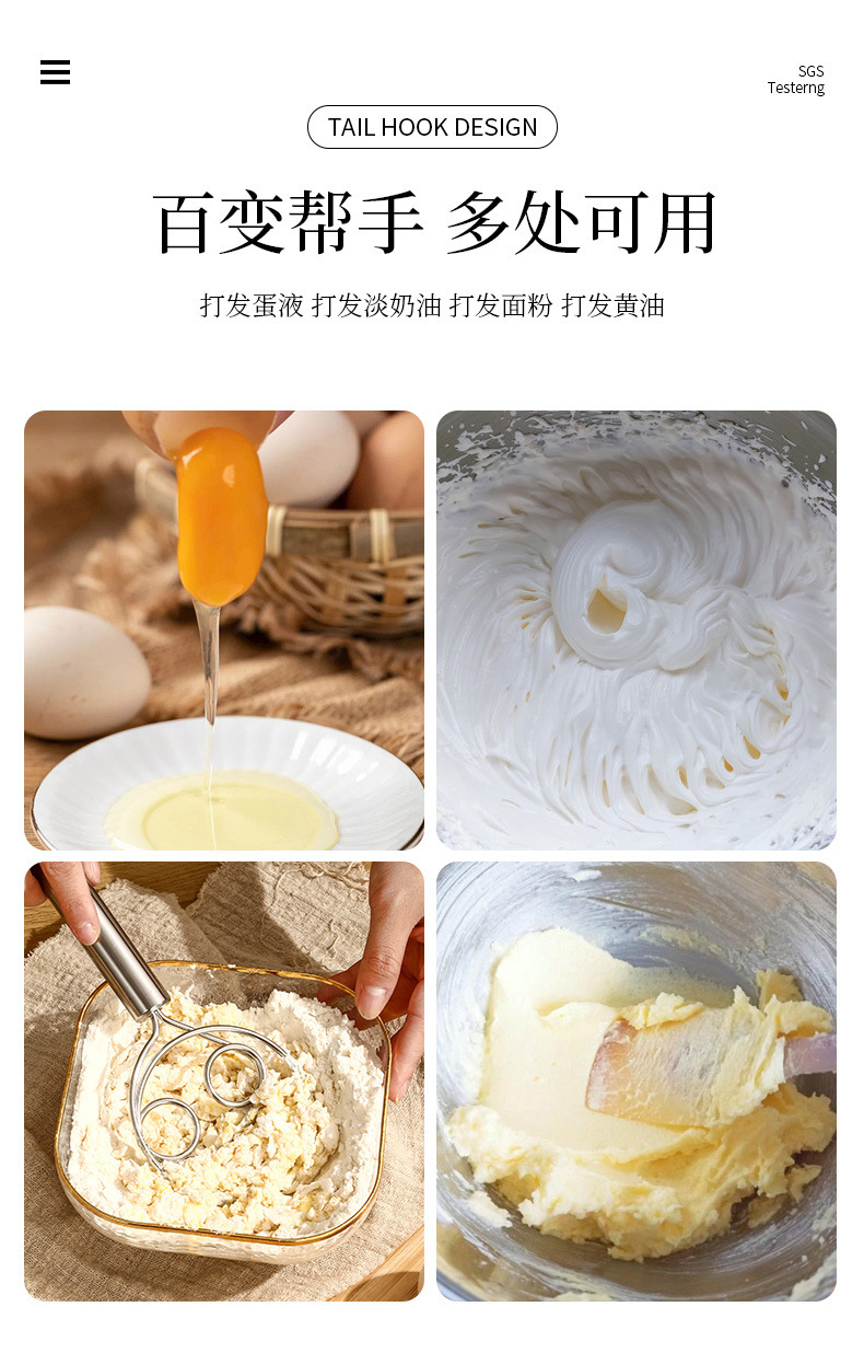 스테인레스 스틸 누들 믹서 아이 코일 누들 믹서 수동 크림 믹서 가정용 계란 비터 핸드 믹서