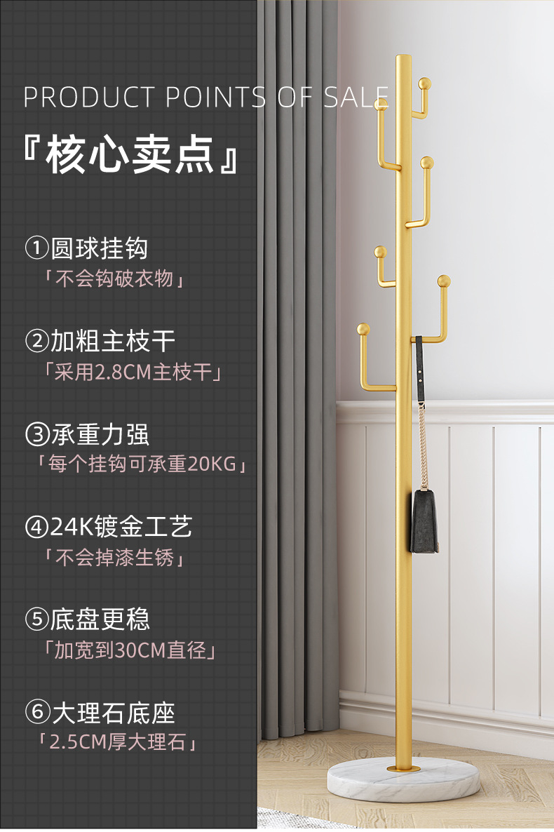 단일 봉형 옷걸이, 바닥형 침실용 가정용 대리석 옷걸이, 수납 선반, 이동식, 라이트 럭셔리 스타일