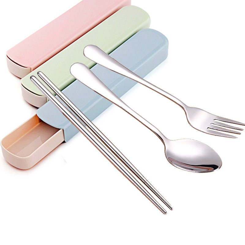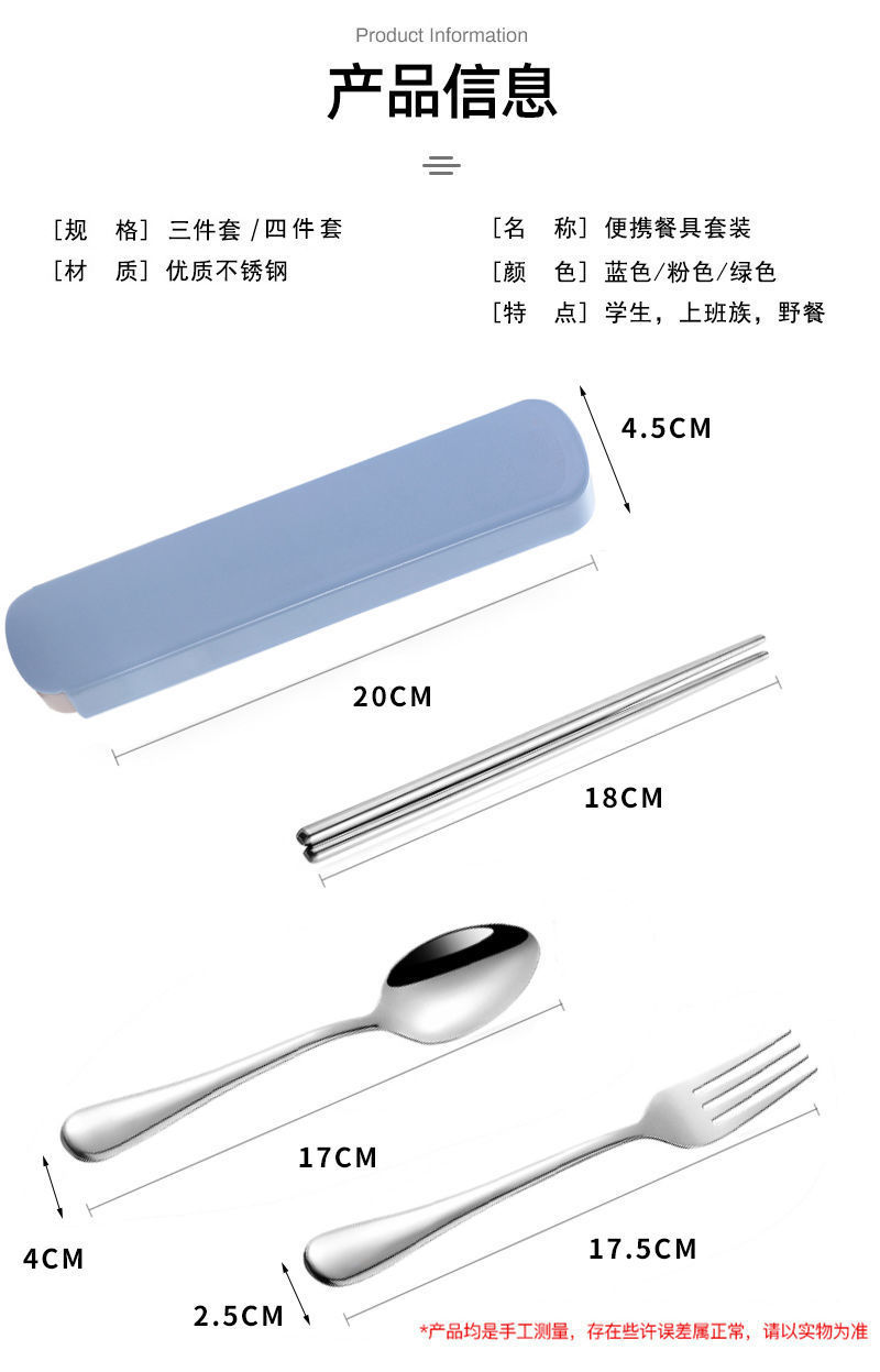 스테인리스 휴대용 식기 여행용 숟가락 포크 긴 손잡이 학생 성인용 젓가락 수저 포크 세트 야외용