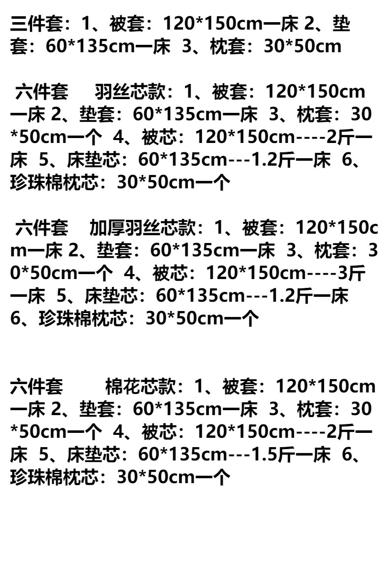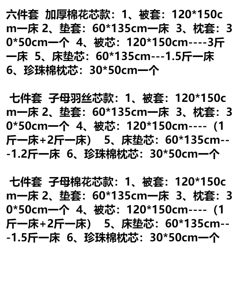 6종 세트 (패드 커버 60*135, 두툼한 실크솜 이불솜 포함)