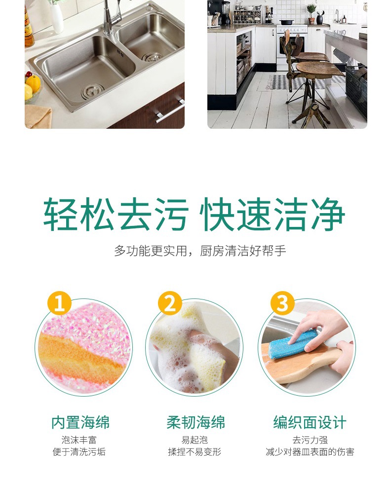 두꺼운 린지오브 천 3개 세트 설거지용 스펀지 브러시 대형 주방용 천 거품 생성 공장 도매