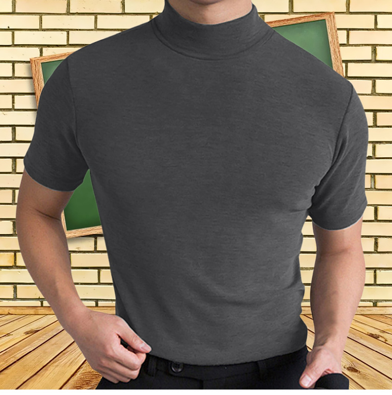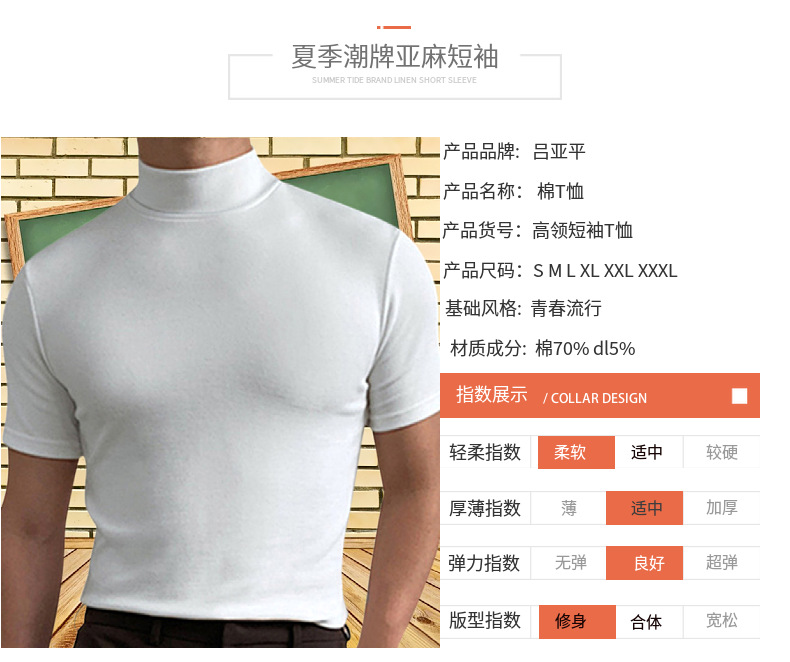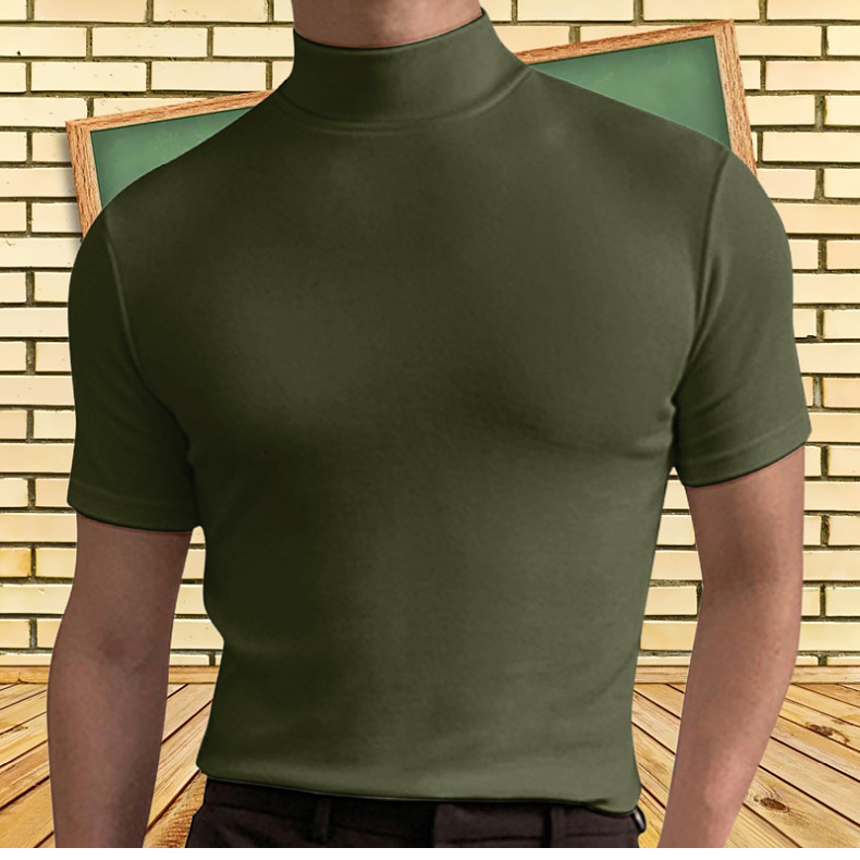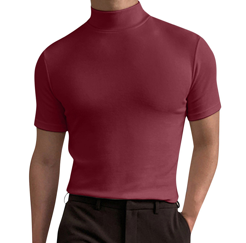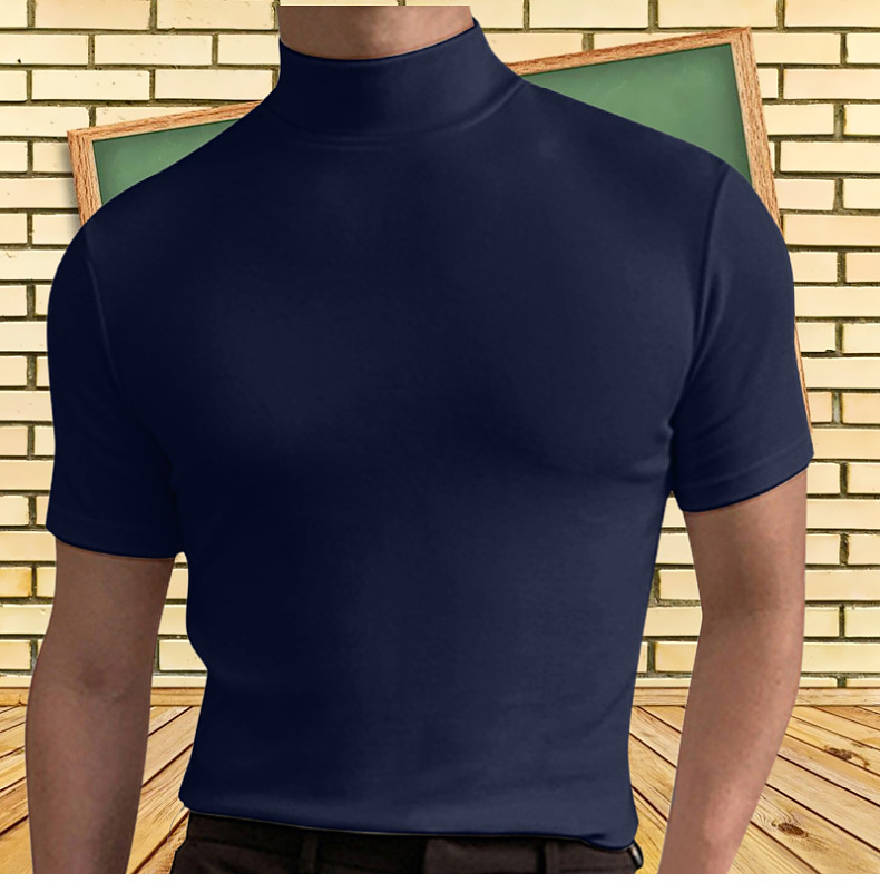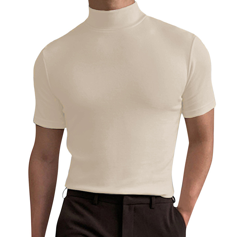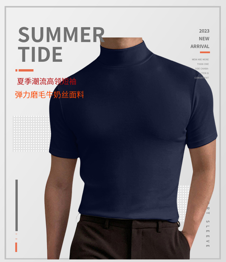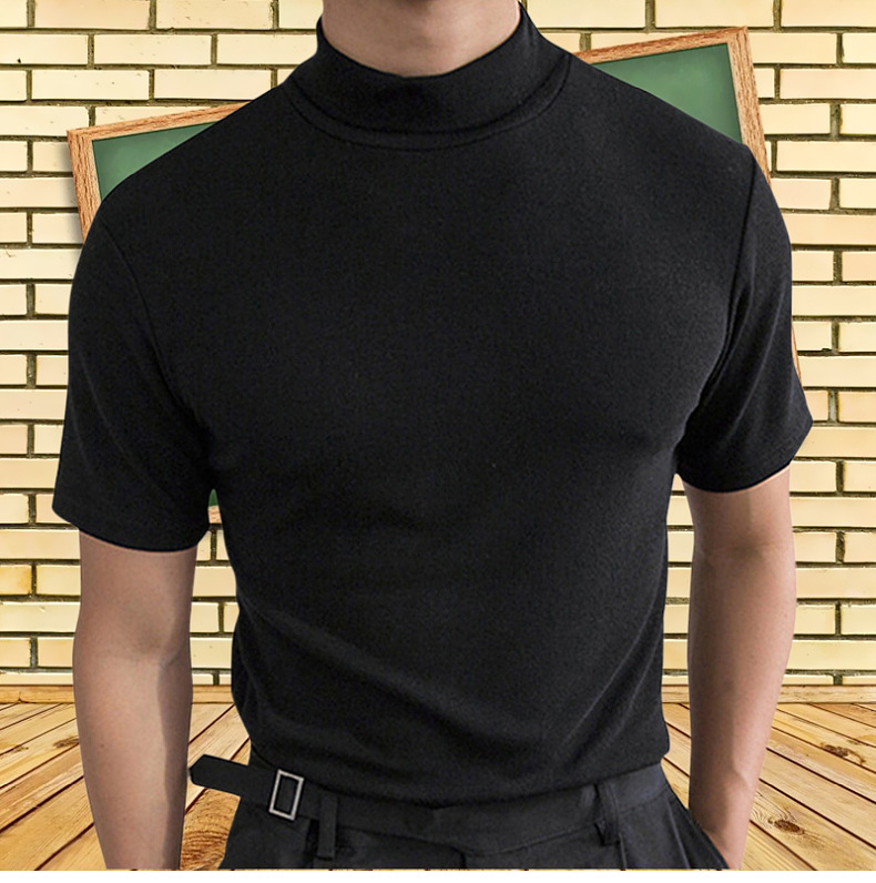 크로스보더 무지 면 반팔 남성 상의 2023 봄 가을 하이넥 티셔츠 남성 이너웨어 크로스보더 인기 상품 멋짐