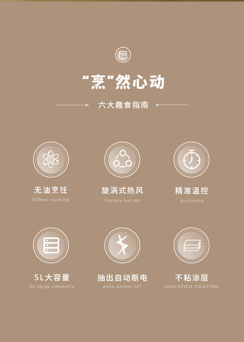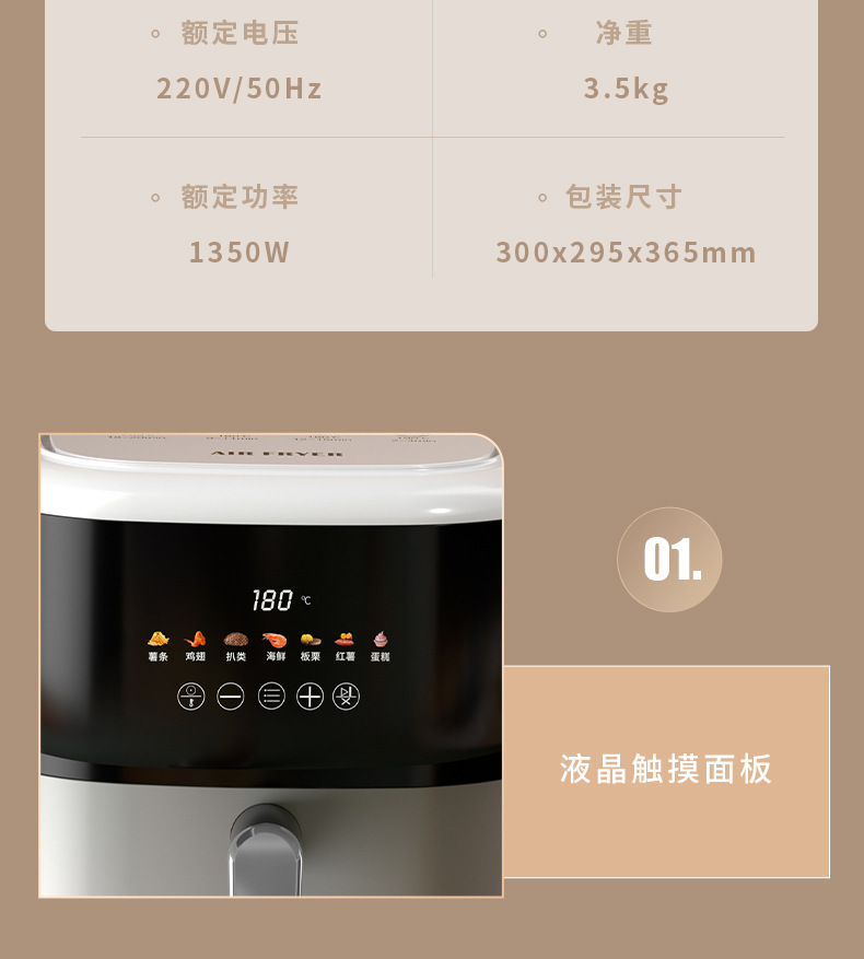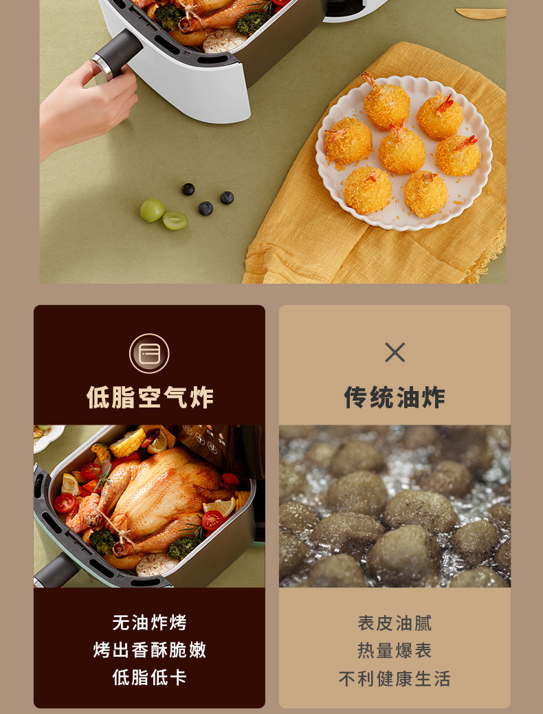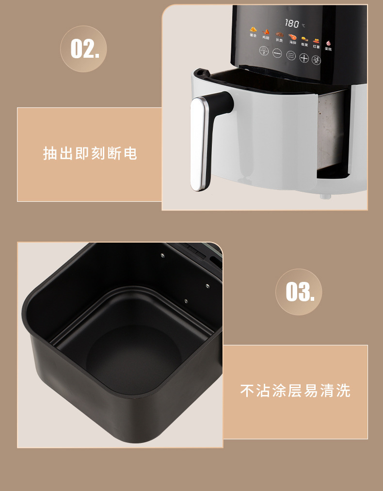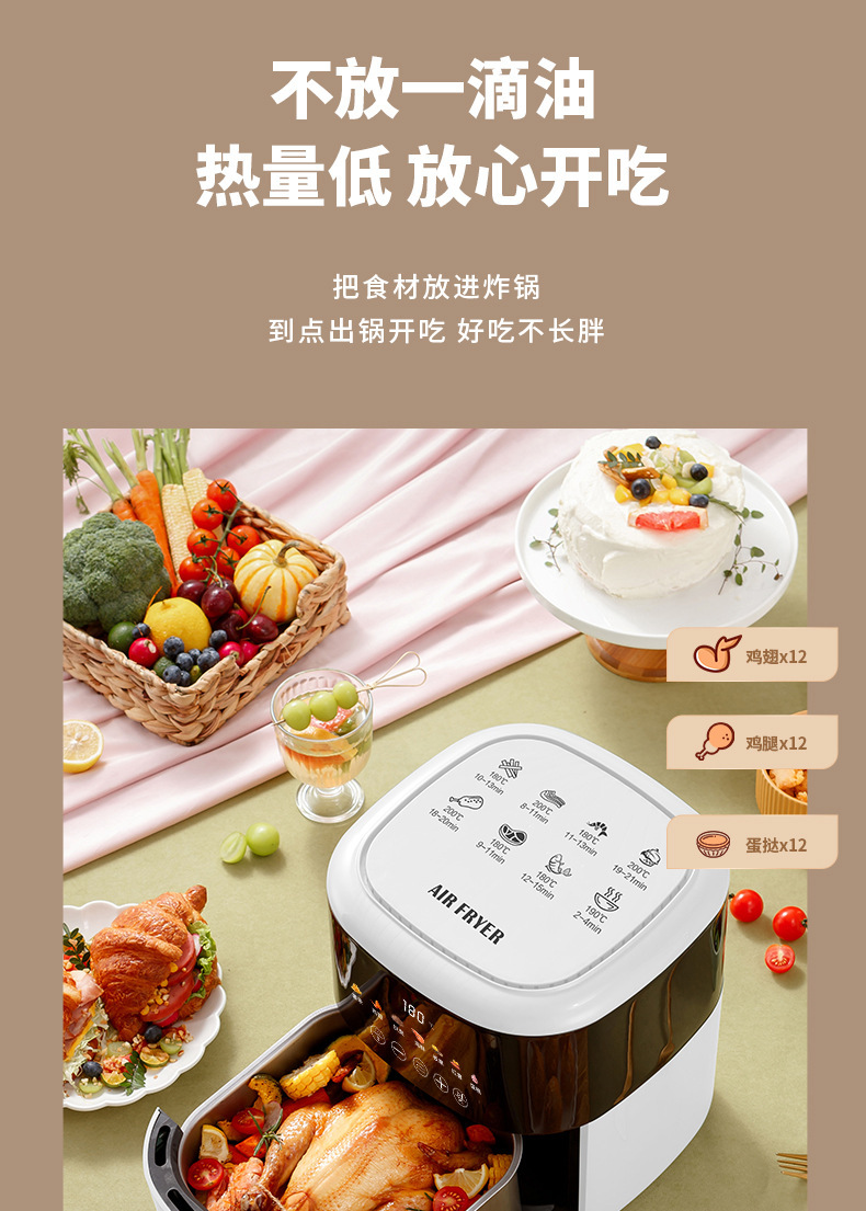 공장 직영 에어프라이어 5리터 대용량 가정용 전기프라이어 다기능 터치스크린 무오일 전기오븐
