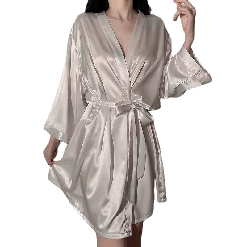 春夏季仿真丝冰丝绸浴袍睡裙睡袍纯色家居服韩版性感宽松薄款