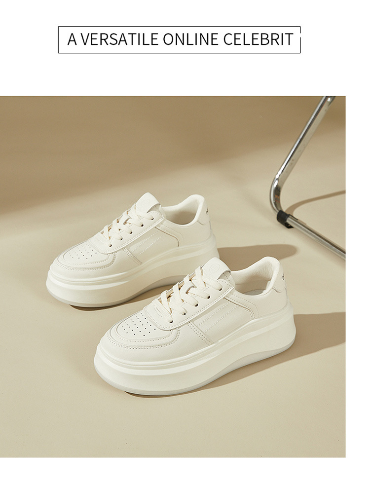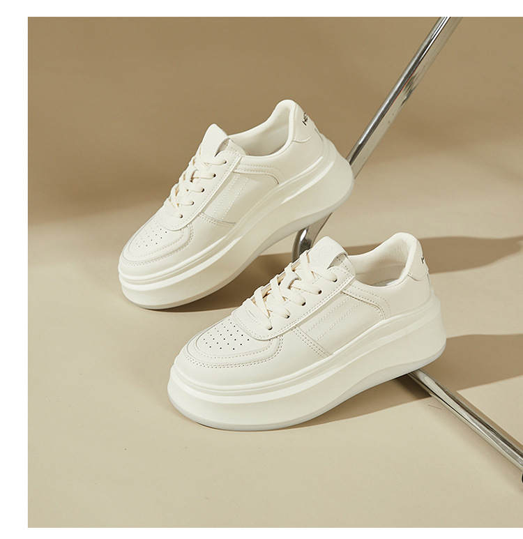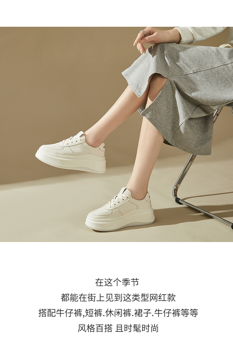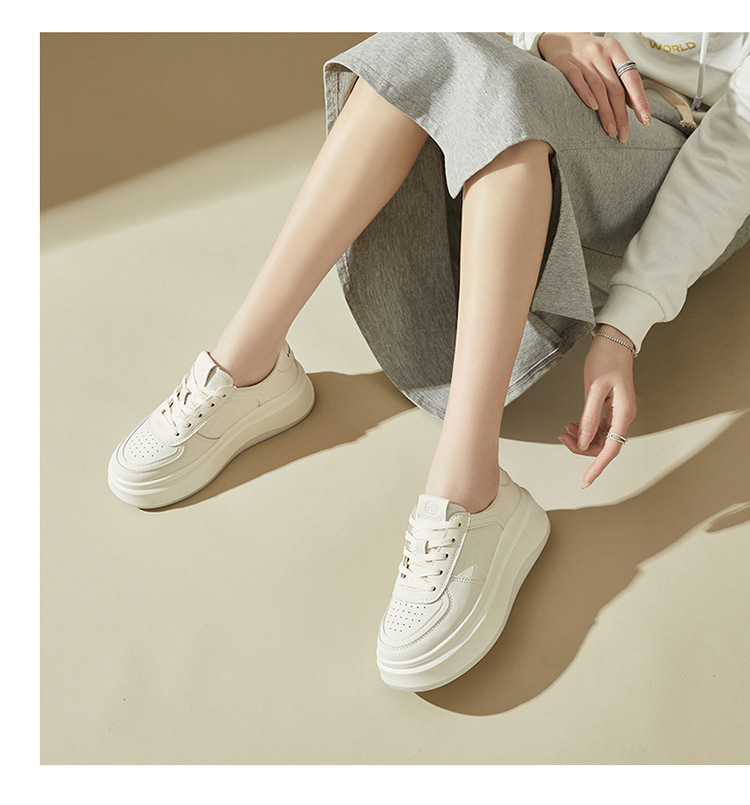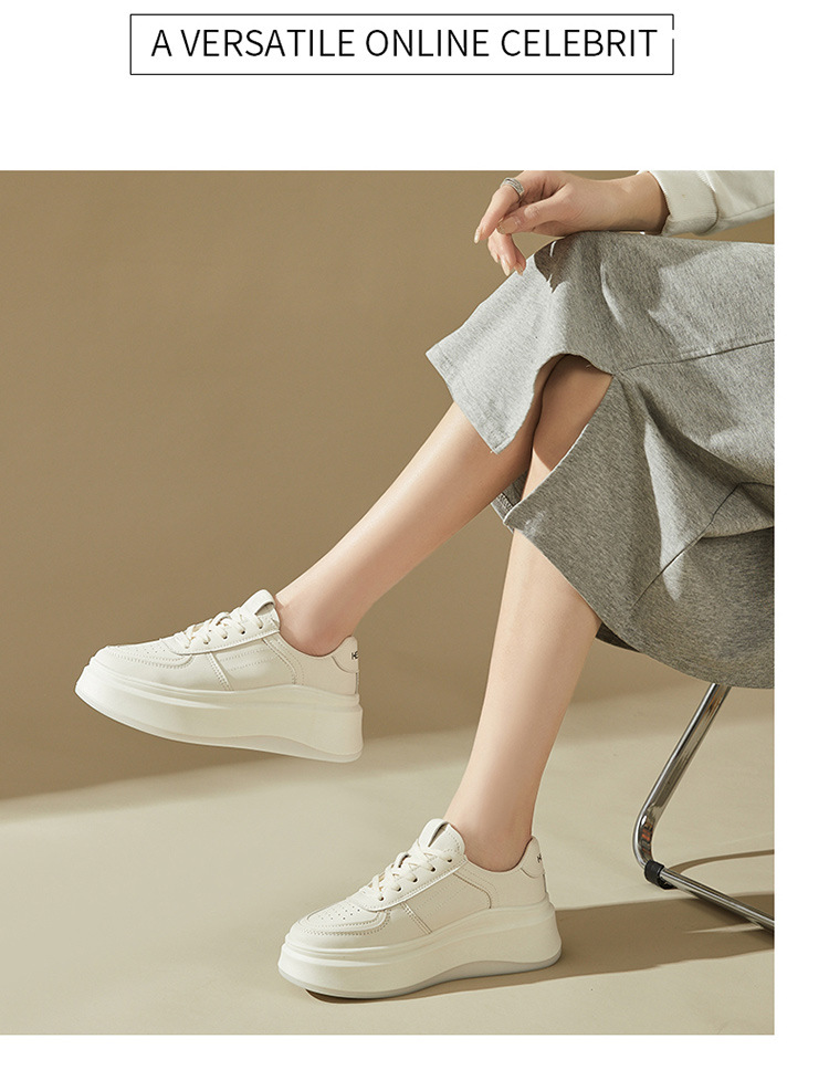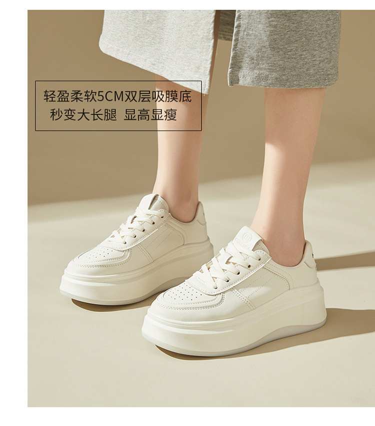 정품 가죽 흰색 신발 여성의 2024 새로운 올매치 경량 플랫폼 신발 작은 높이 증가 플랫폼 스포츠 캐주얼 운동화