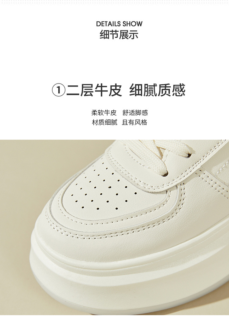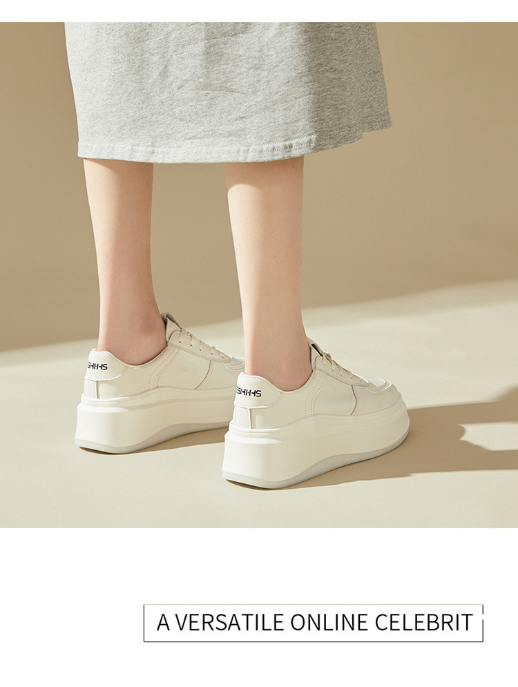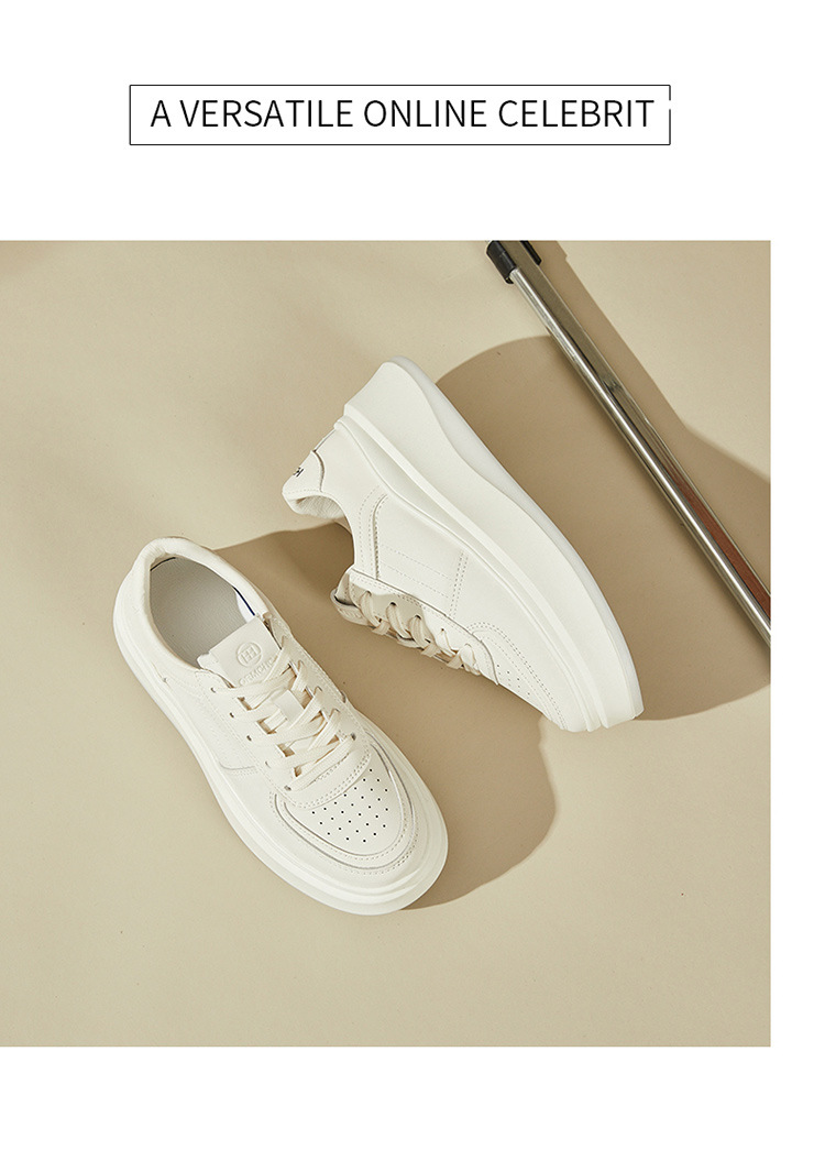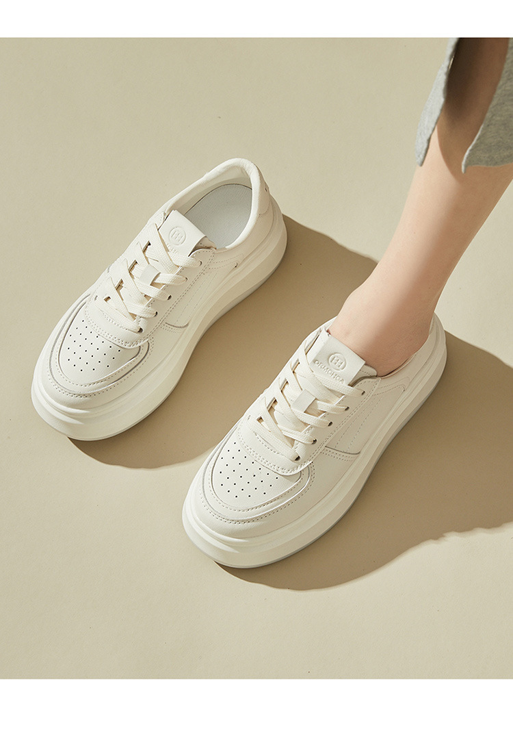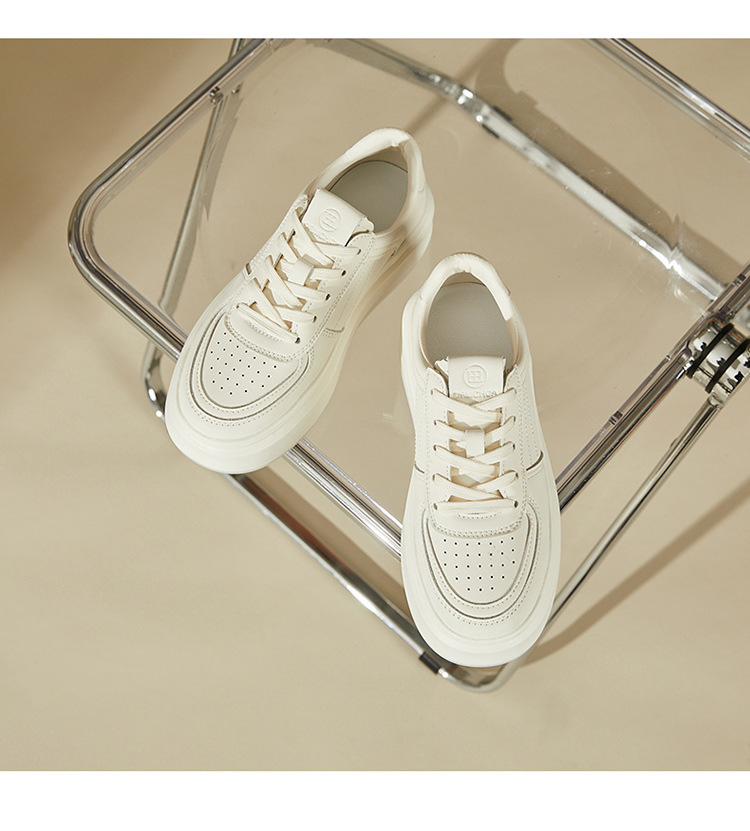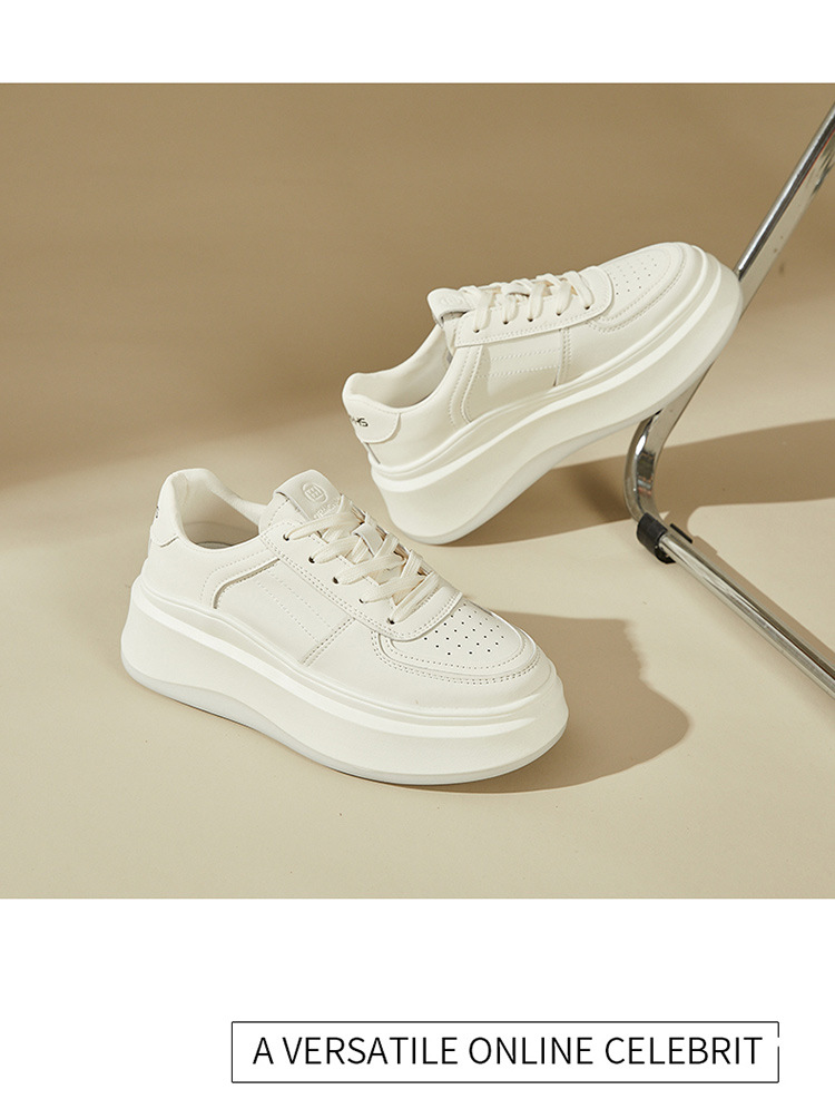정품 가죽 흰색 신발 여성의 2024 새로운 올매치 경량 플랫폼 신발 작은 높이 증가 플랫폼 스포츠 캐주얼 운동화