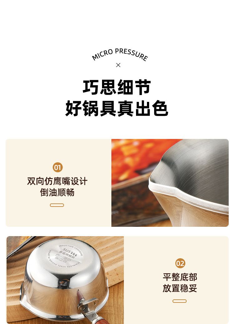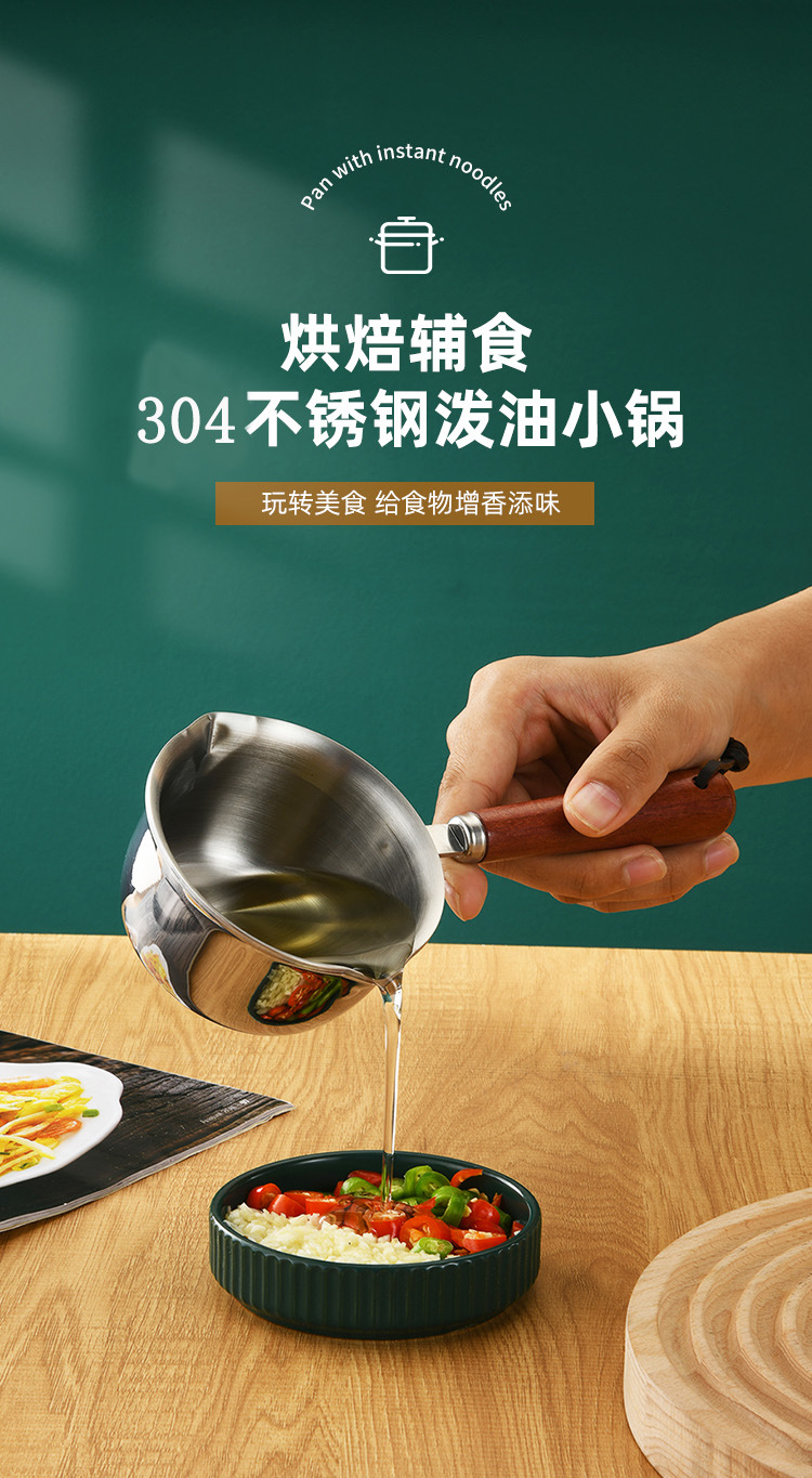 304 스테인리스 스틸 소형 기름주전자, 인터넷 유명인들이 사용하는 특별한 도구, 뜨거운 기름을 붓는 미니 우유냄비, 기름을 뿌리는 데 적합한 논스틱 기름주전자