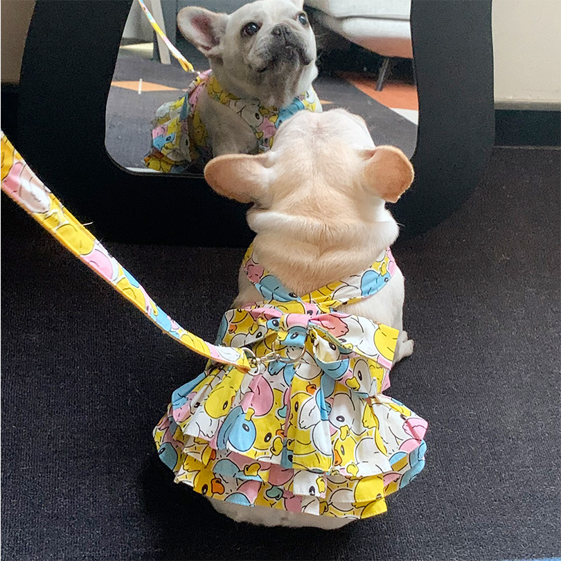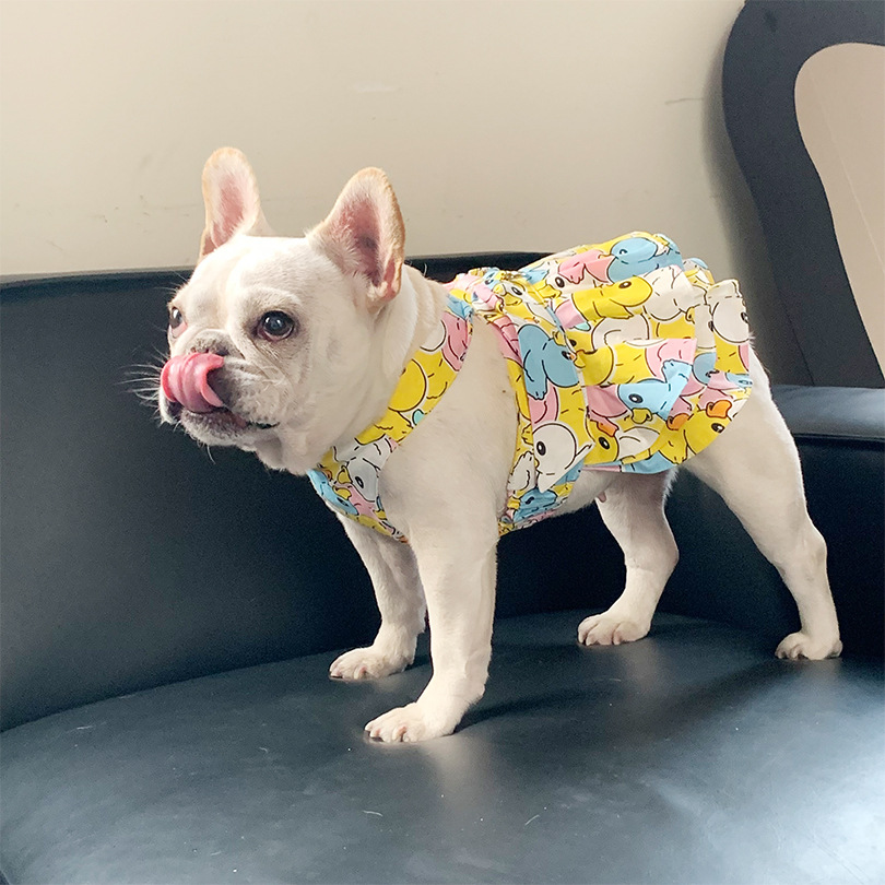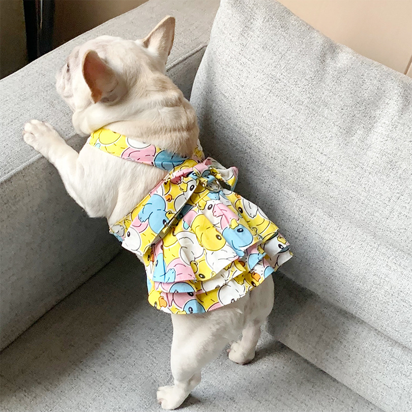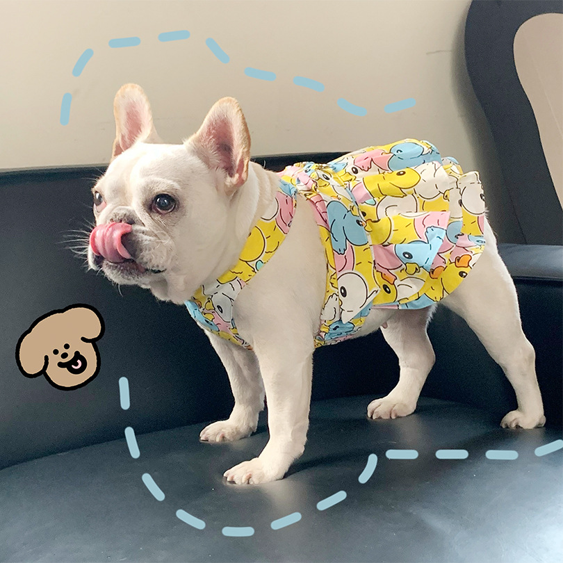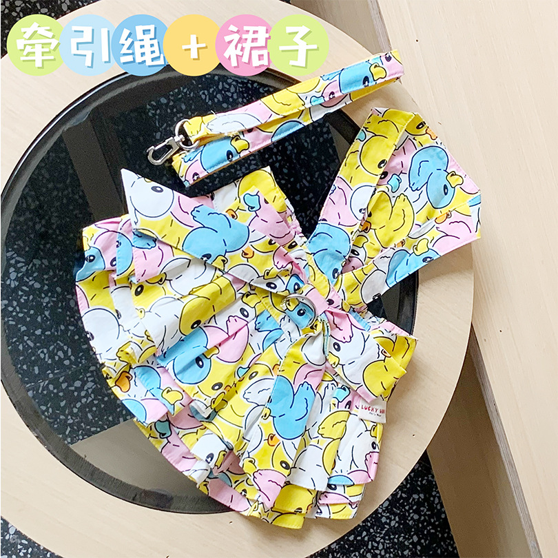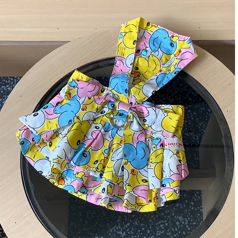 여름 애완 동물 고양이 개 옷 면 만화 오리 쓰리 피스 스커트 테디 코지 Fa Dou Schnery 중형 및 소형 개 옷