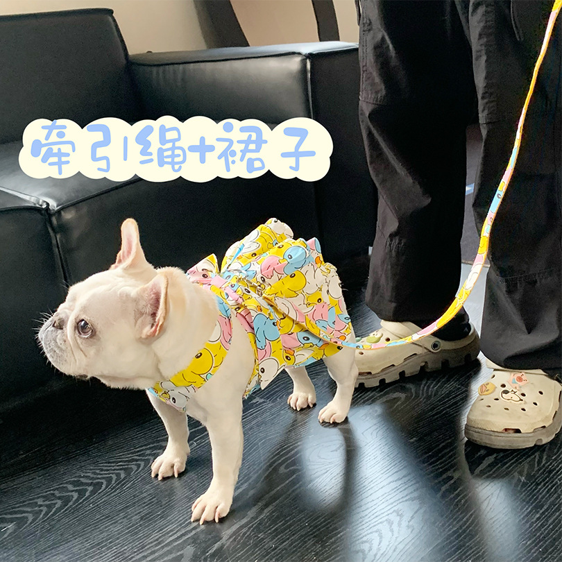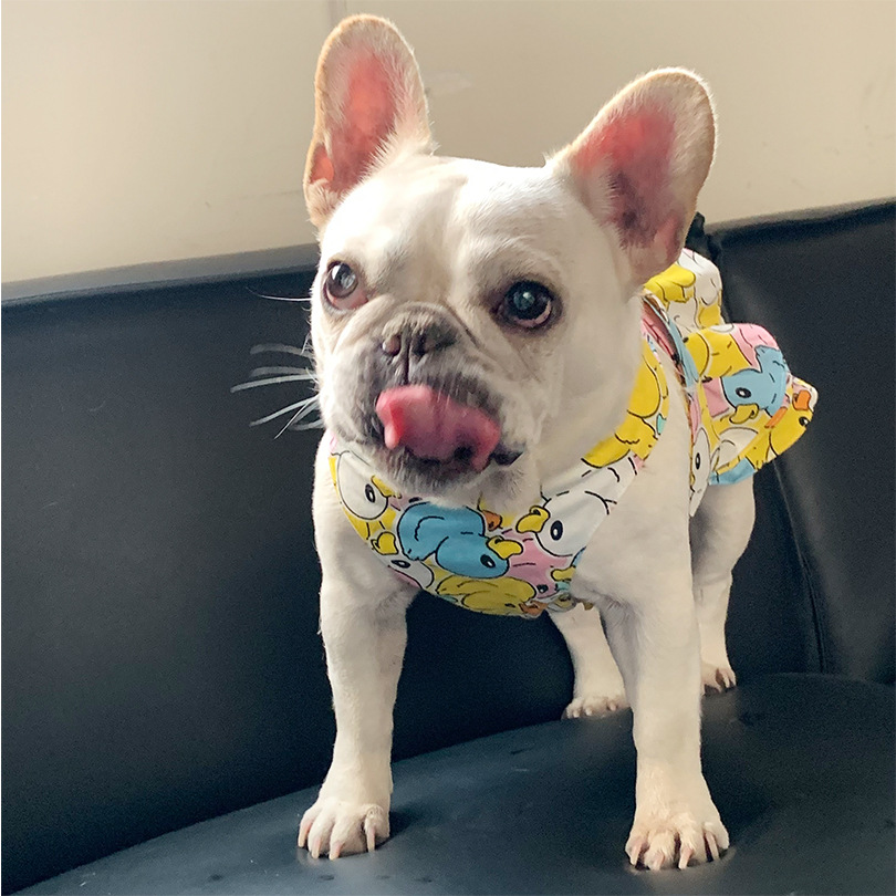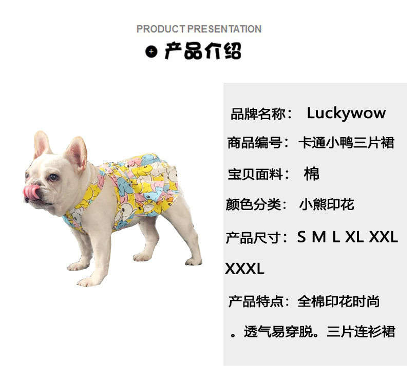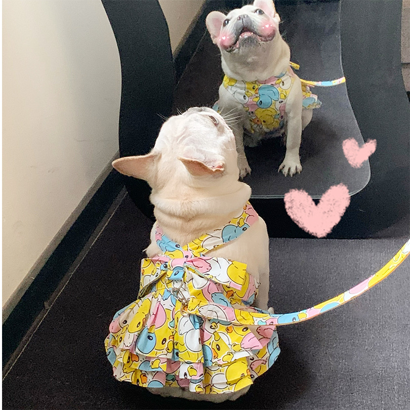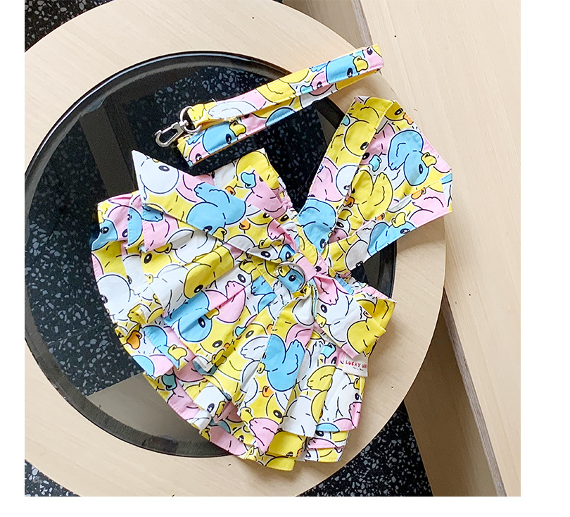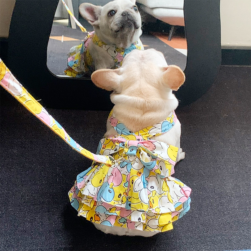여름 애완 동물 고양이 개 옷 면 만화 오리 쓰리 피스 스커트 테디 코지 Fa Dou Schnery 중형 및 소형 개 옷