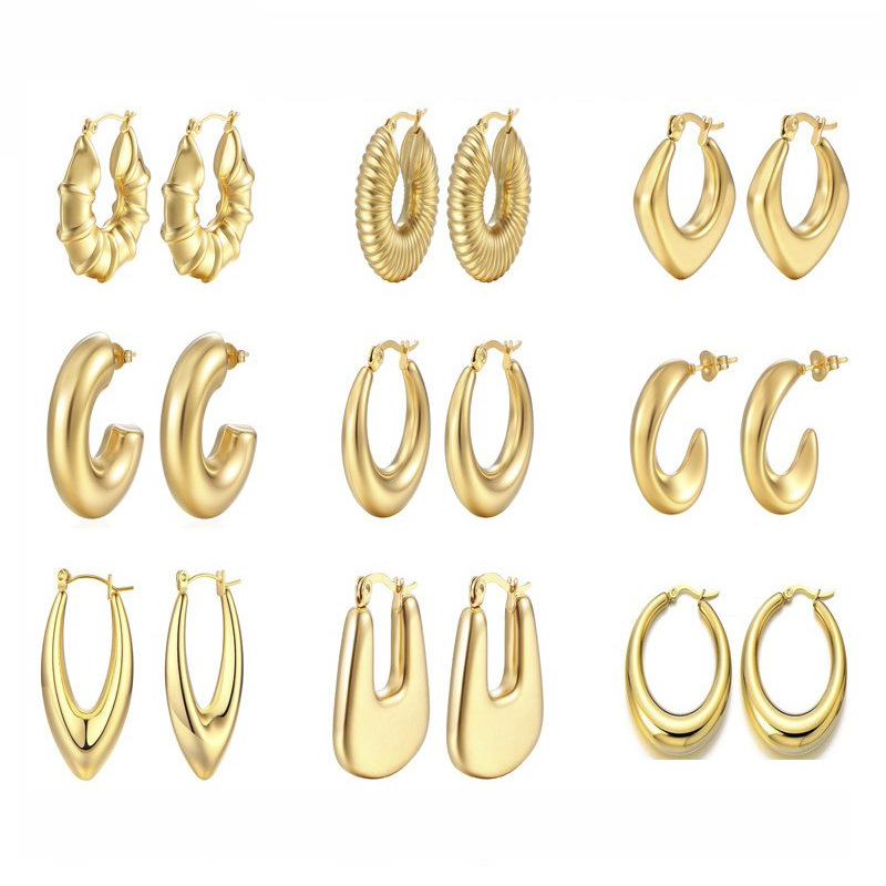 광택 중공 귀걸이 스틸 색상