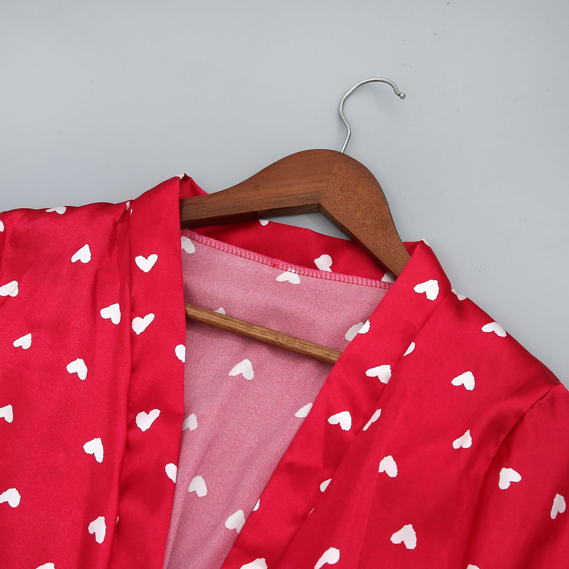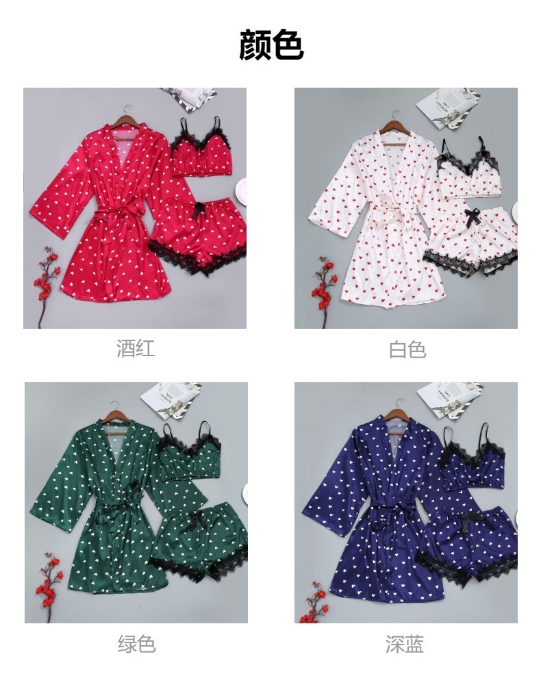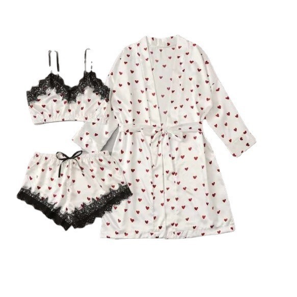 2026 신상품 섹시한 잠옷 신축성 있는 새틴 하트 프린트 3피스 홈웨어 유럽 및 미국 대형 사이즈 도매