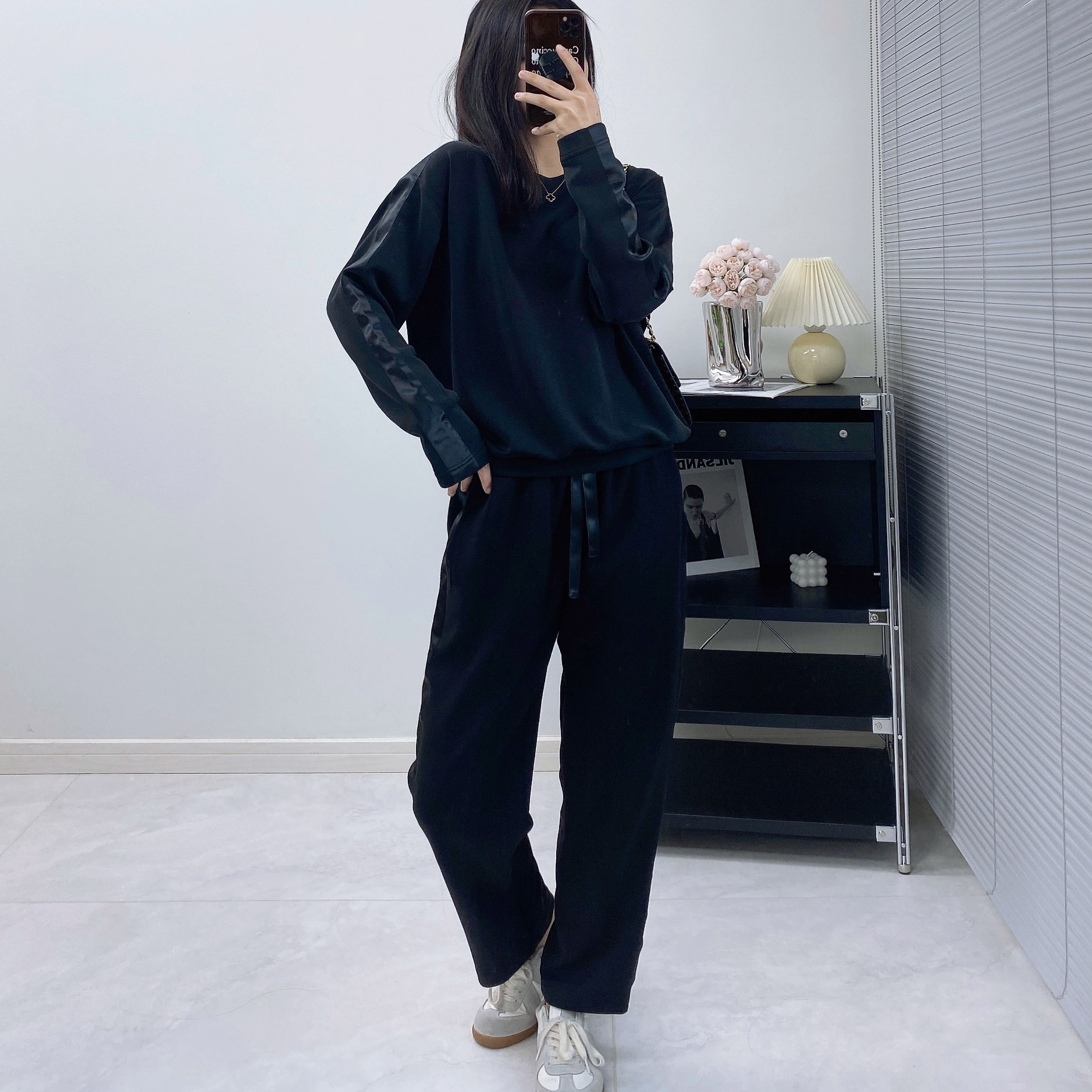 松紧腰运动裤,简单时髦不挑身材,同色系搭配,省去搭配烦恼