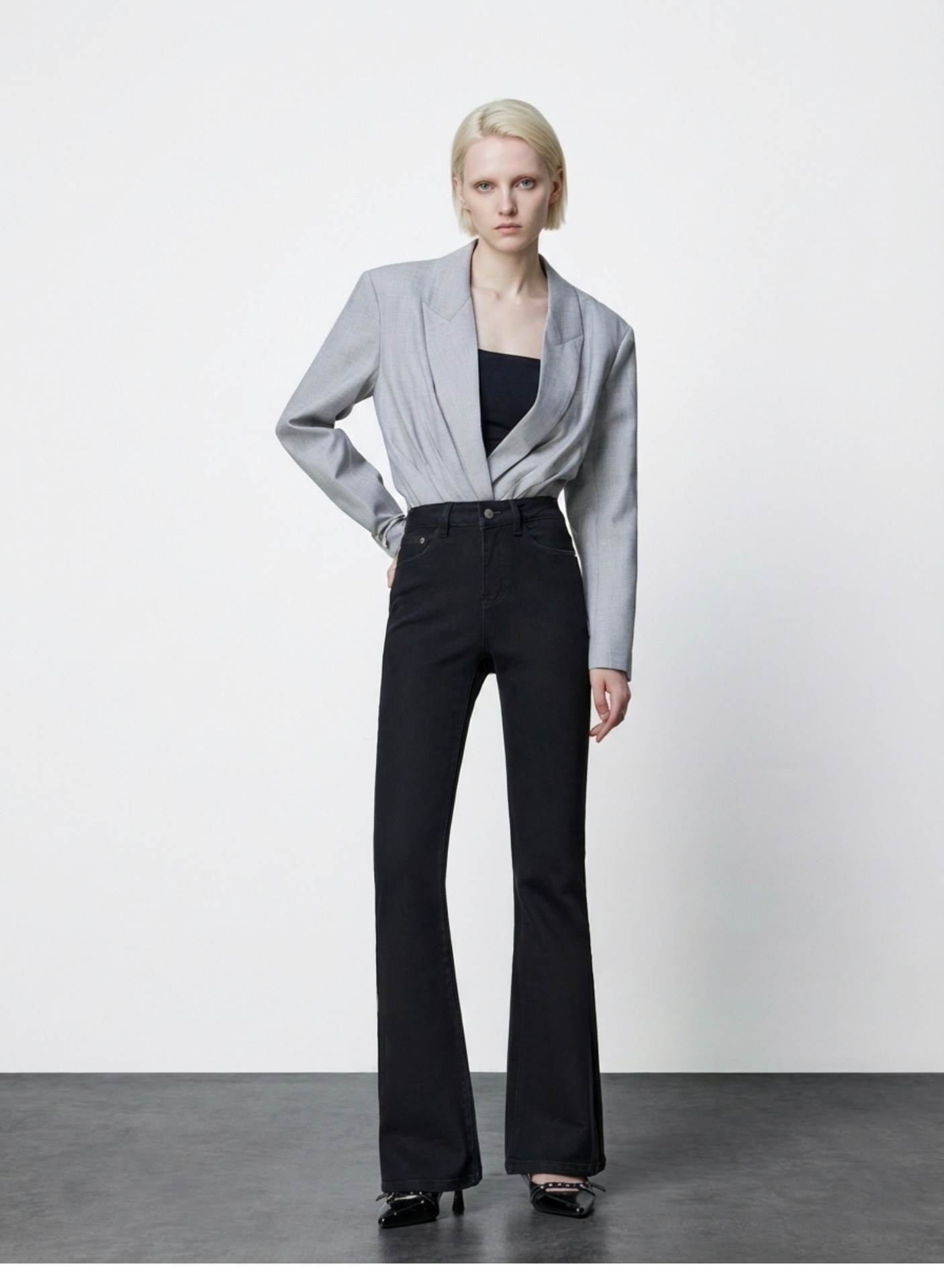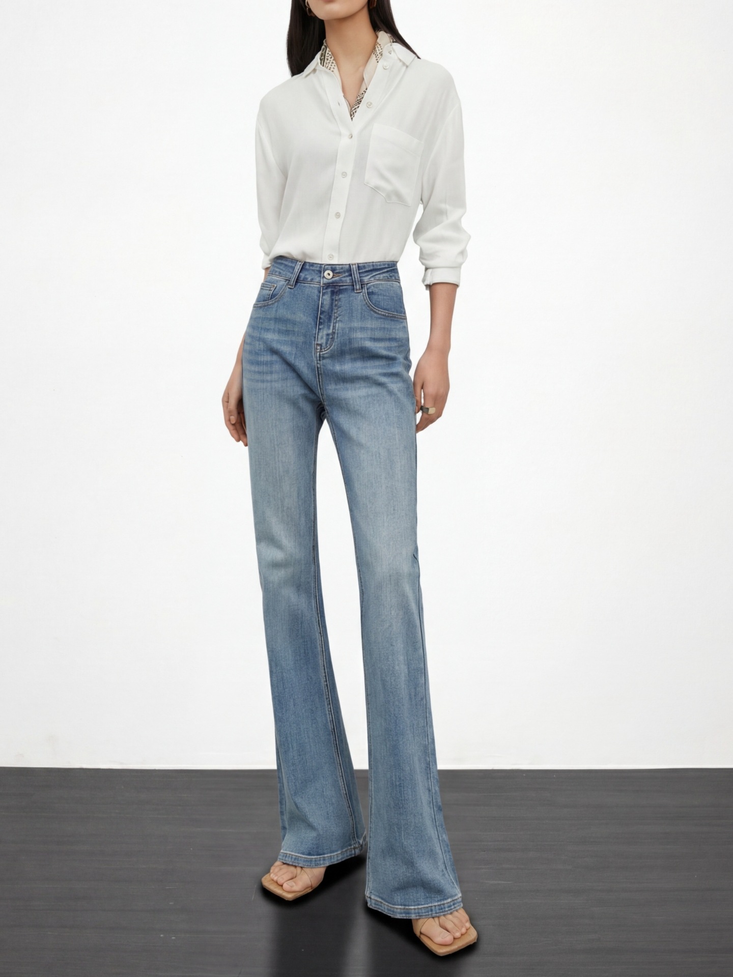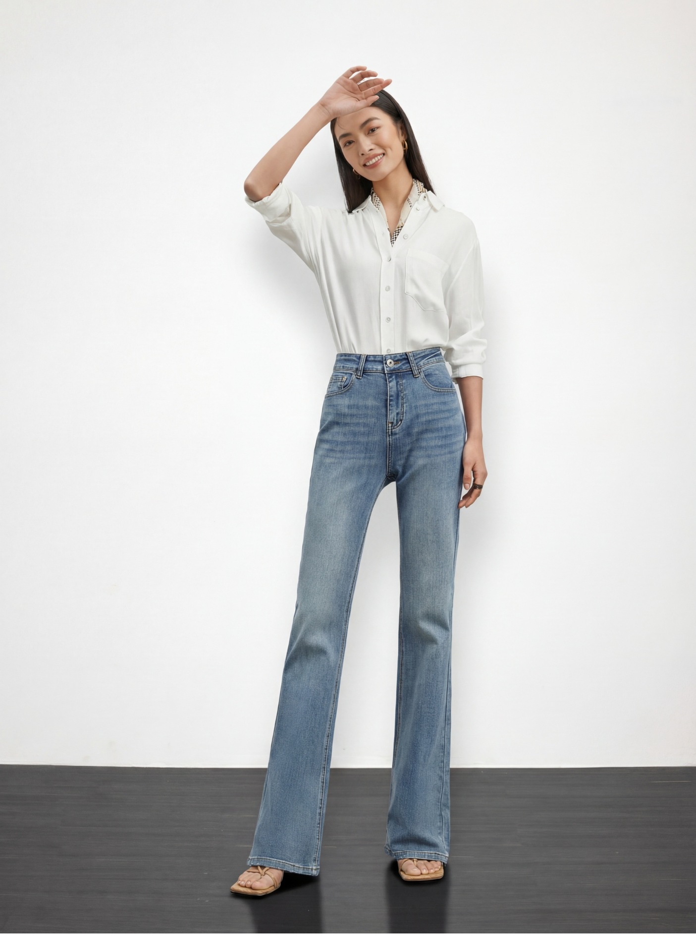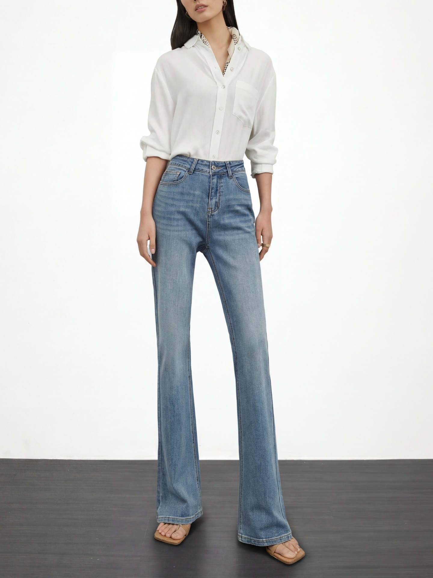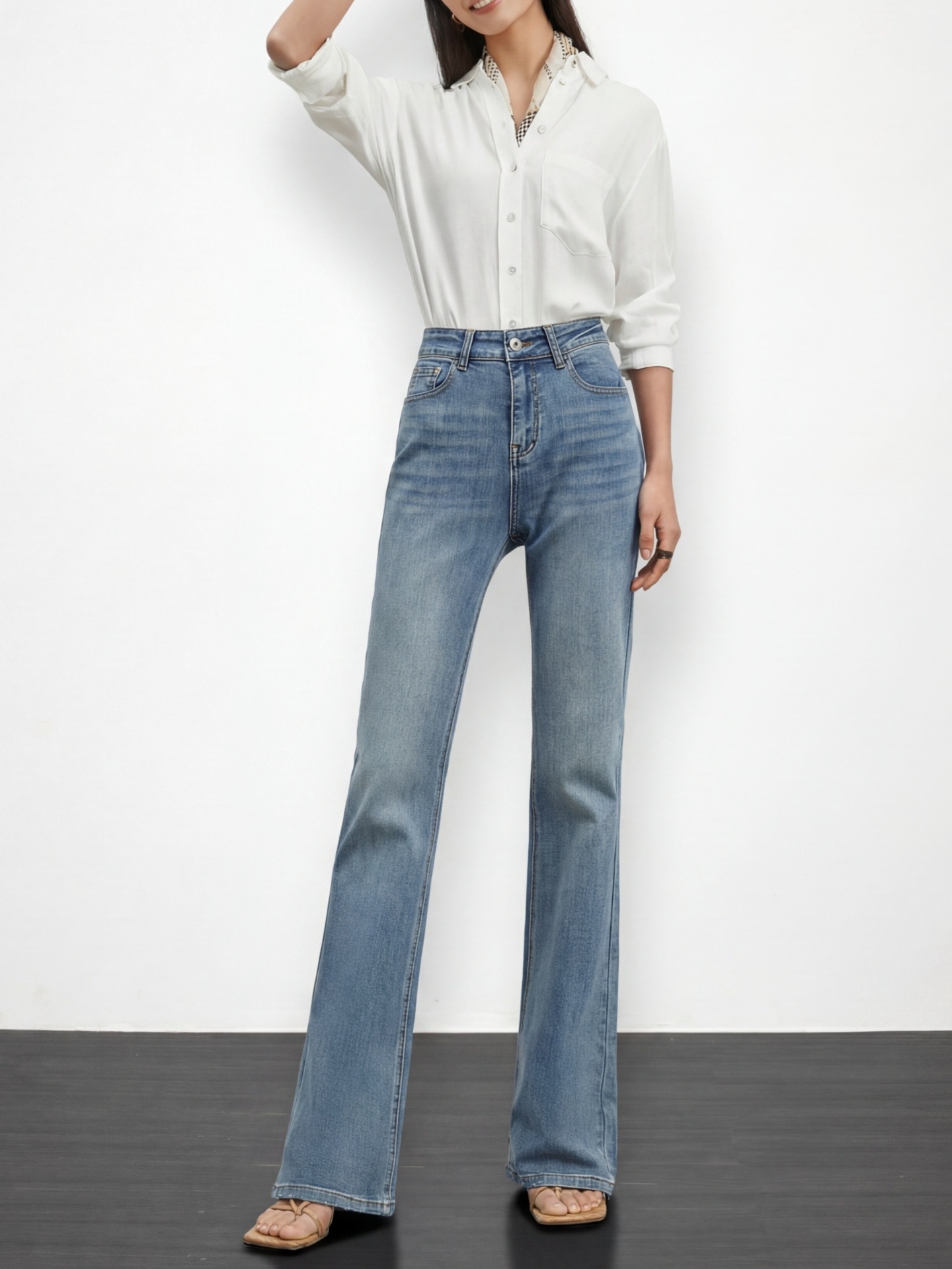 여성용 고급 마이크로 플레어 진 2026년 봄 신상 하이웨이스트 레트로 슬림핏 롱 팬츠