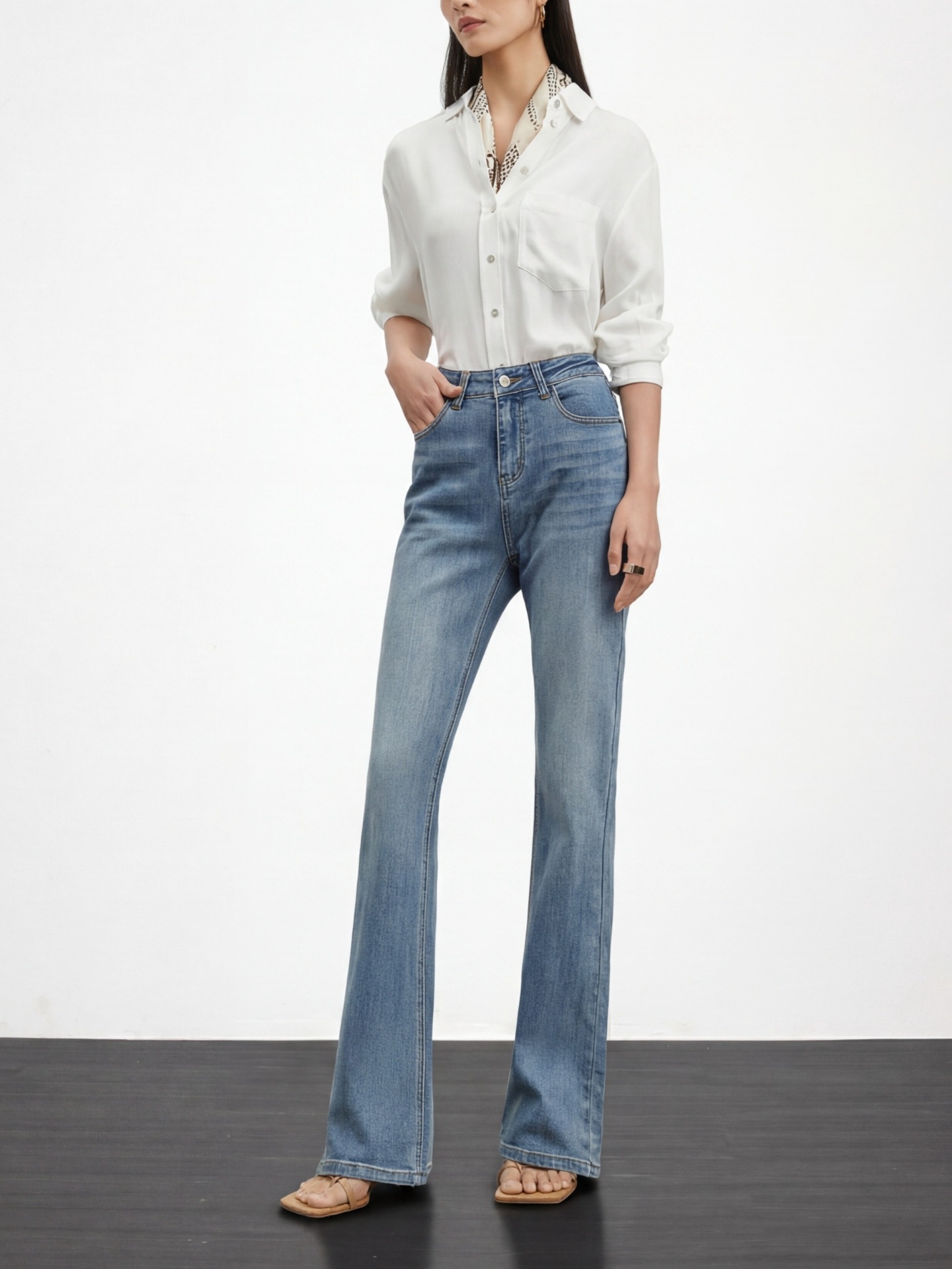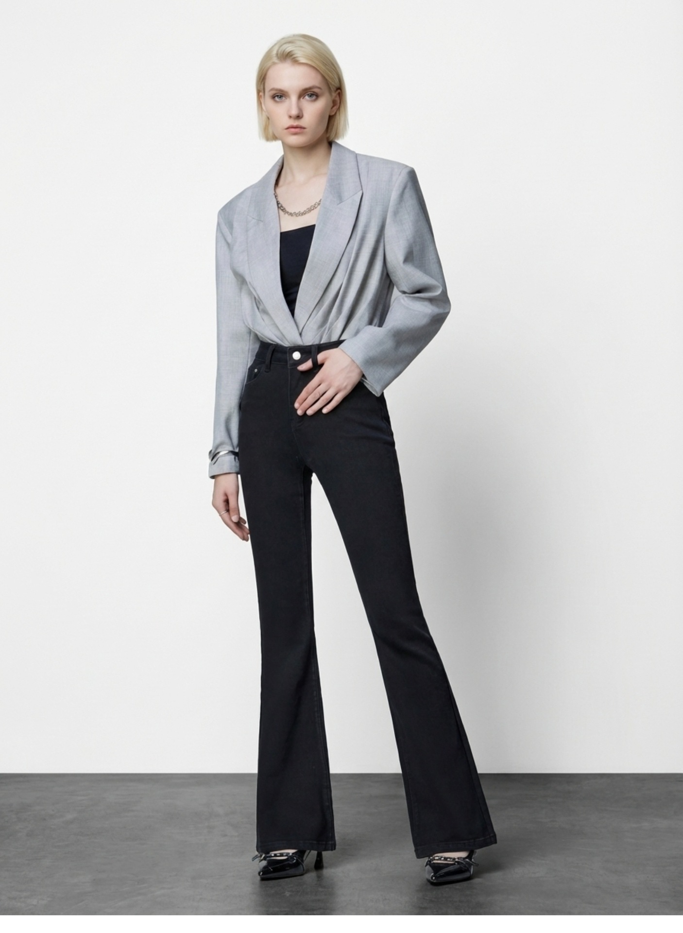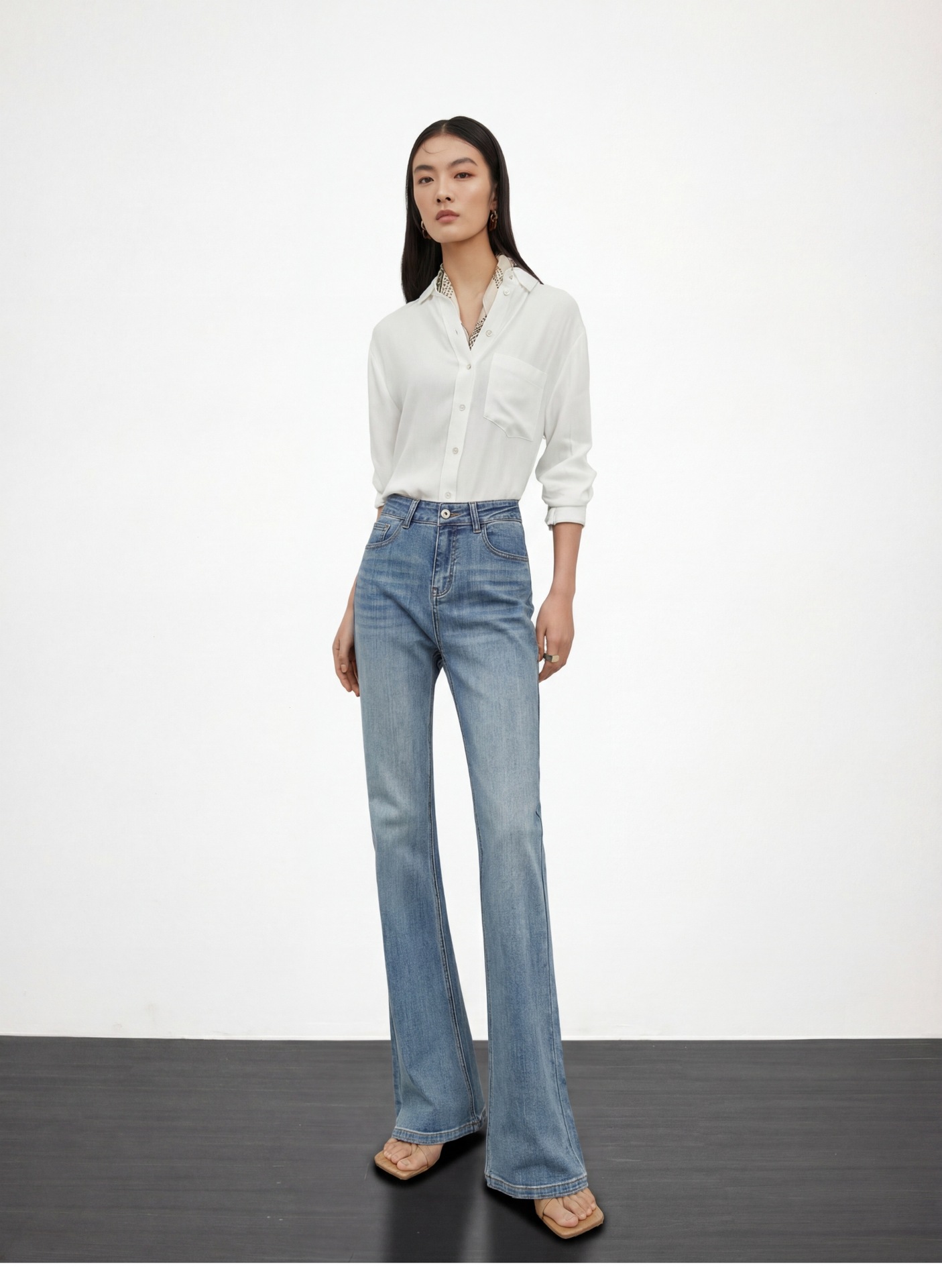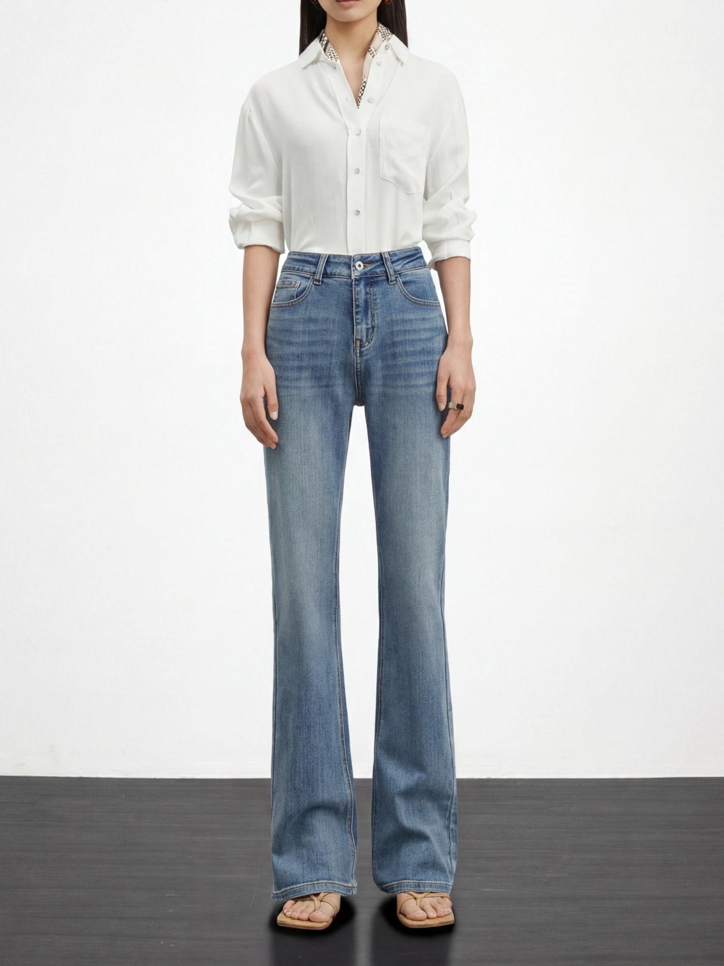 여성용 고급 마이크로 플레어 진 2026년 봄 신상 하이웨이스트 레트로 슬림핏 롱 팬츠