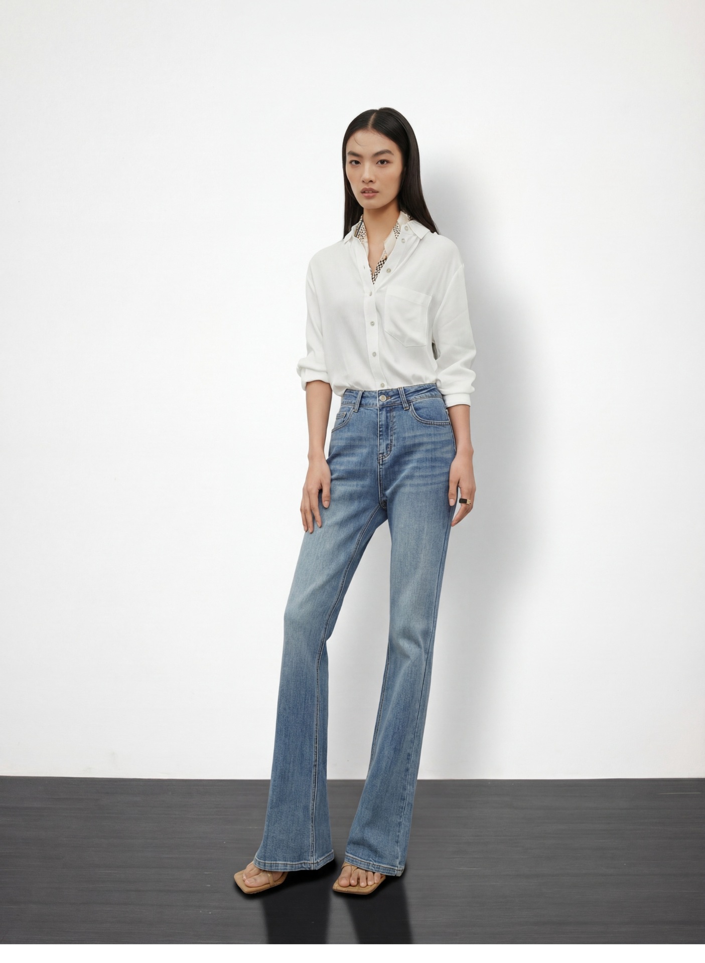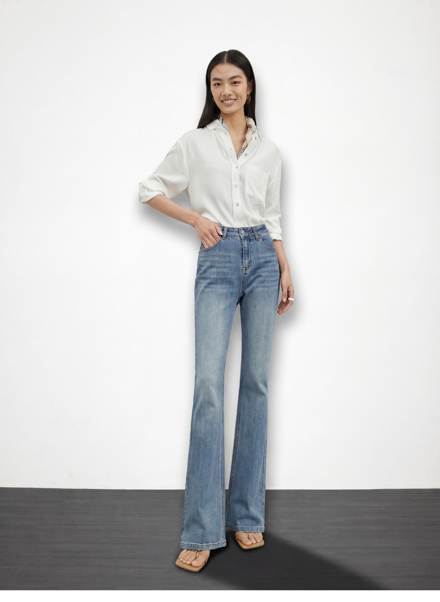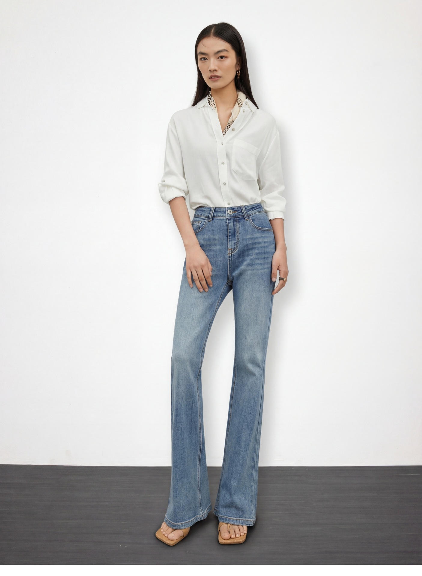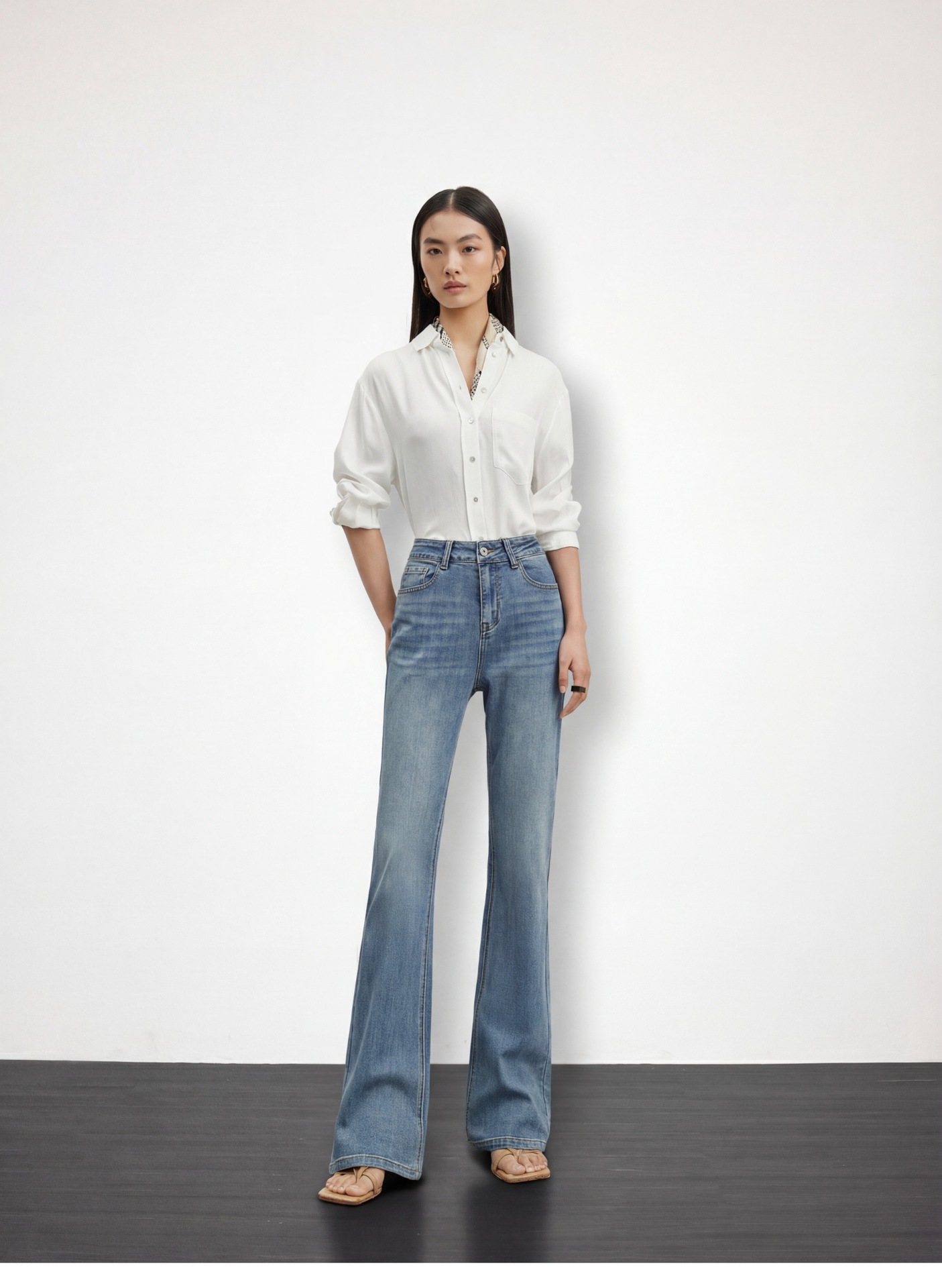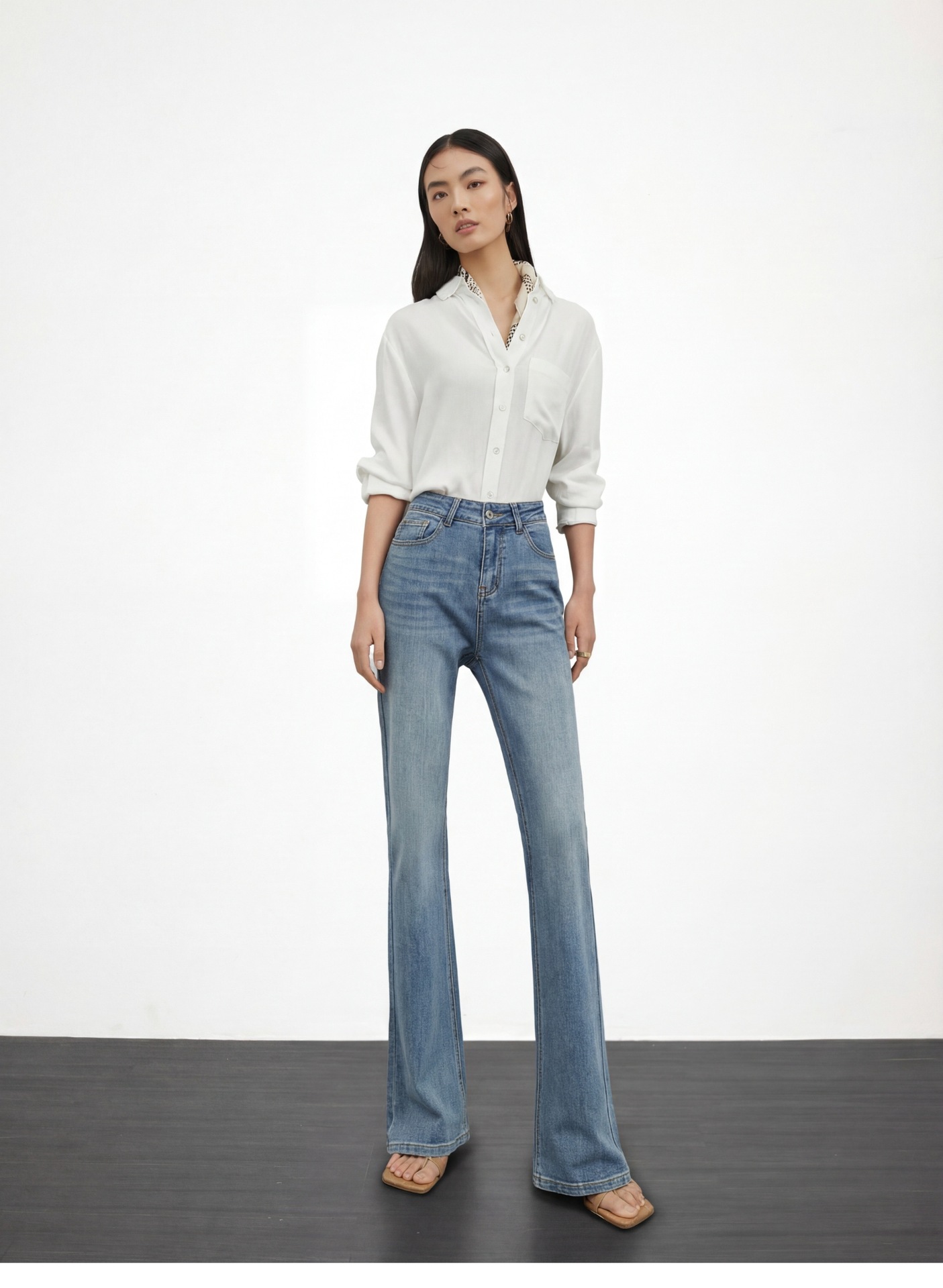 여성용 고급 마이크로 플레어 진 2026년 봄 신상 하이웨이스트 레트로 슬림핏 롱 팬츠