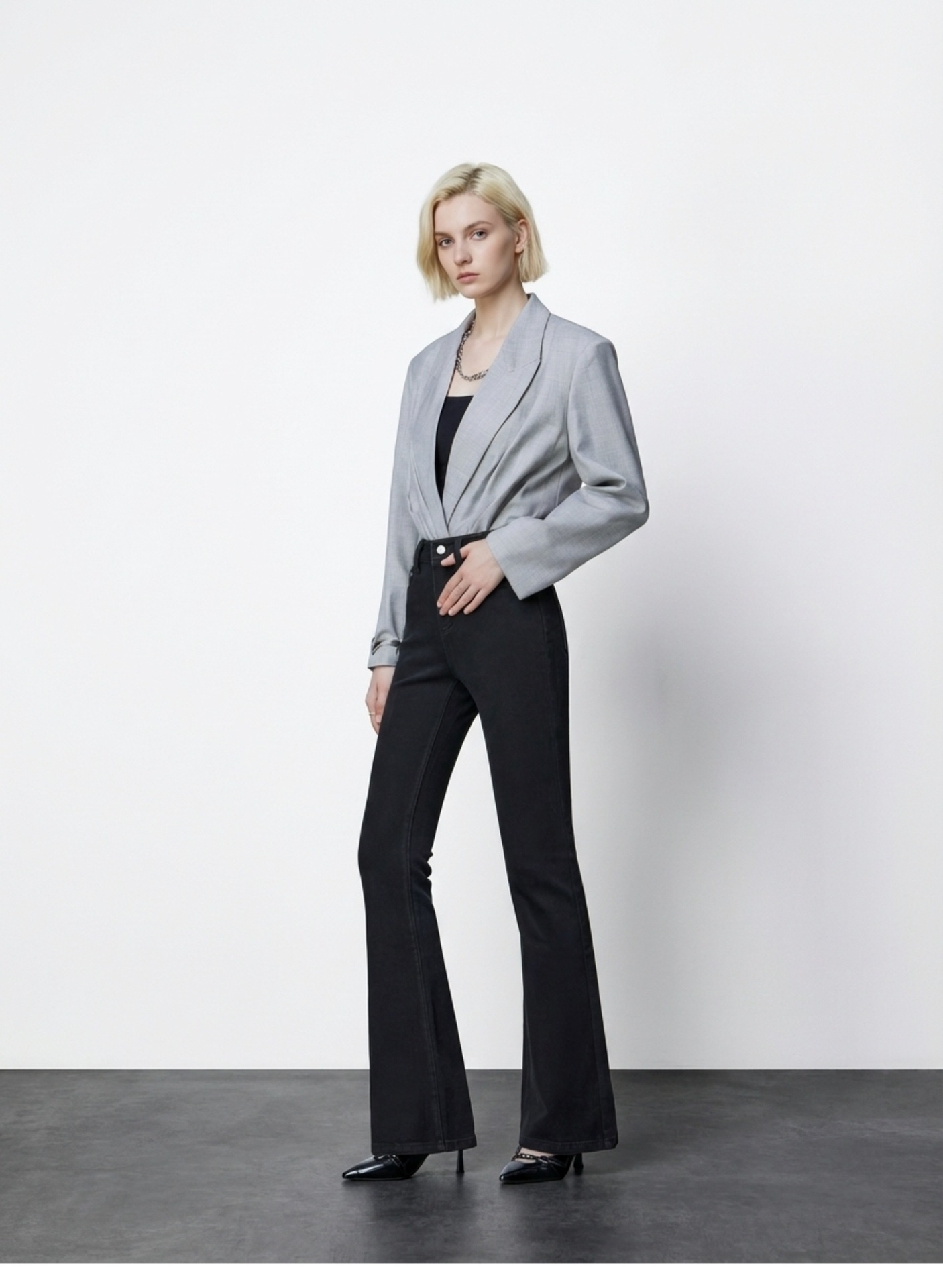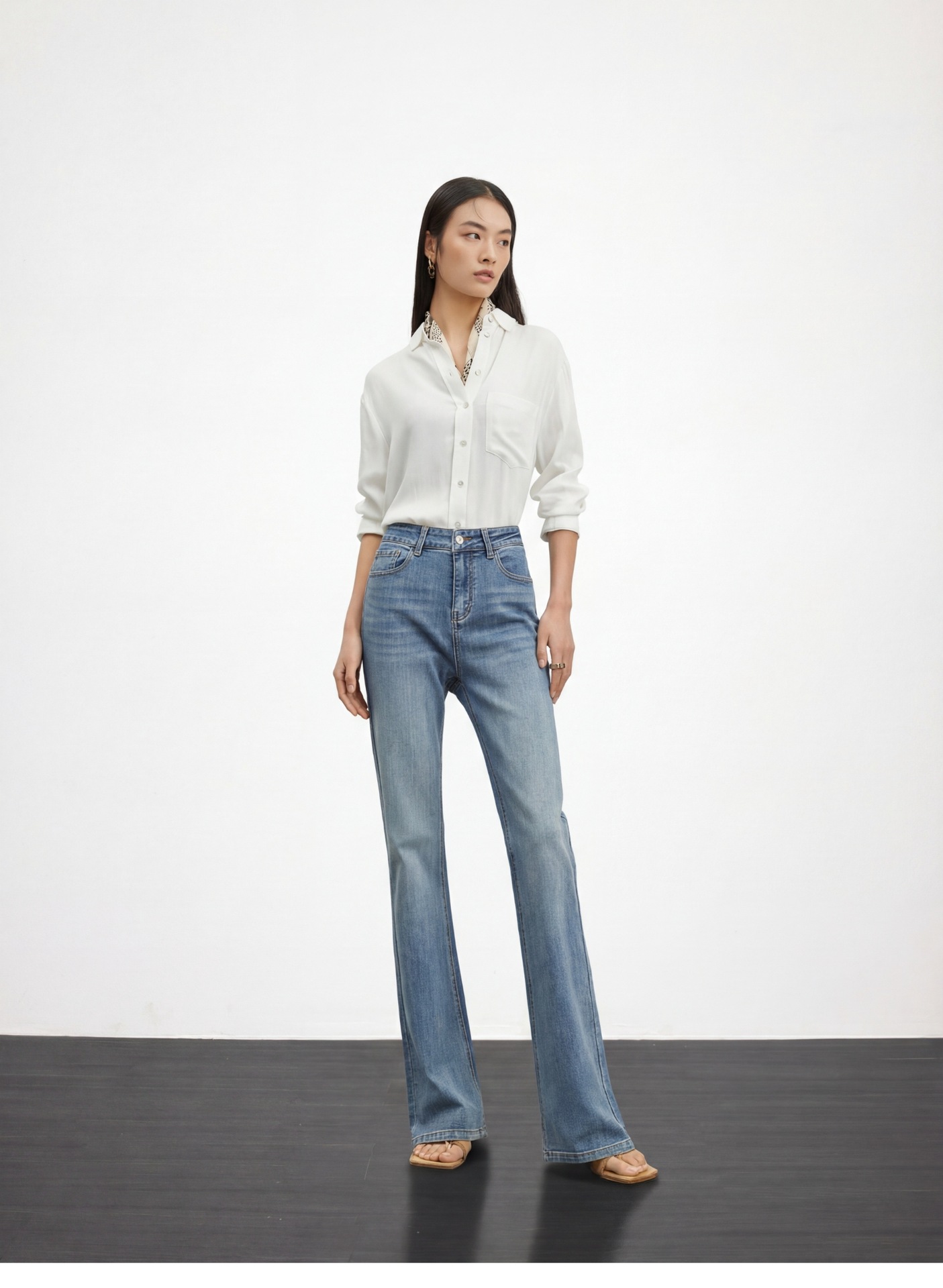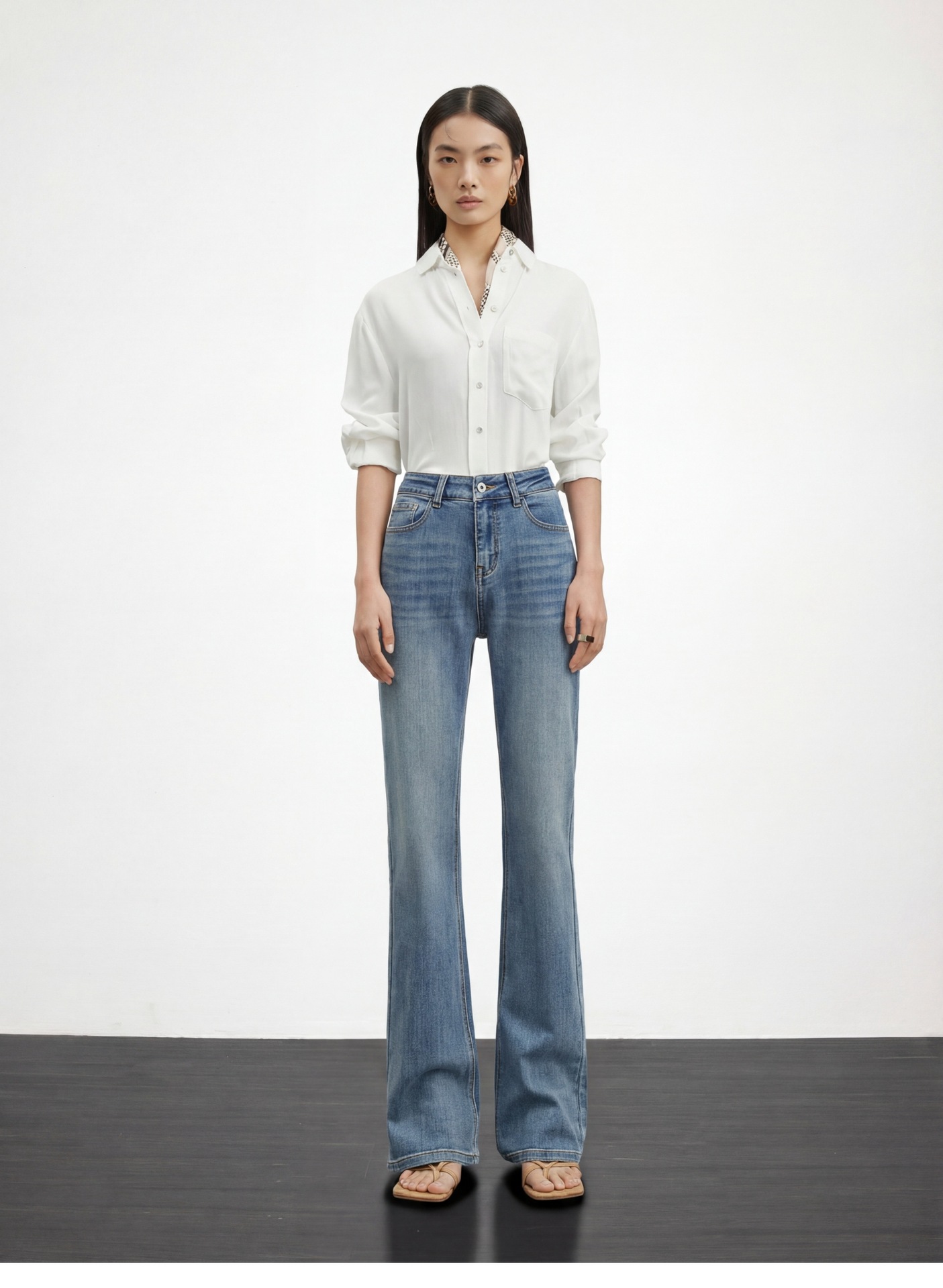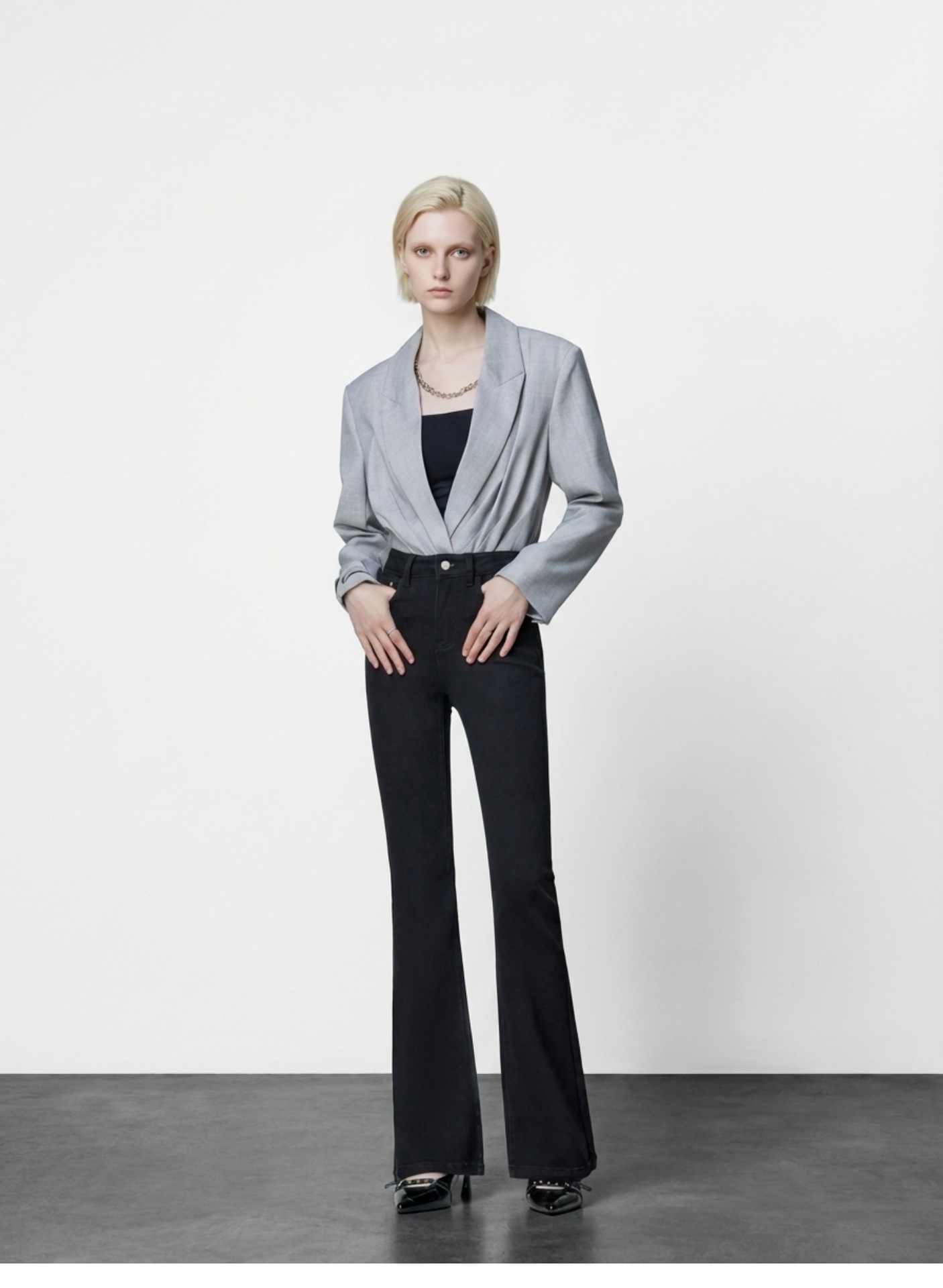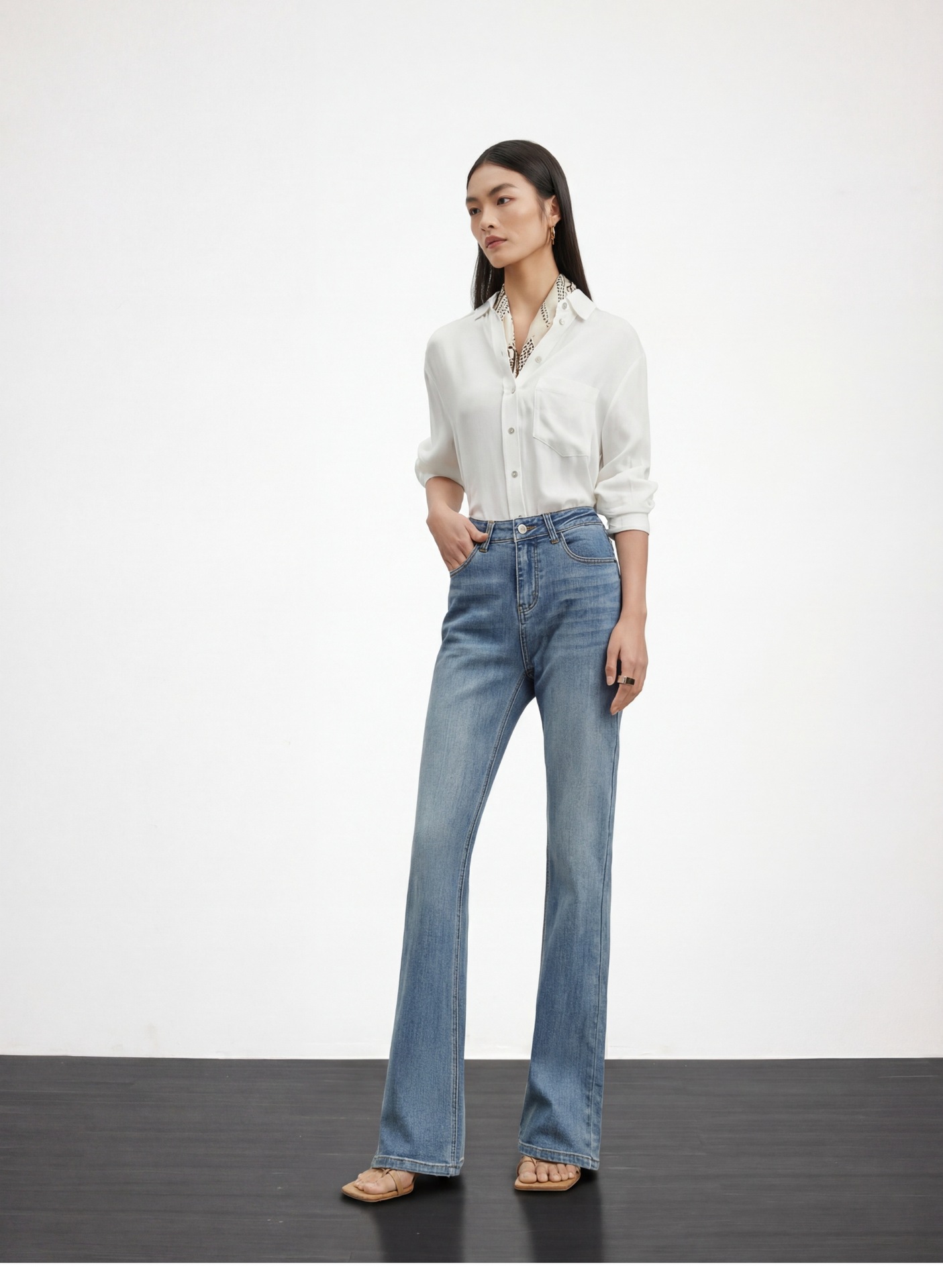 여성용 고급 마이크로 플레어 진 2026년 봄 신상 하이웨이스트 레트로 슬림핏 롱 팬츠