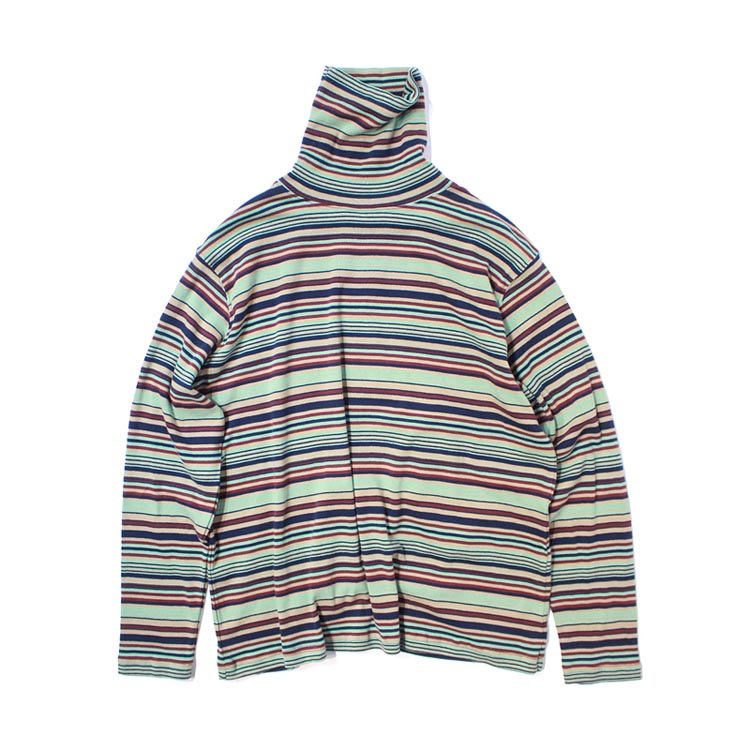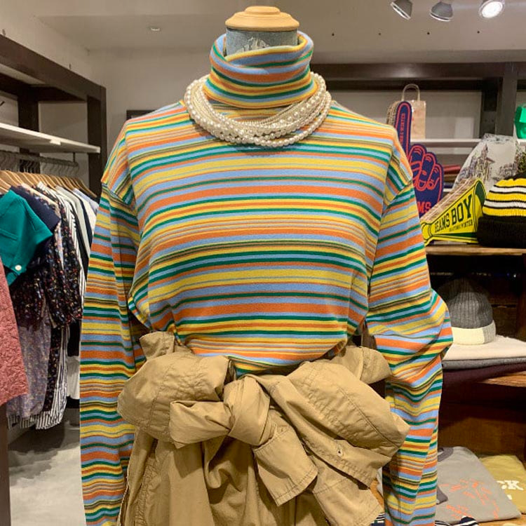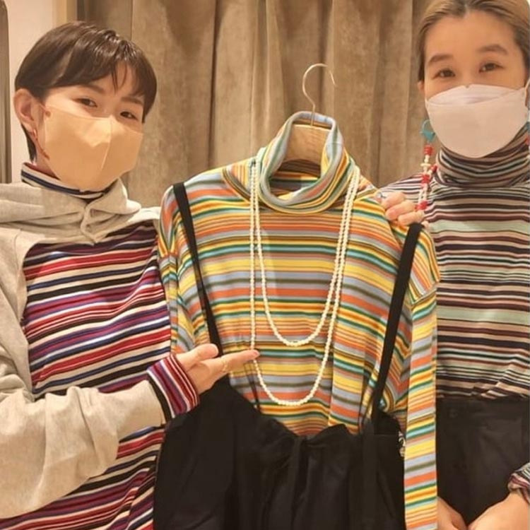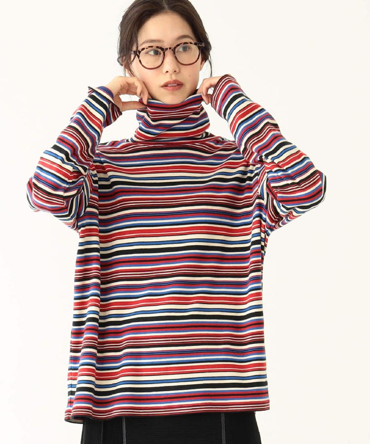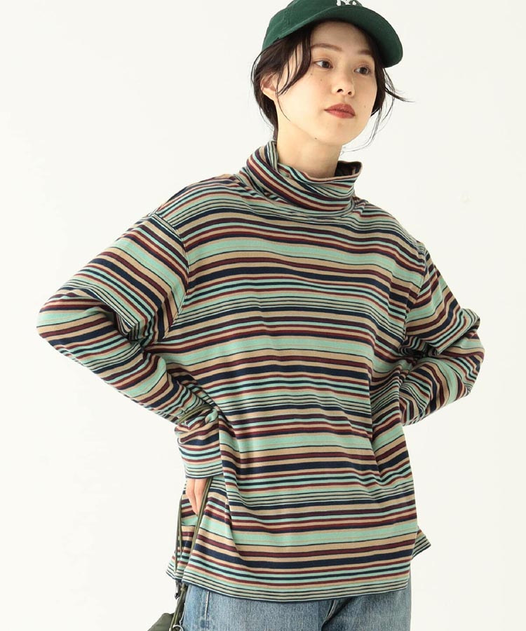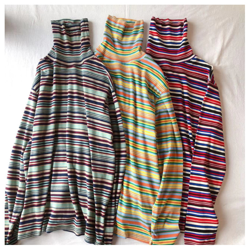 일본식 레트로 컬러 스트라이프 터틀넥 긴 소매 티셔츠 가을과 겨울 새로운 느슨한 모든 매치 원피스 벨벳베이스 셔츠 여성 의류