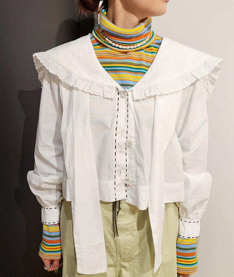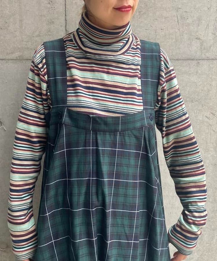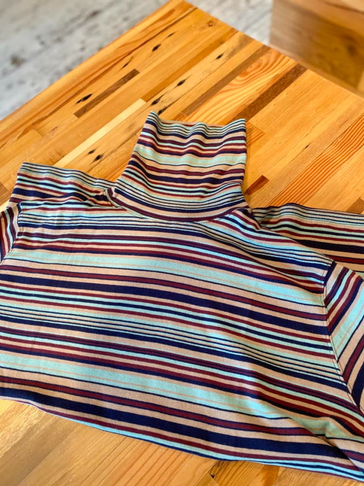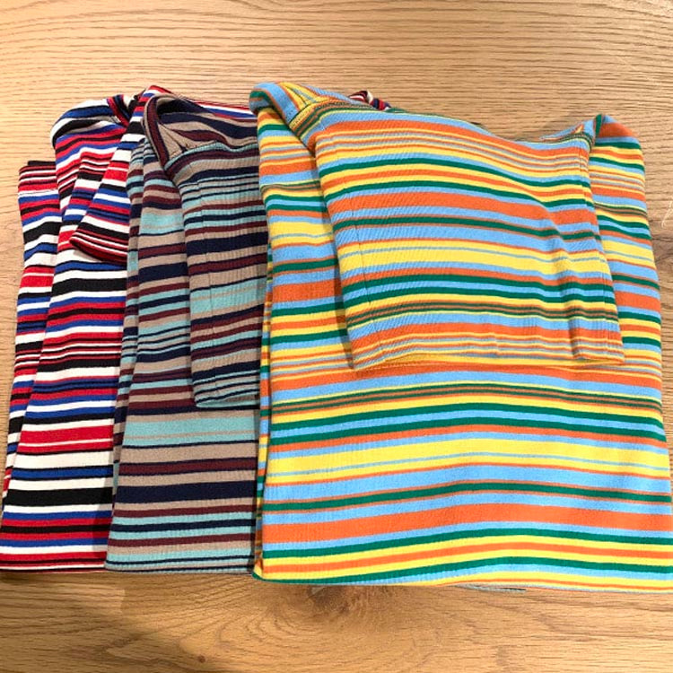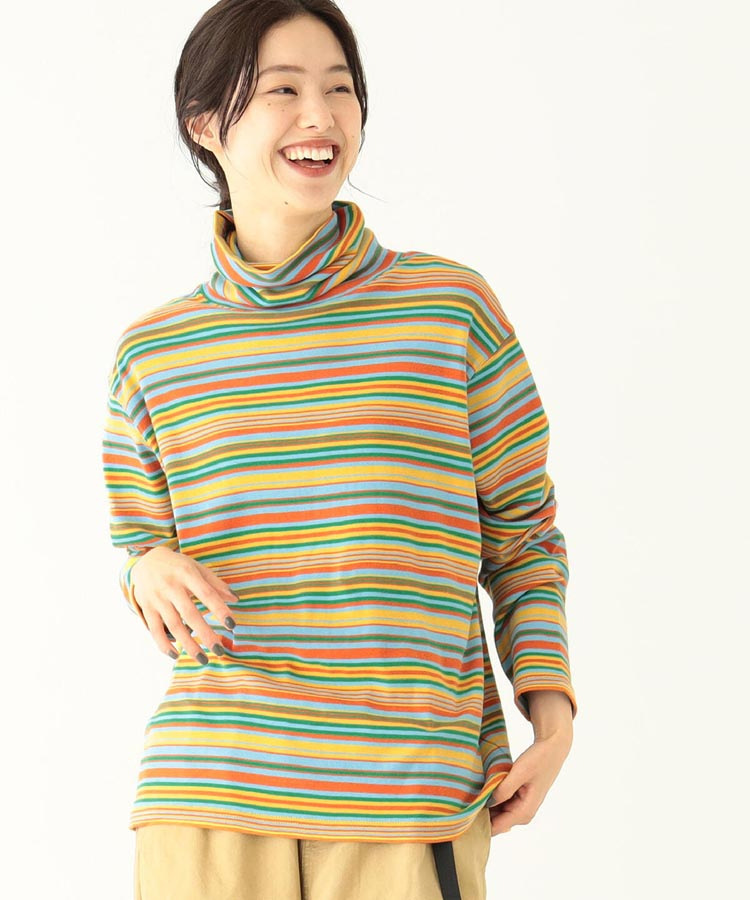 일본식 레트로 컬러 스트라이프 터틀넥 긴 소매 티셔츠 가을과 겨울 새로운 느슨한 모든 매치 원피스 벨벳베이스 셔츠 여성 의류