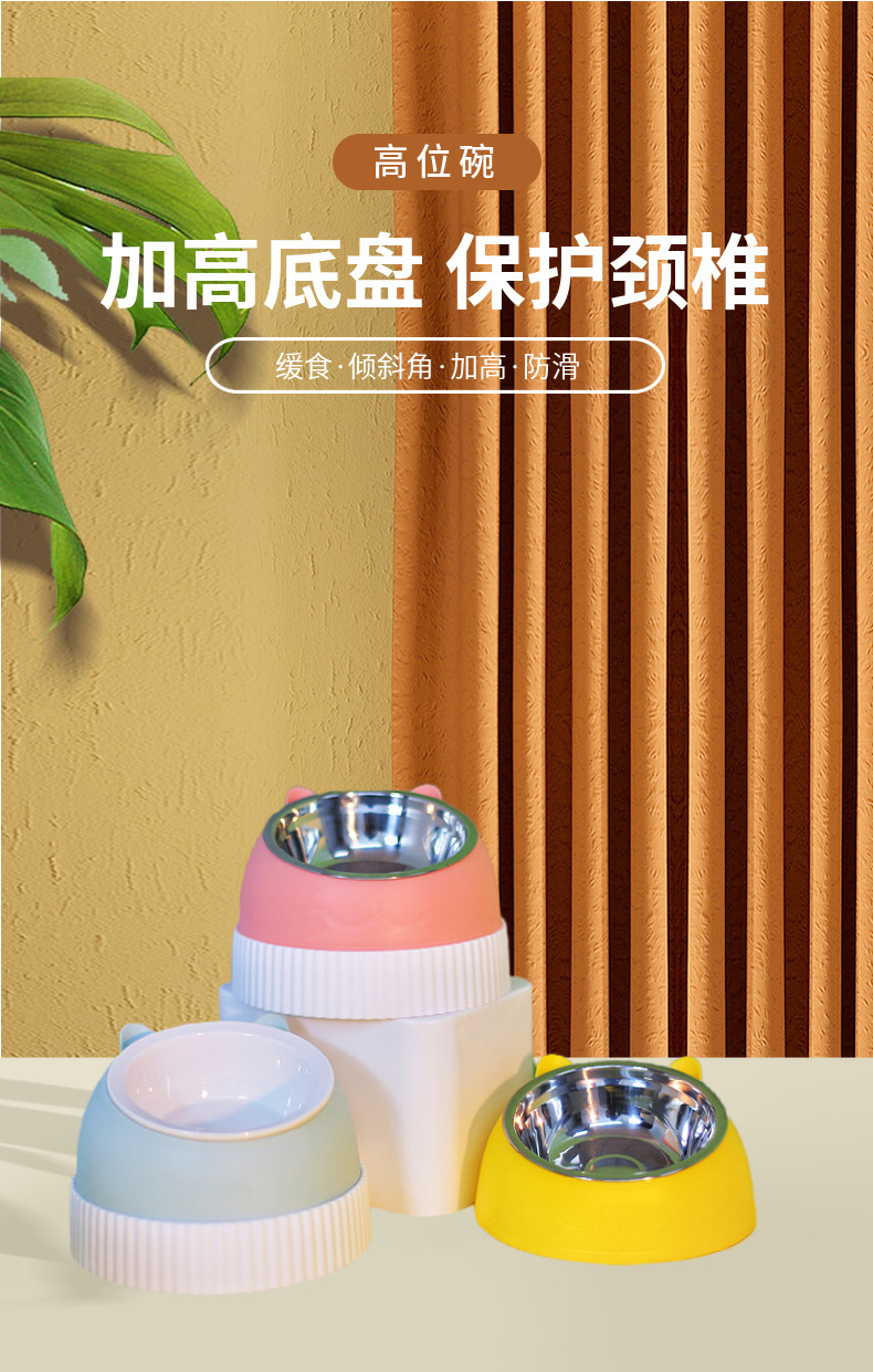 고양이 밥그릇 스테인리스 스틸 넘어짐 방지 애완용품 고양이 사료 그릇 이중 강아지 밥그릇 세라믹 식기 슬로우 푸드 디자인