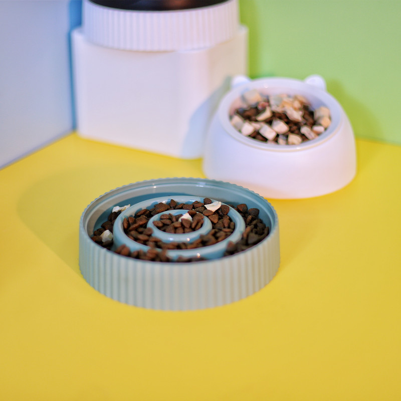 흰색 고양이 그릇 400ml 스테인레스 스틸 녹색 천천히 먹는 그릇