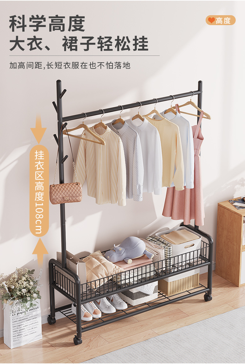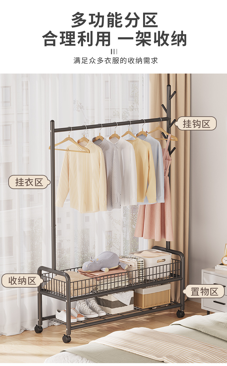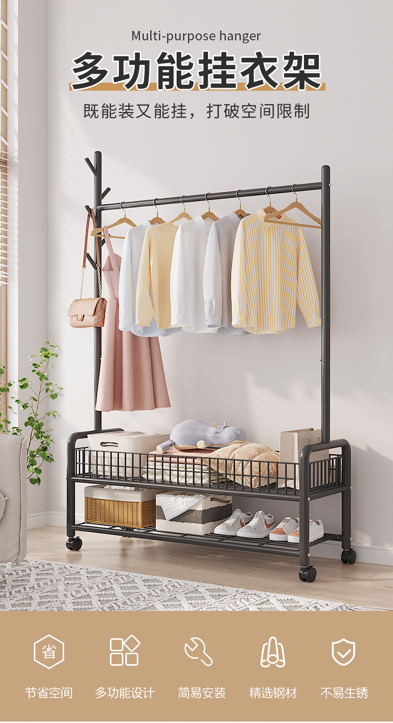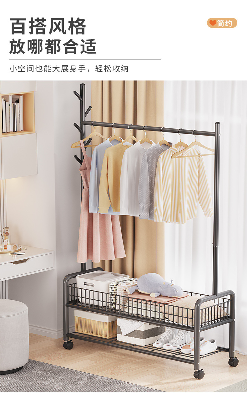 옷 옷걸이 침실 바닥 간단한 코트 랙 가정용 보관 옷걸이 발코니 이동식 멋진 옷 선반