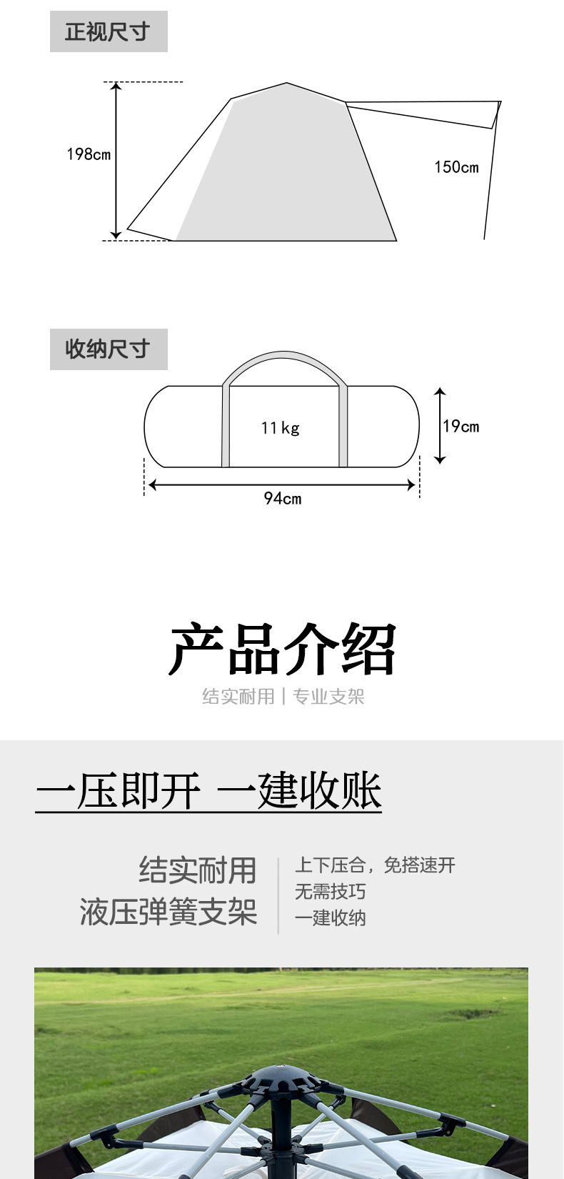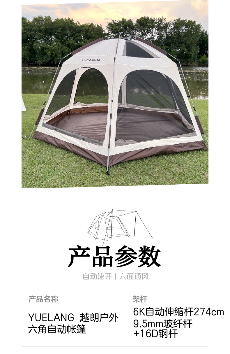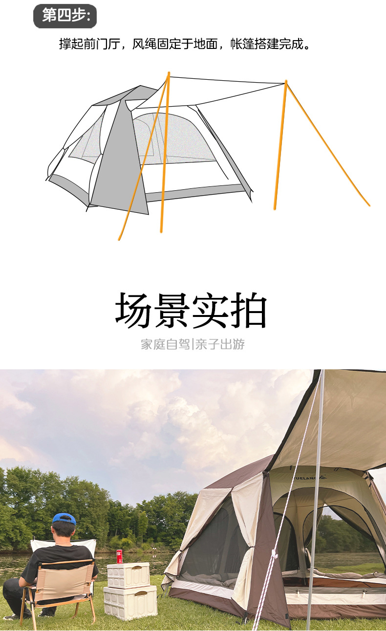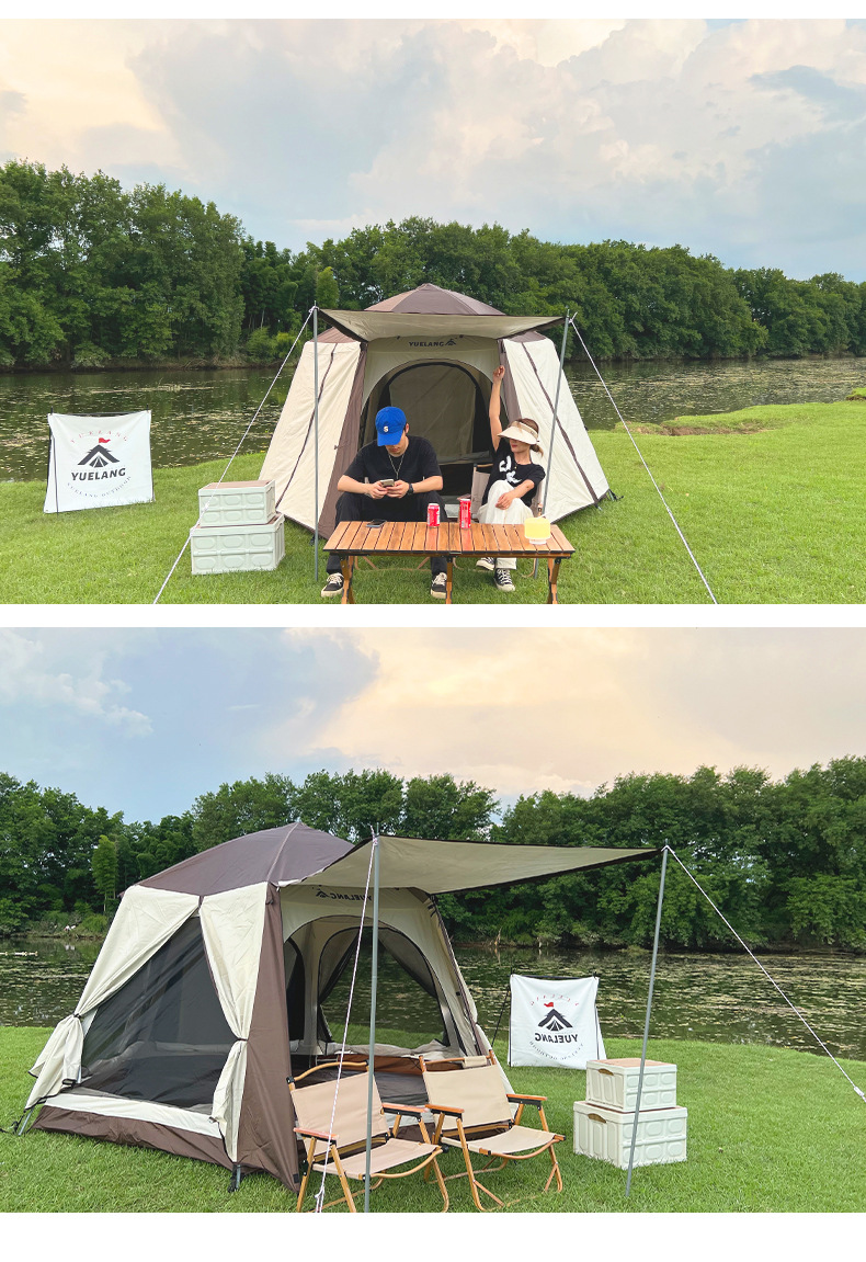 완전 자동 빠른 설치 야외 텐트 가족 다인용 캠핑 설치 불필요 차양 및 자외선 차단 이중층 대형 텐트 공원용
