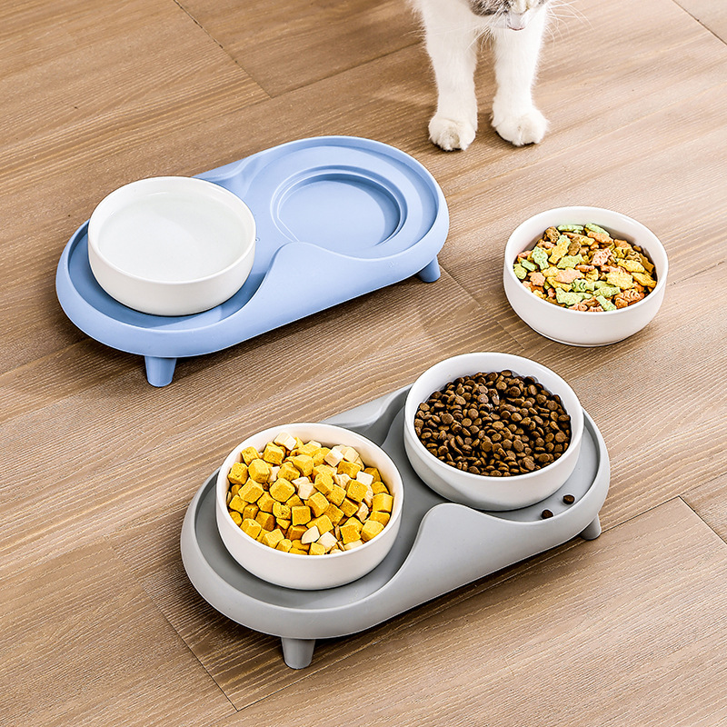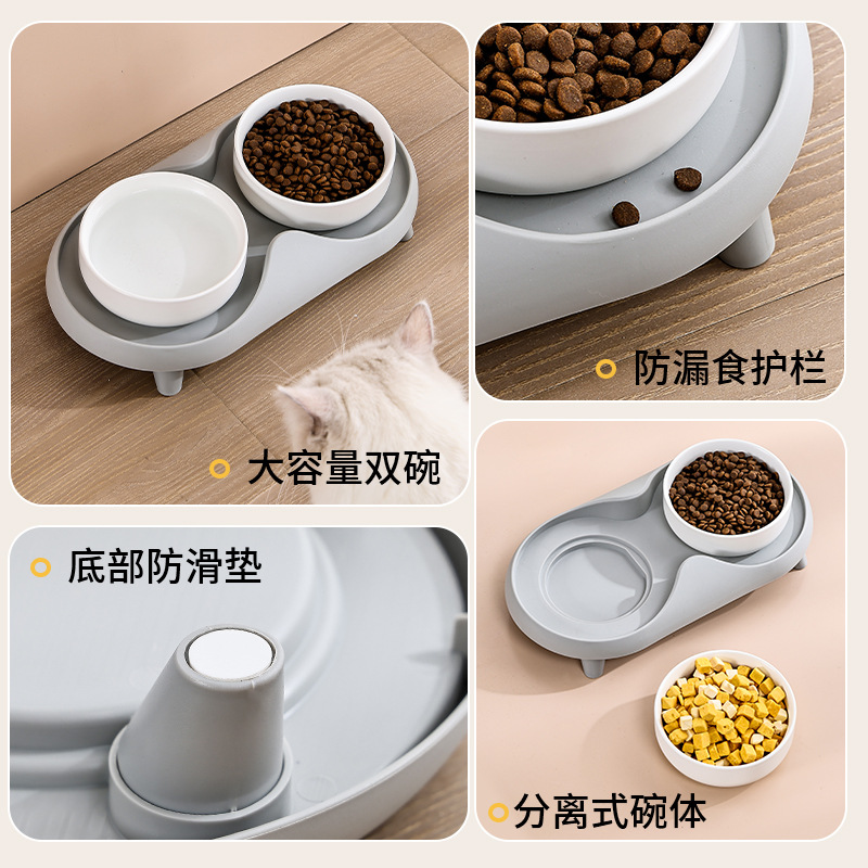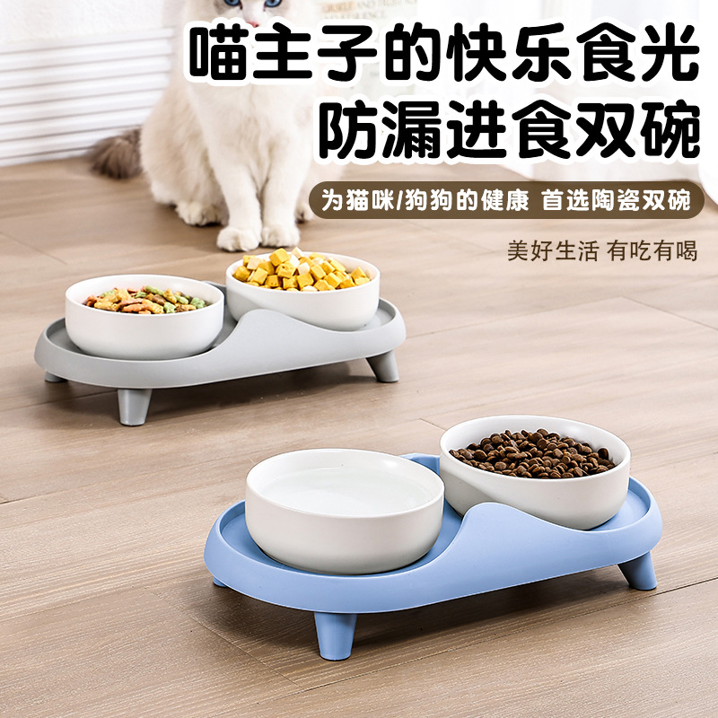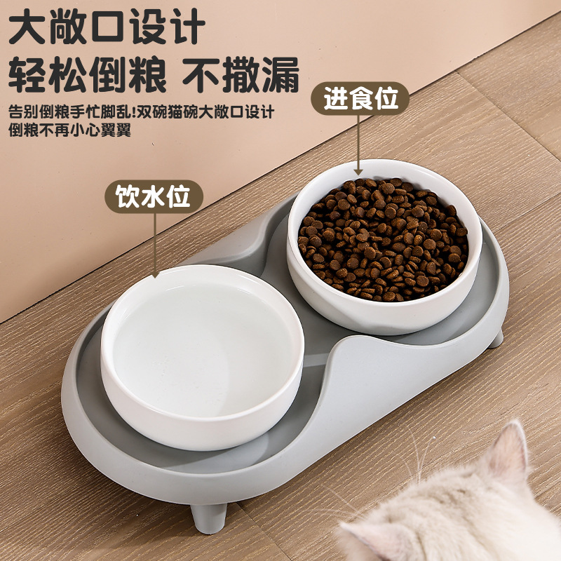 애완동물 용품 고양이 그릇 세라믹 더블 볼 도매 높은 발 목 보호 고양이 사료 그릇 미끄럼 방지 노크 방지 고양이 그릇 애완 동물 그릇