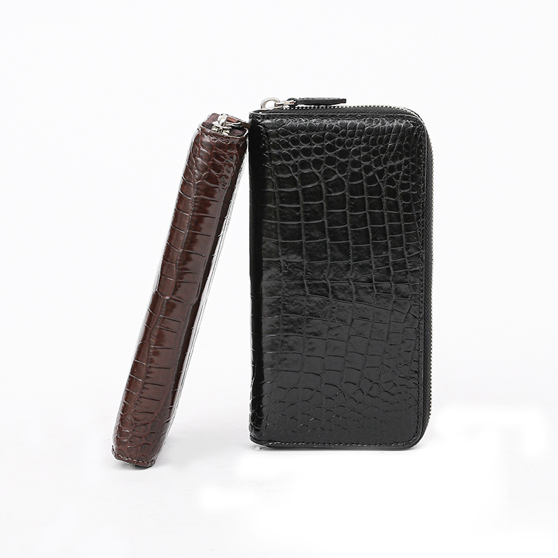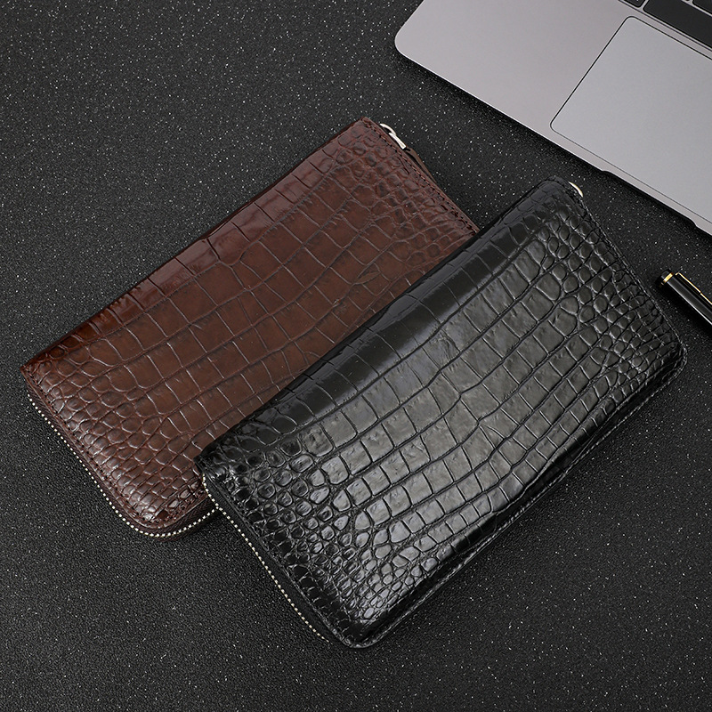 비 바느질 악어 가죽 클러치 백 정품 가죽 남성 핸드백 풀 가죽 캐주얼 남성 지퍼 중간 길이의 남성용 가방
