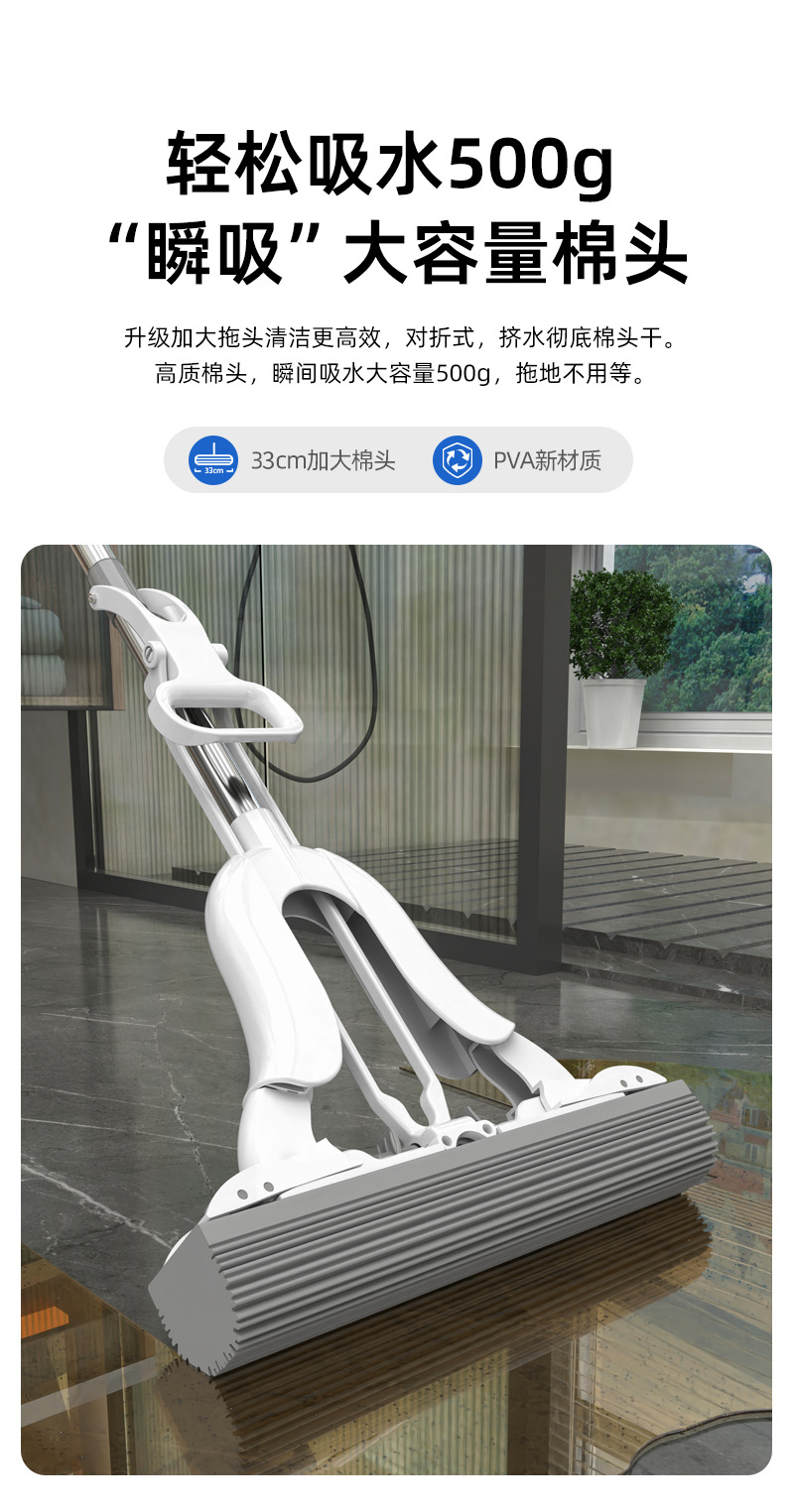 새로운 핸즈프리 워시 면 걸레 가정용 일회용 깨끗한 흡수성 반 접이식 대형 스폰지 걸레 헤드 흡수성 걸레