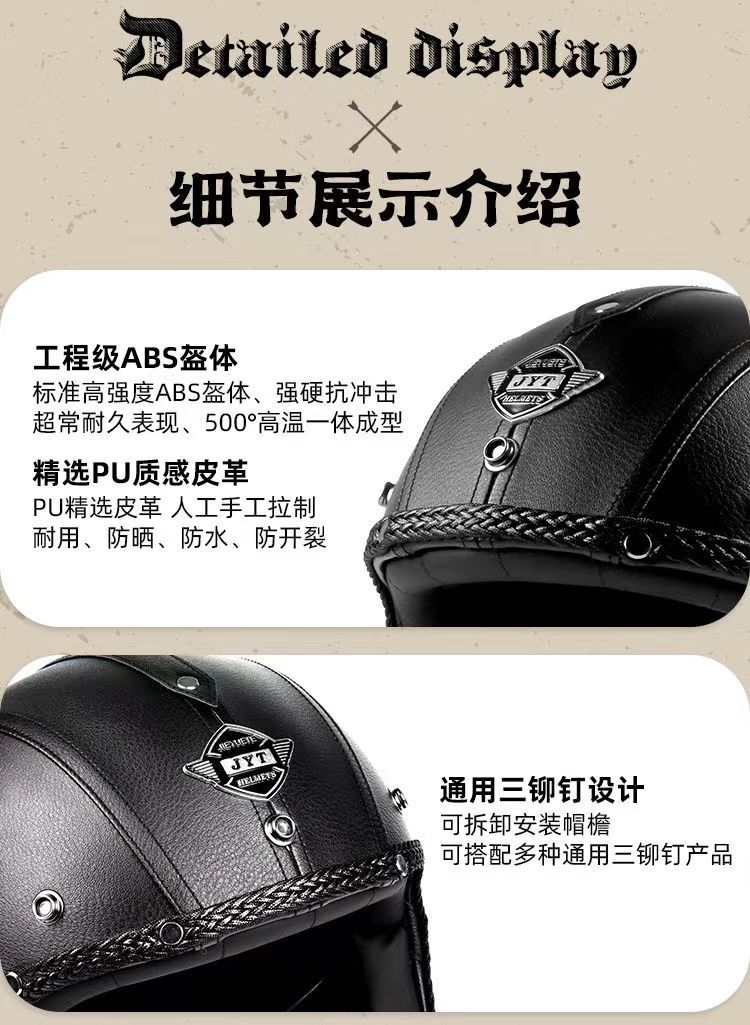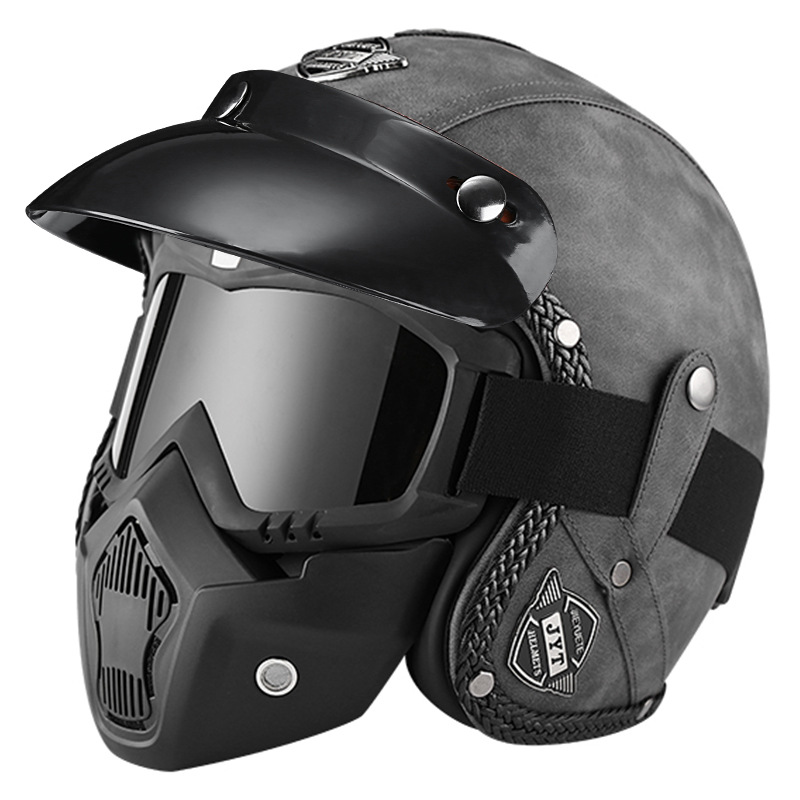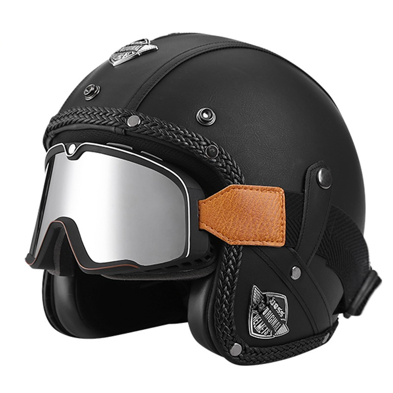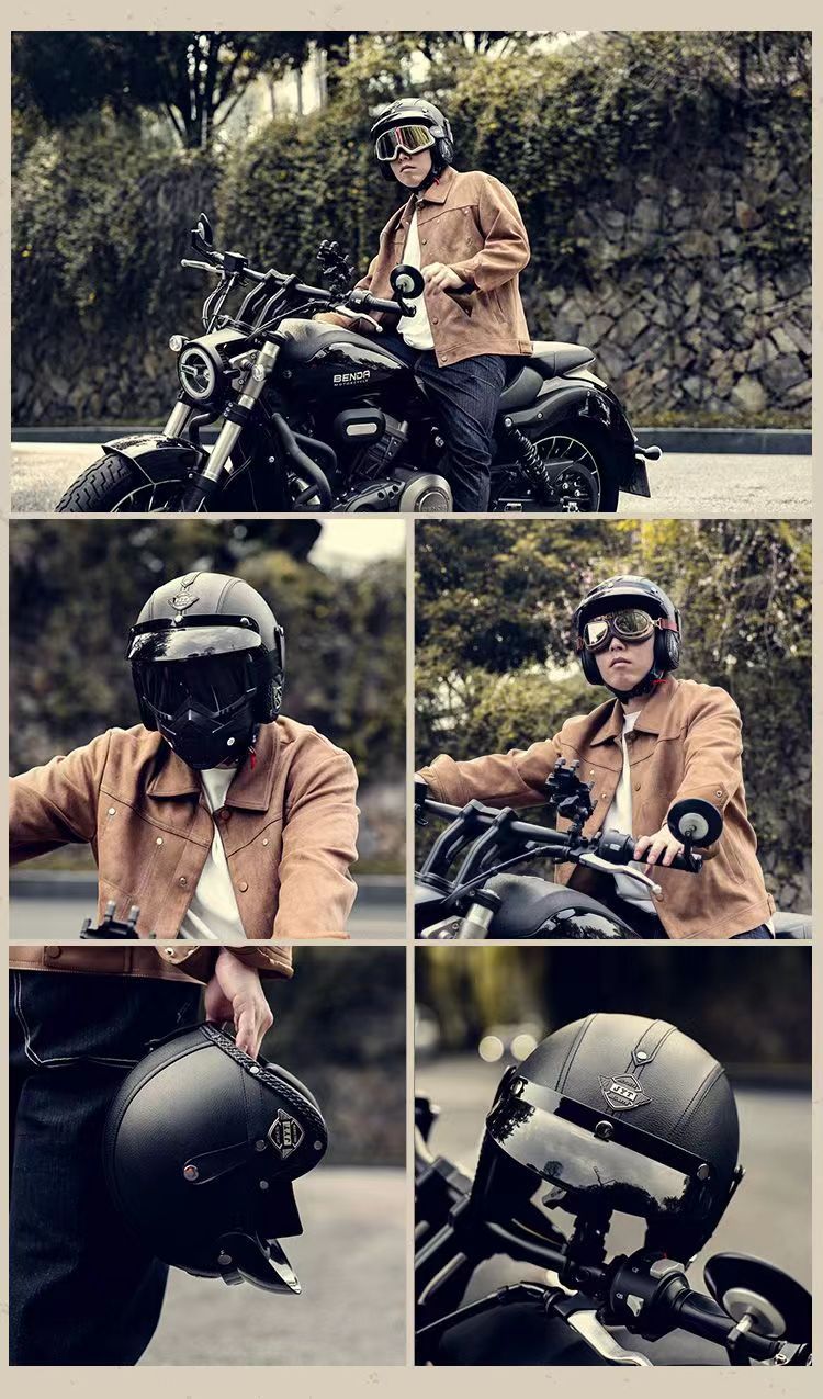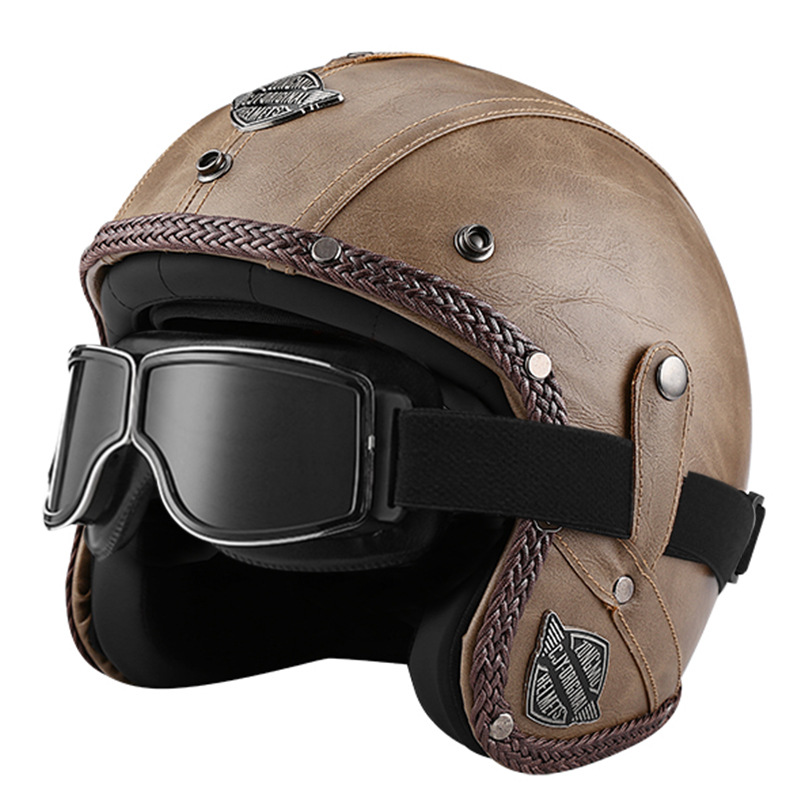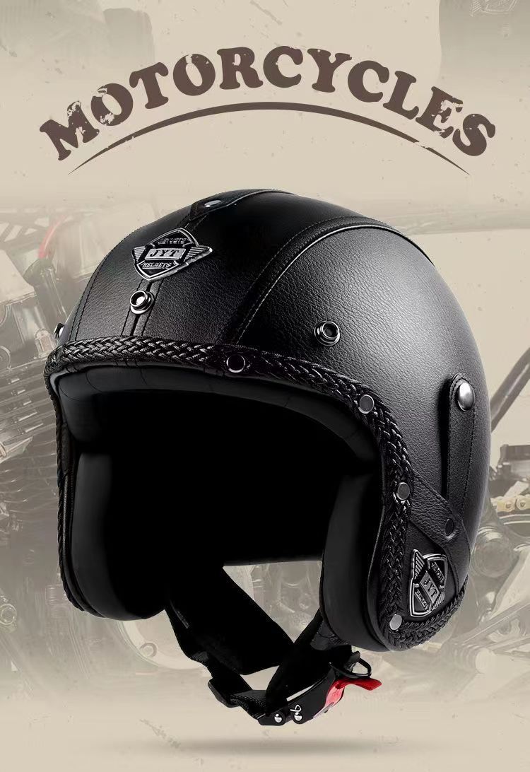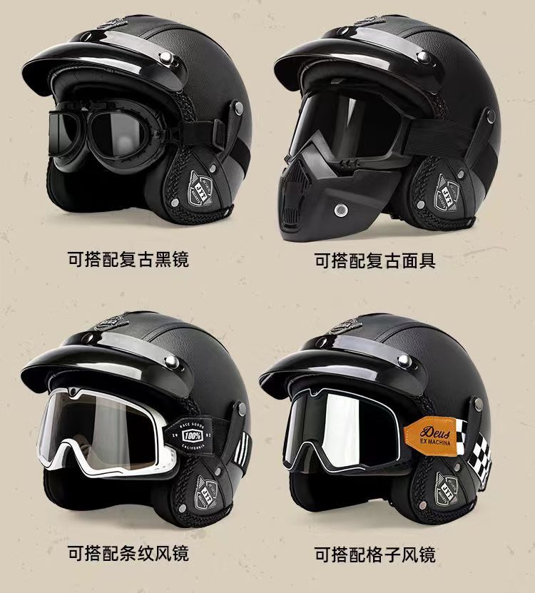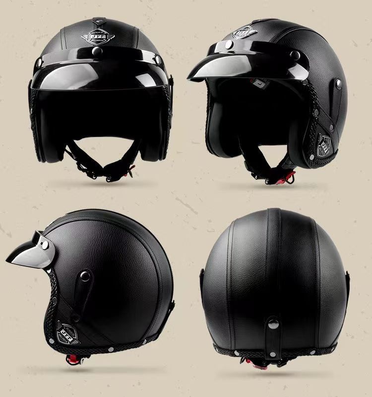 3C 인증 전기 오토바이 복고풍 헬멧 남자와 여자의 오토바이 가죽 헬멧 타고 3/4 절반 헬멧 안전