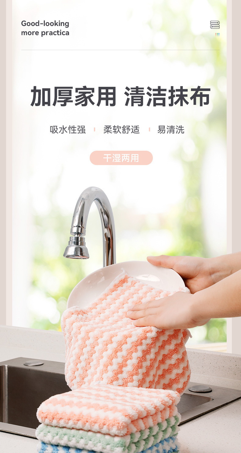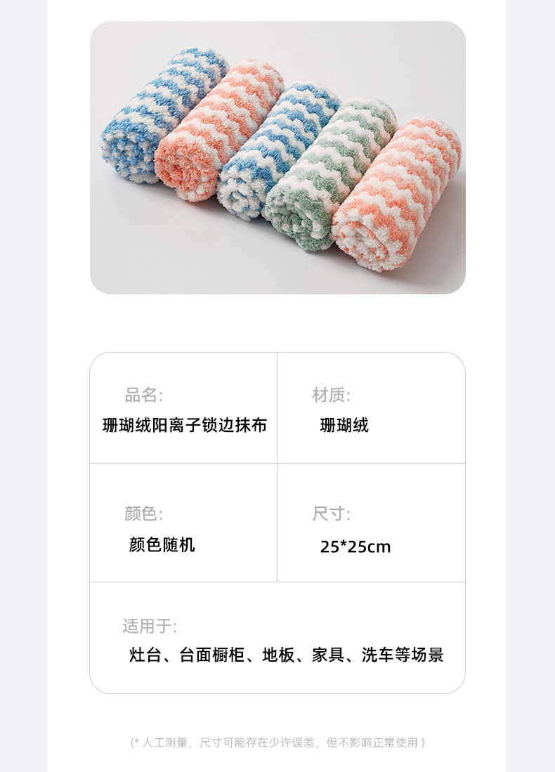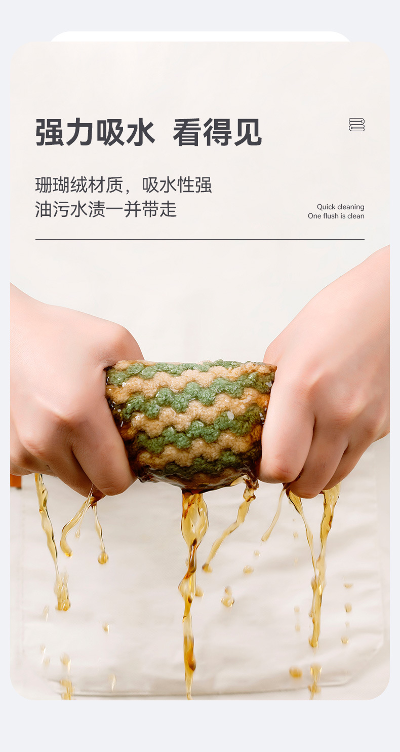 산호 양털 물결 모양 걸레 흡수 접시 천 청소 천 양이온 사각 타월 논스틱 오일 주방 걸레 도매