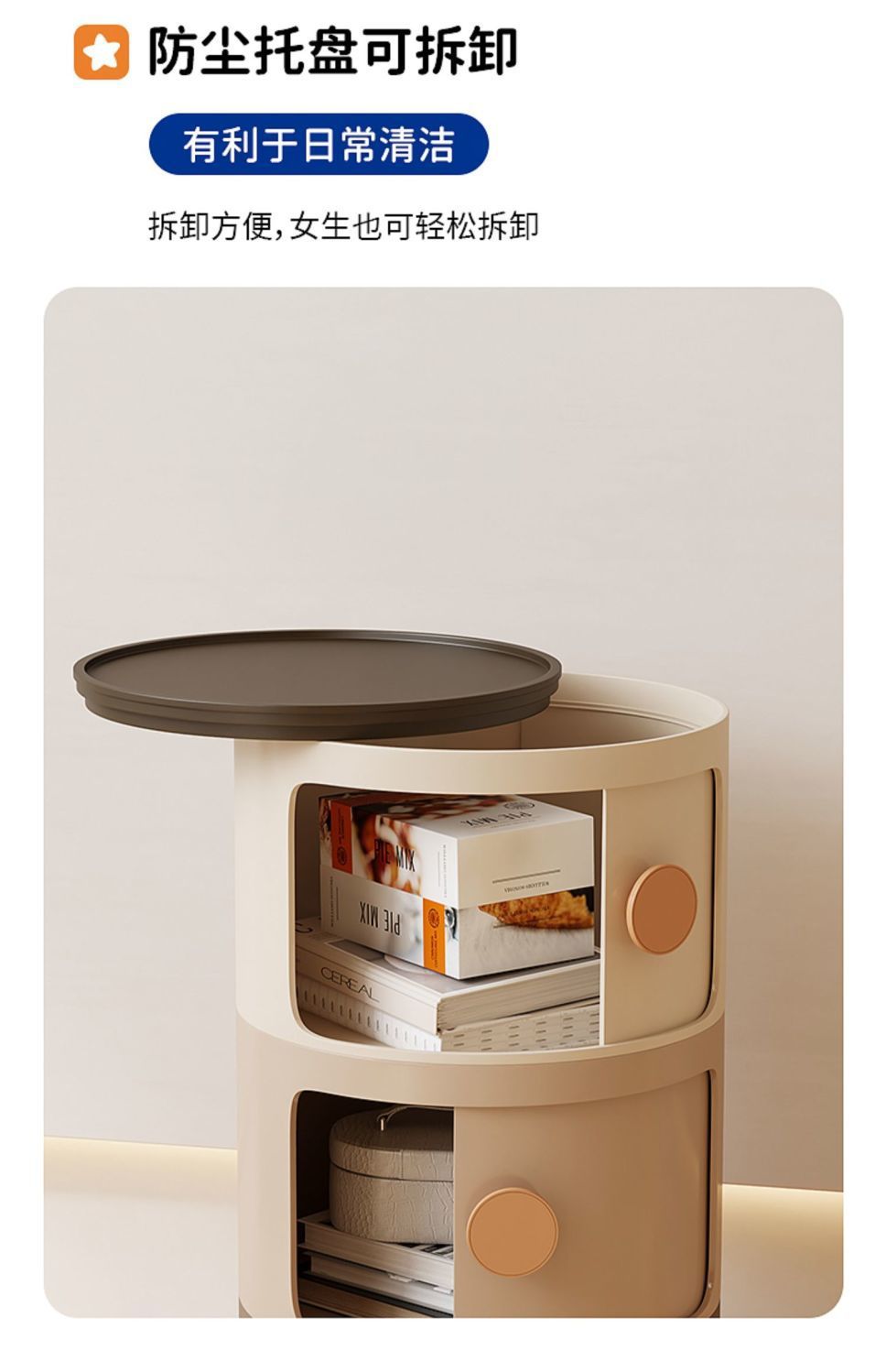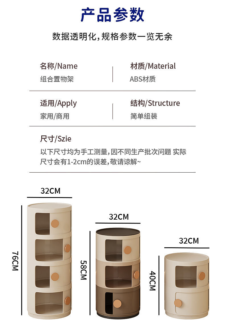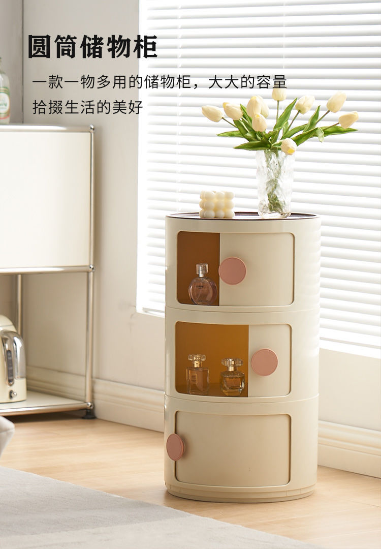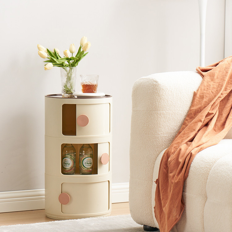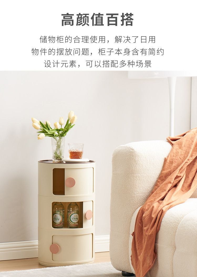 ABS 고강도 플라스틱 침대 옆 탁자, 원형 다층 소형 캐비닛, 조립식 모던 미니멀 사이드 캐비닛, 수납장