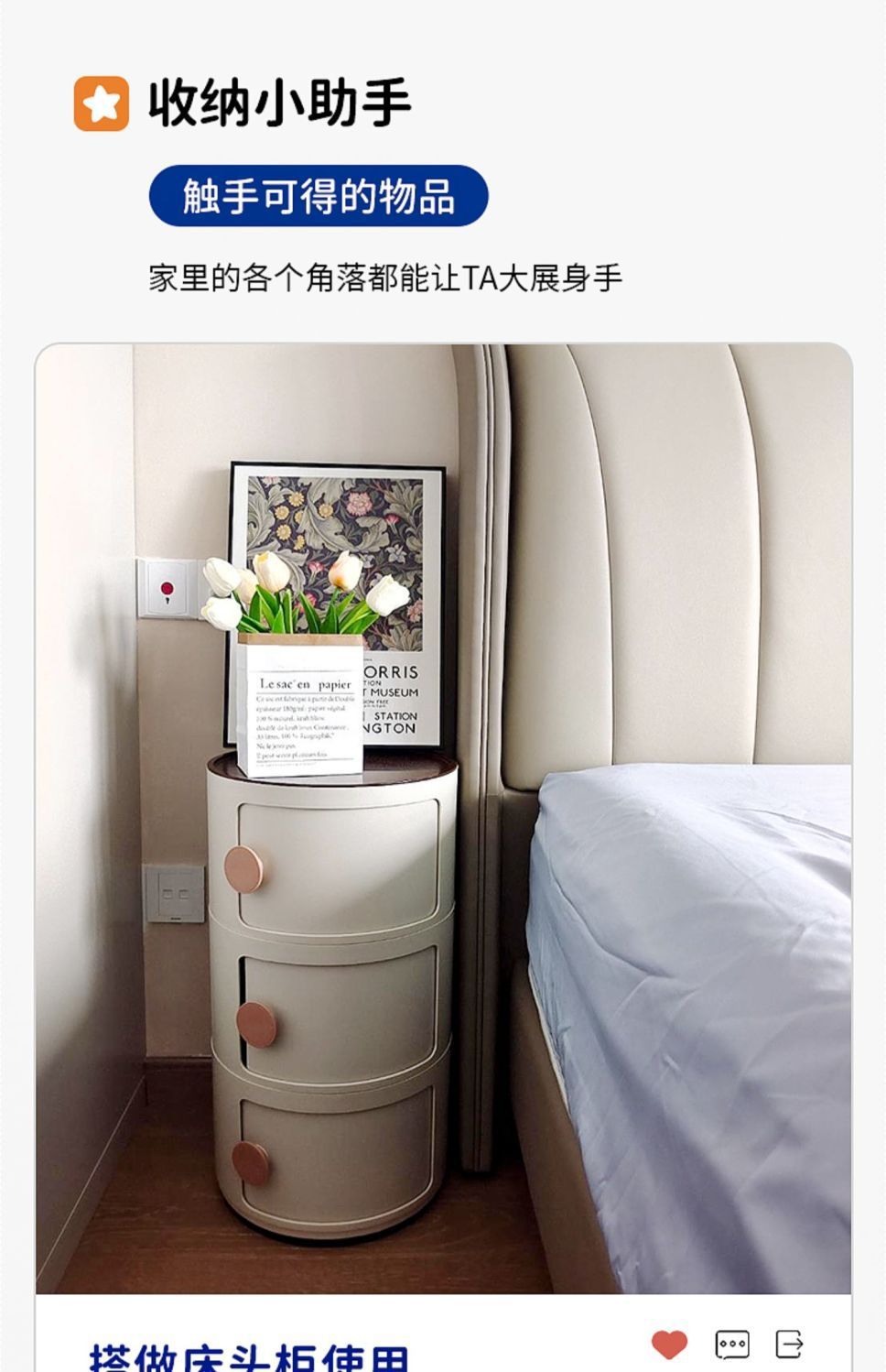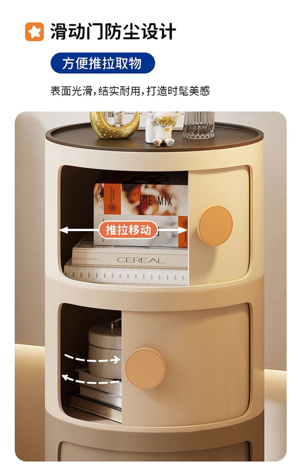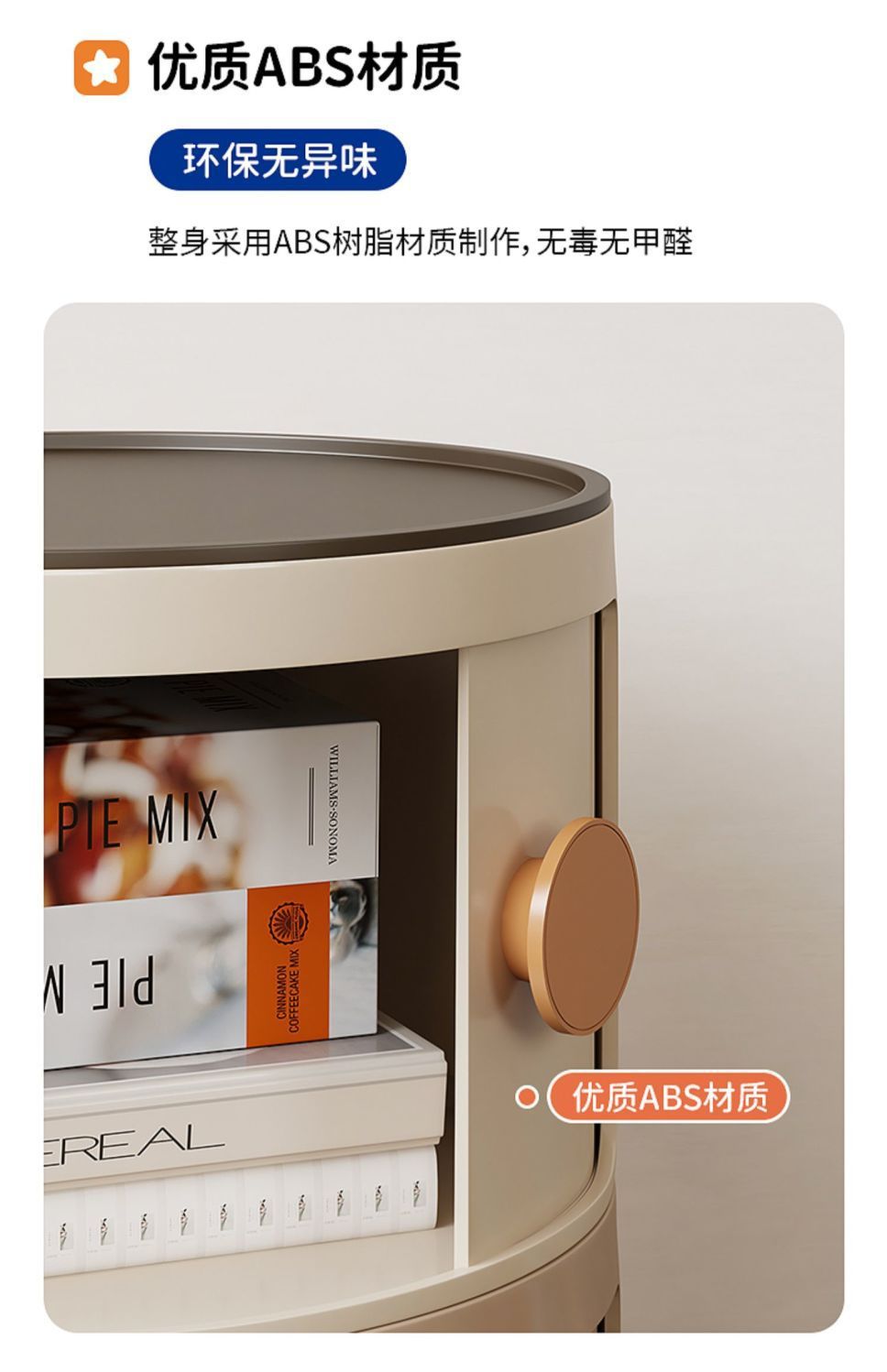 ABS 고강도 플라스틱 침대 옆 탁자, 원형 다층 소형 캐비닛, 조립식 모던 미니멀 사이드 캐비닛, 수납장