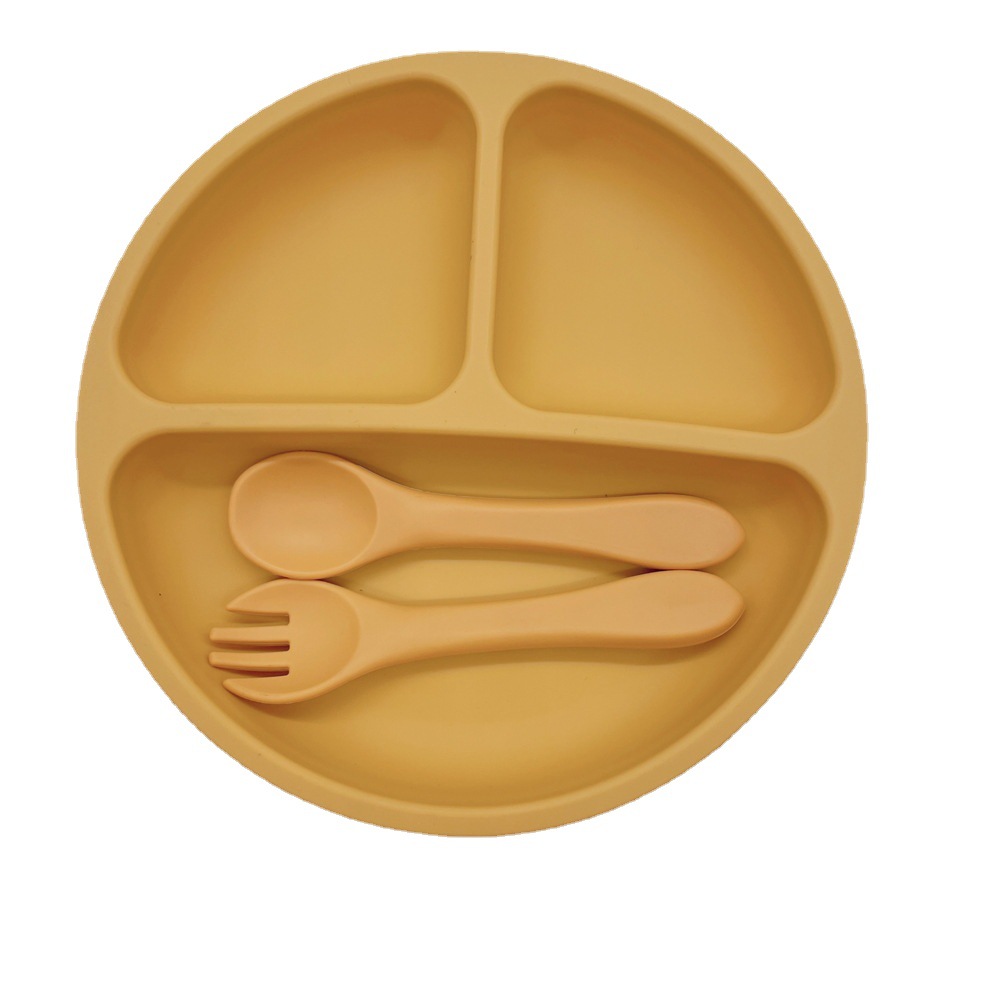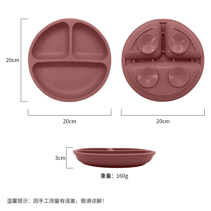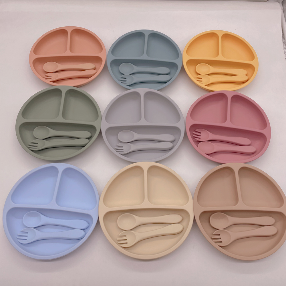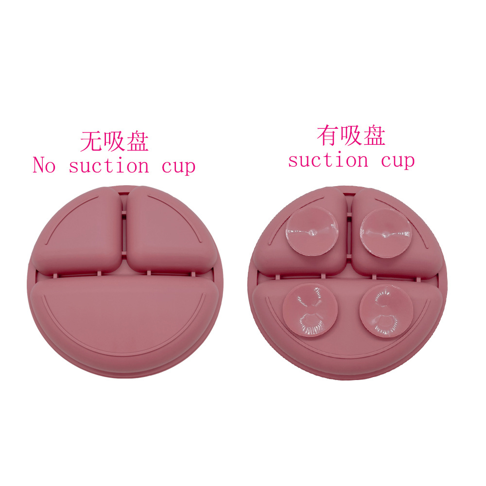 실리콘 어린이 식기 세트 아기의 둥근 웃는 흡입 플레이트 아기의 보조 식품 3 칸 플레이트