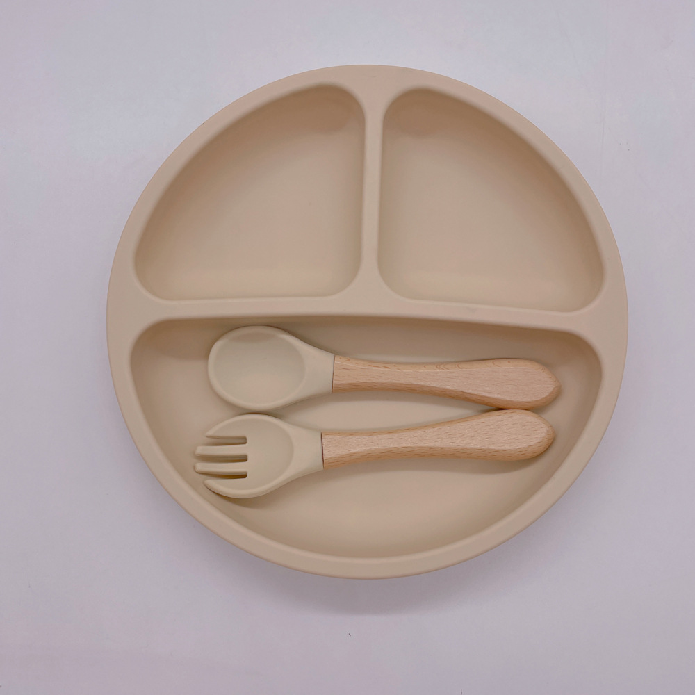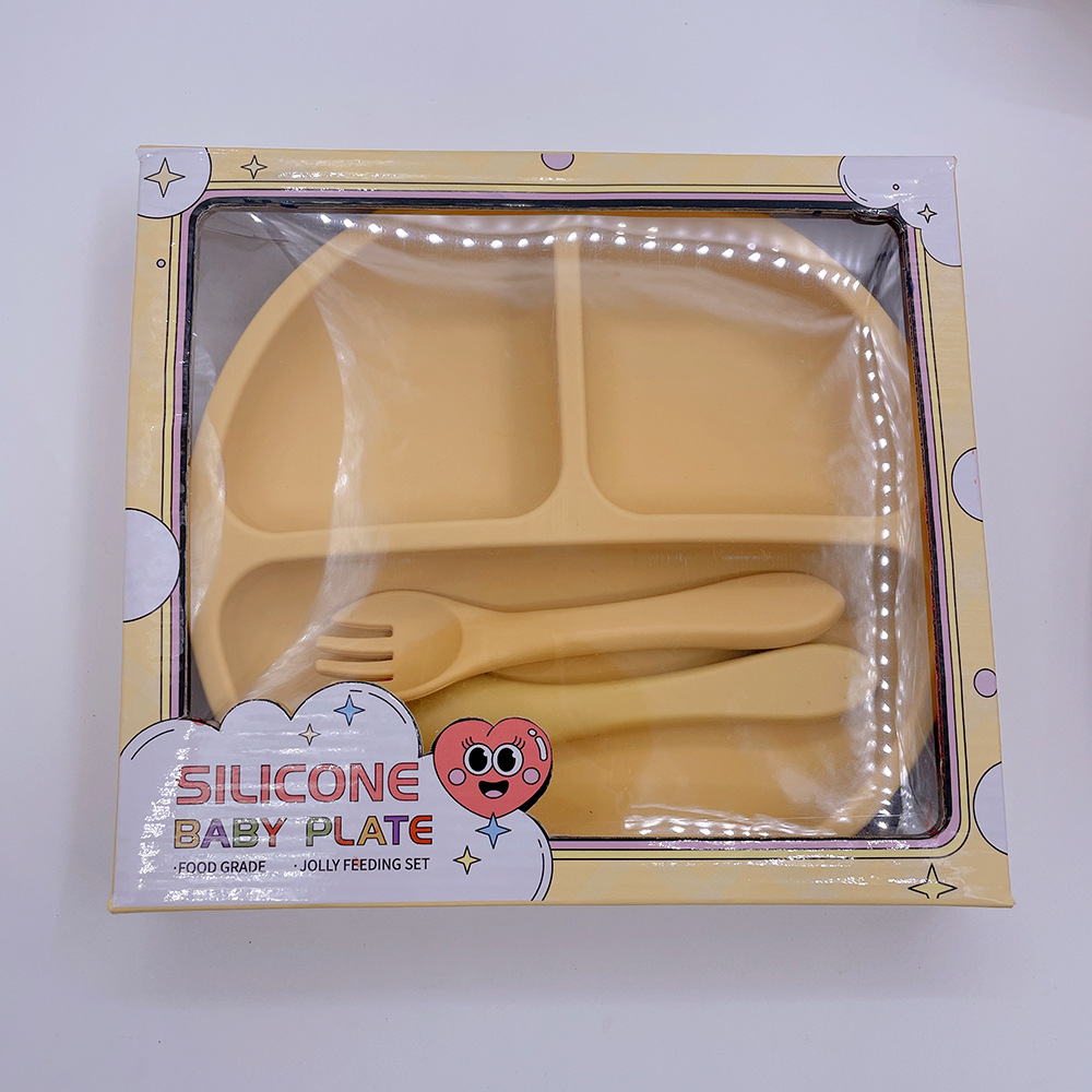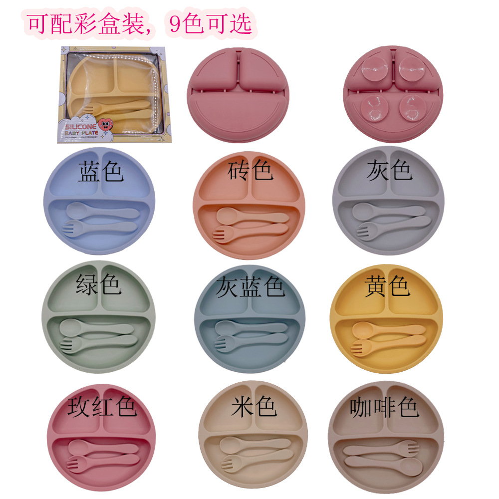 실리콘 어린이 식기 세트 아기의 둥근 웃는 흡입 플레이트 아기의 보조 식품 3 칸 플레이트