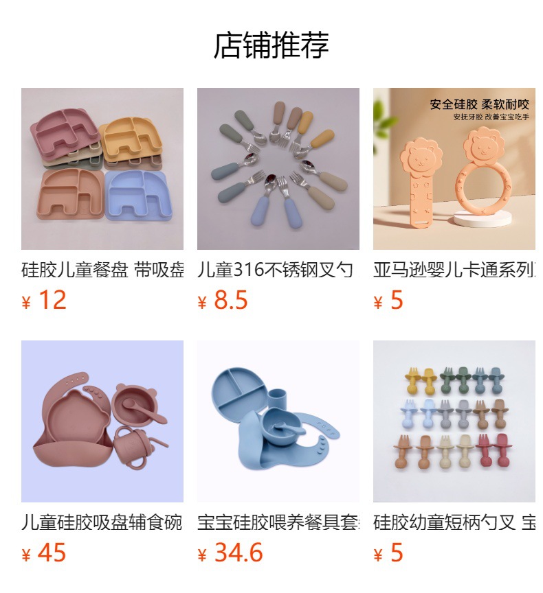 벽돌 색상 작은 흡입 컵 실리콘 포크 스푼 (OPP 가방)
