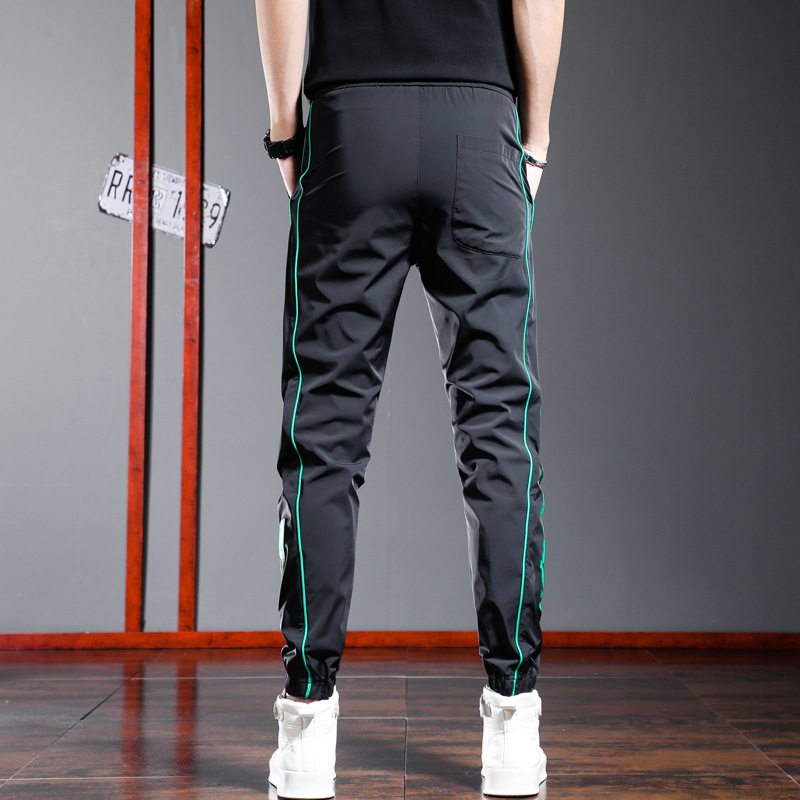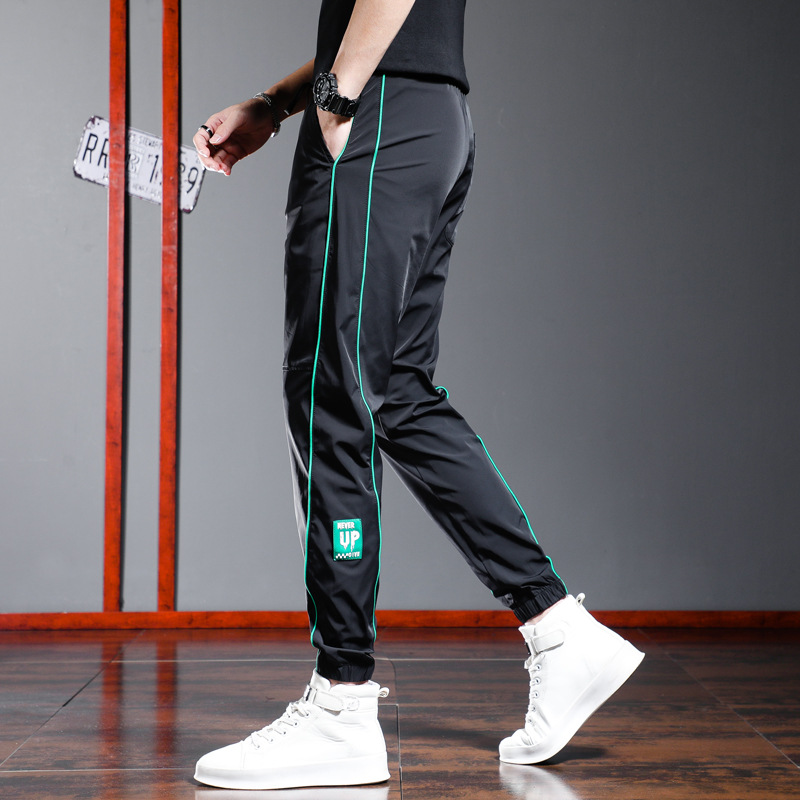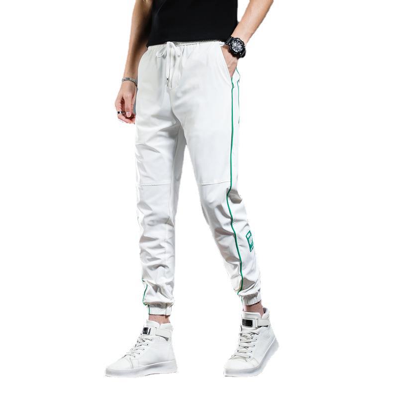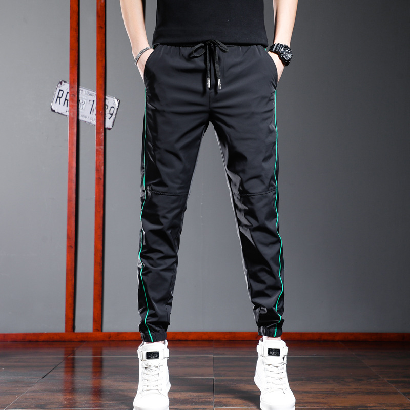 가벼운 럭셔리 여름 얇은 얼음 실크 슬라이딩 스트레치 스포츠 바지 남성용 슬림핏 다리 유럽 캐주얼 운동복