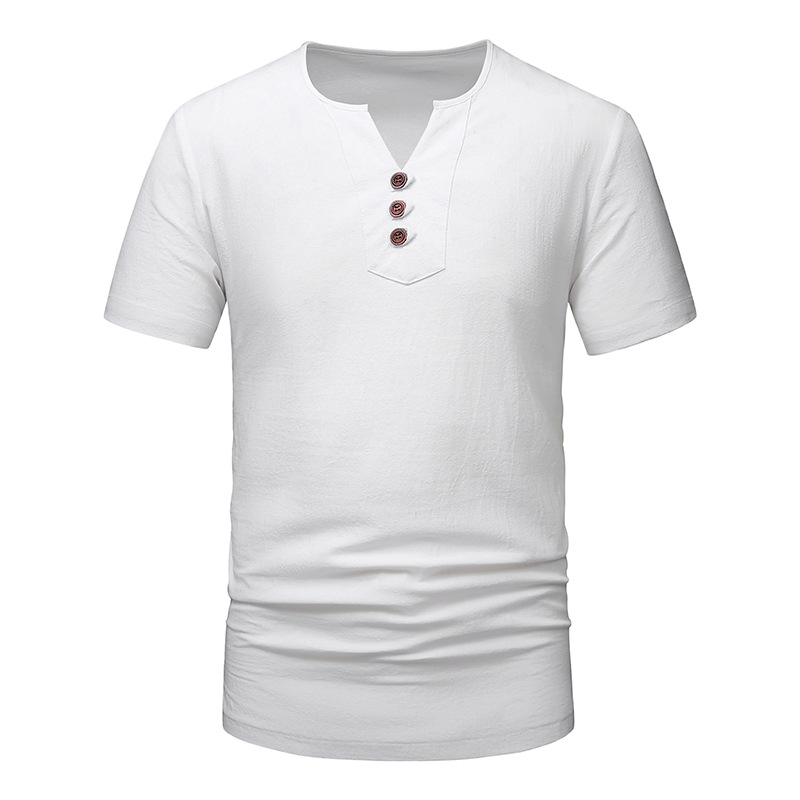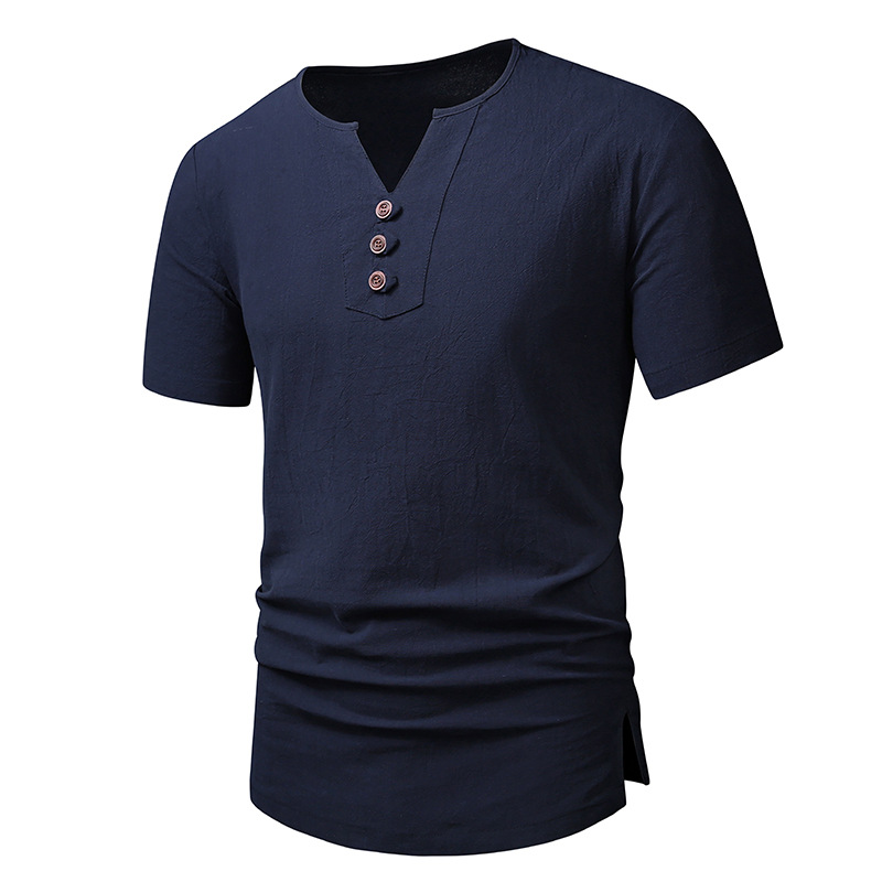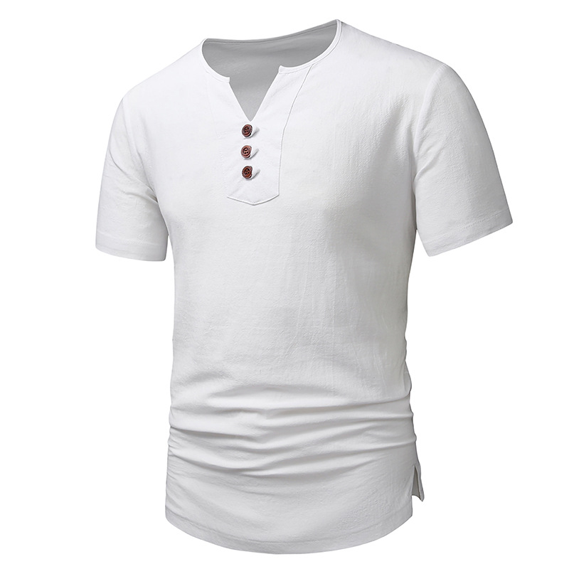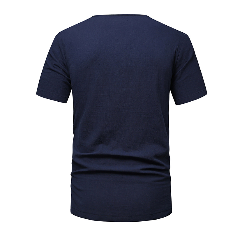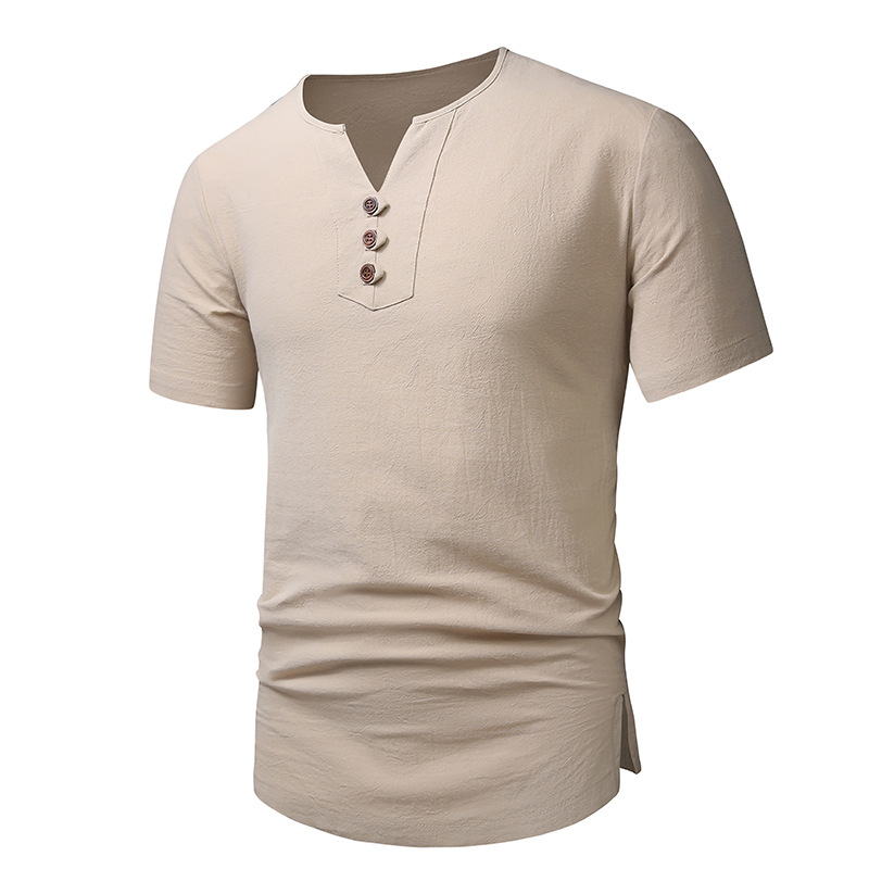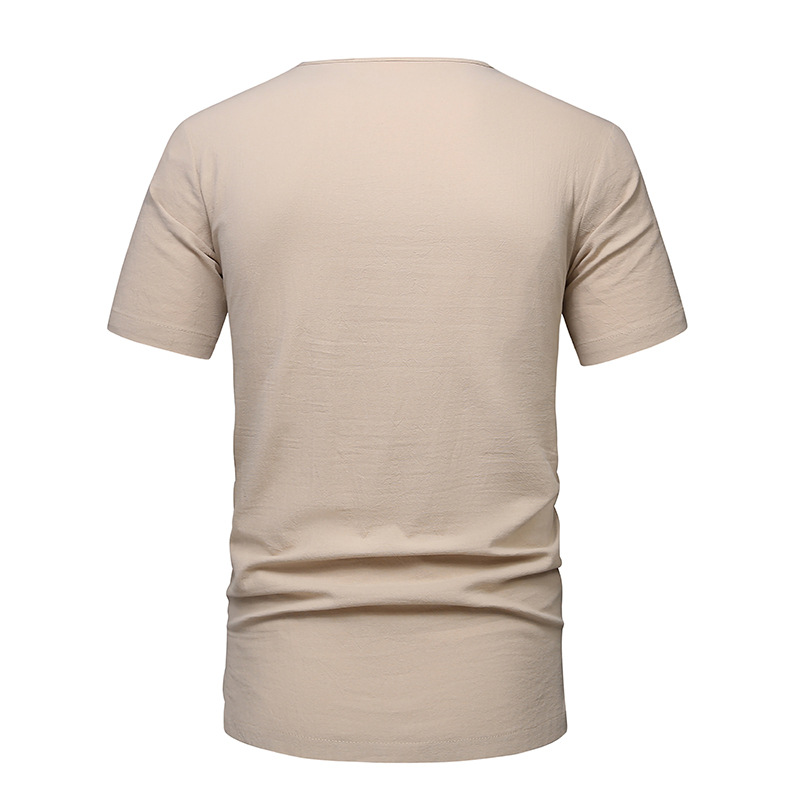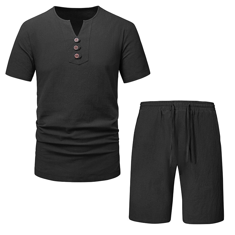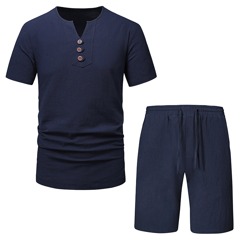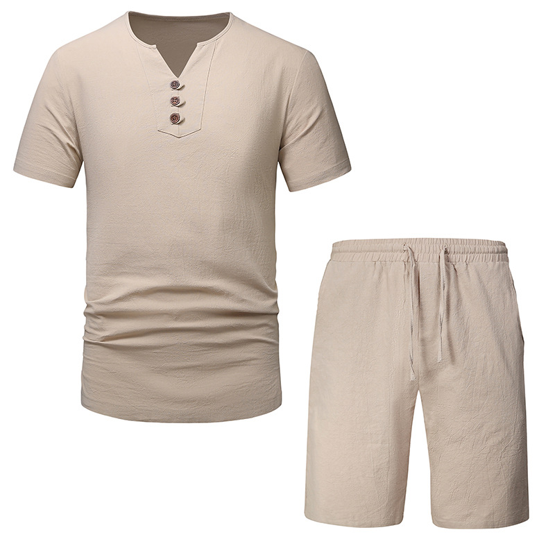 2023 아마존 남성용 면 린넨 브이넥 반팔 티셔츠 투피스 여름 원피스 비치 세트 대외 무역 국경 플러스 사이즈 타이드