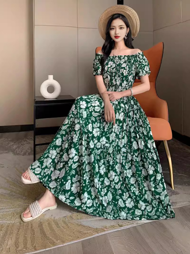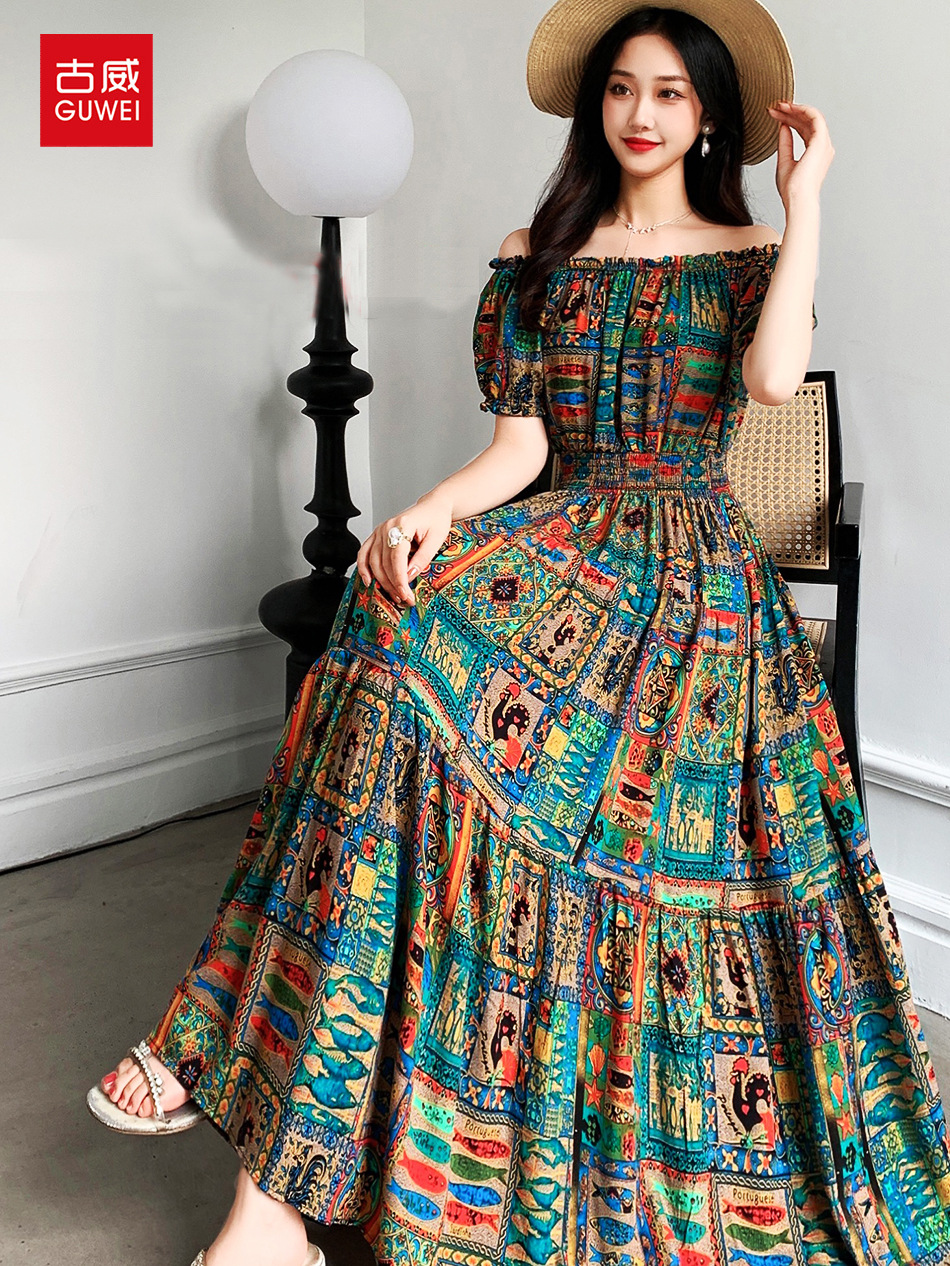 해외 무역 면 실크 오프숄더 해변 휴가 원피스 여름 신상 여행 분위기 비치 스커트 원숄더