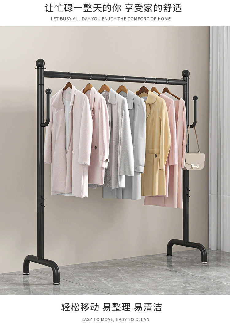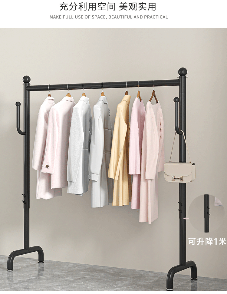 옷걸이 바닥 침실 가정용 텔레스코픽 옷 교수형 막대 간단한 발코니 보관 의류 건조 랙 코트 랙
