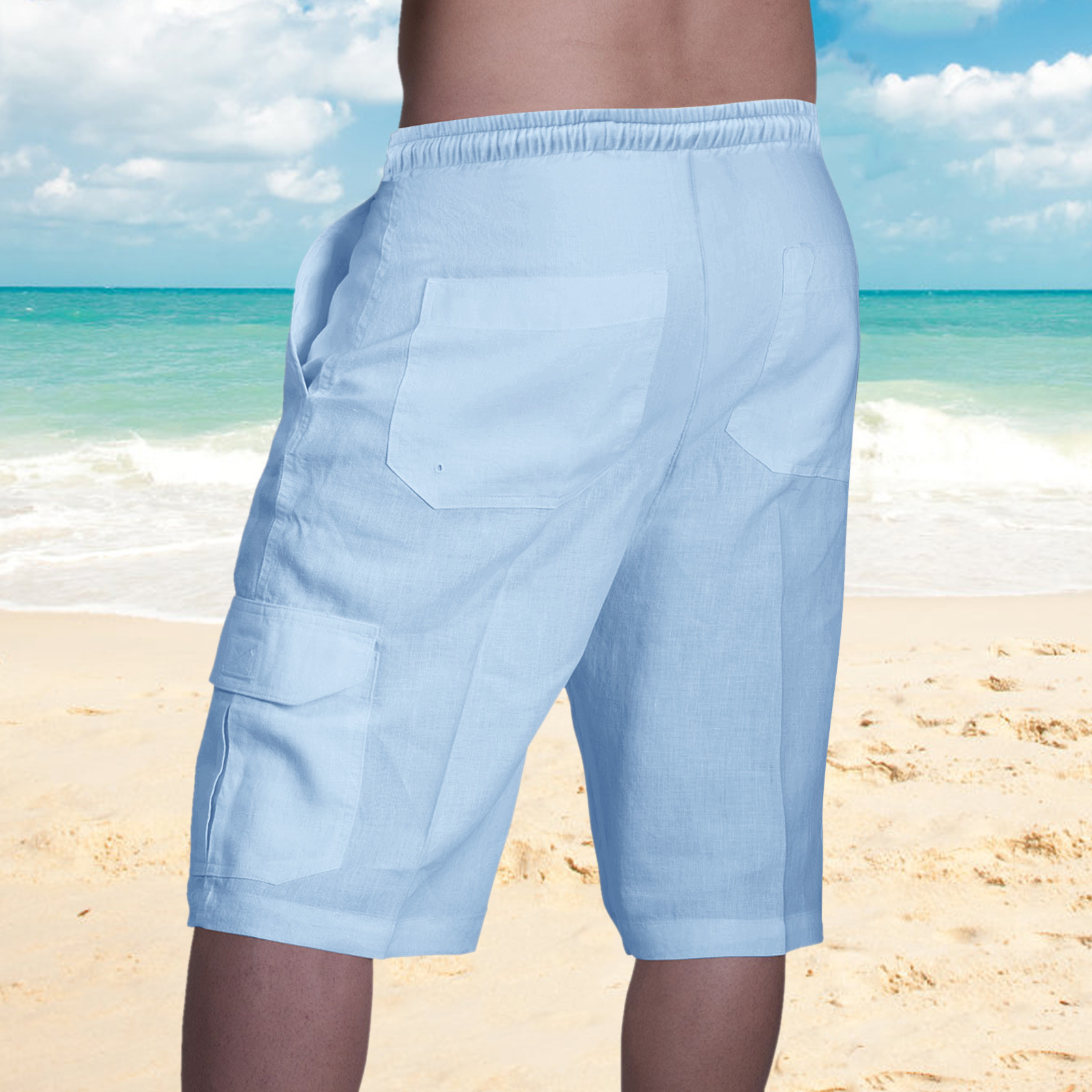 AliExpress 유럽 및 미국 국경 아마존 독립 스테이션 새로운 린넨 반바지 멀티 백 테더 남성용 비치 툴링